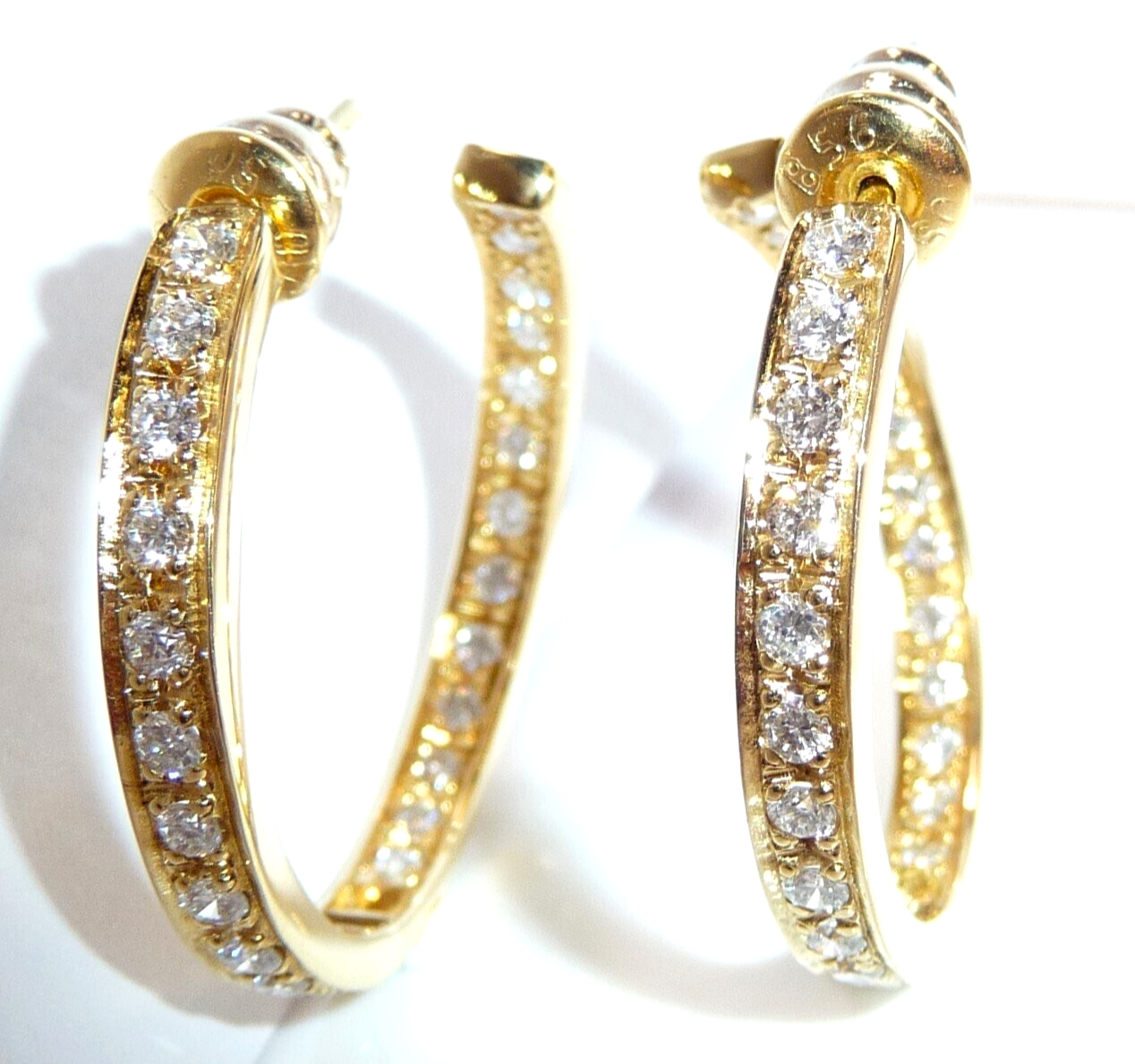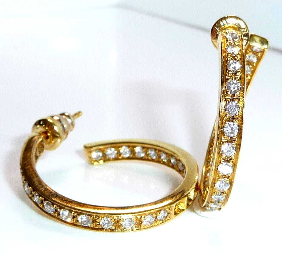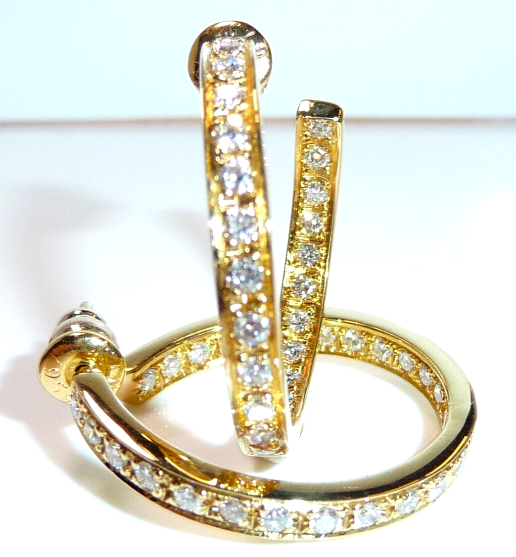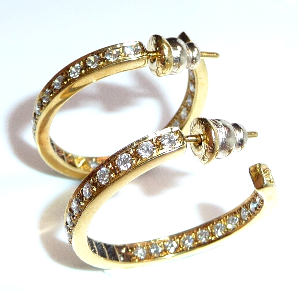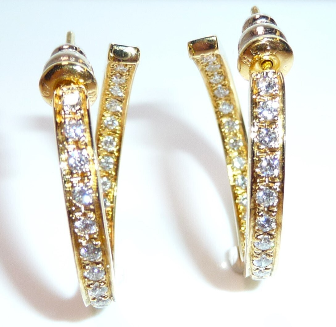 Ohrringe 750 Gelbgold 1.56ct. Diamanten große Creolen 27 x 3,4 mm 11,0 g