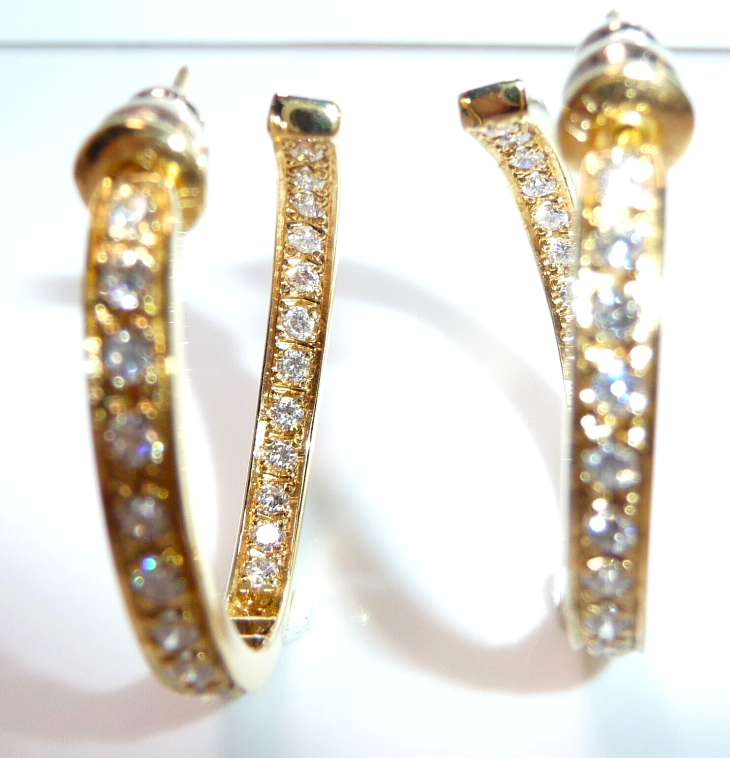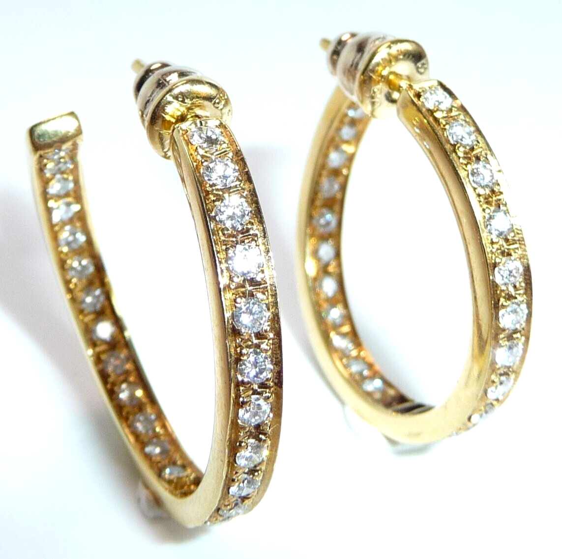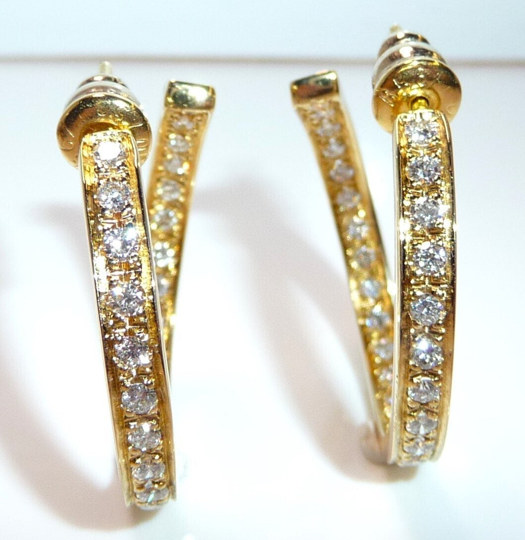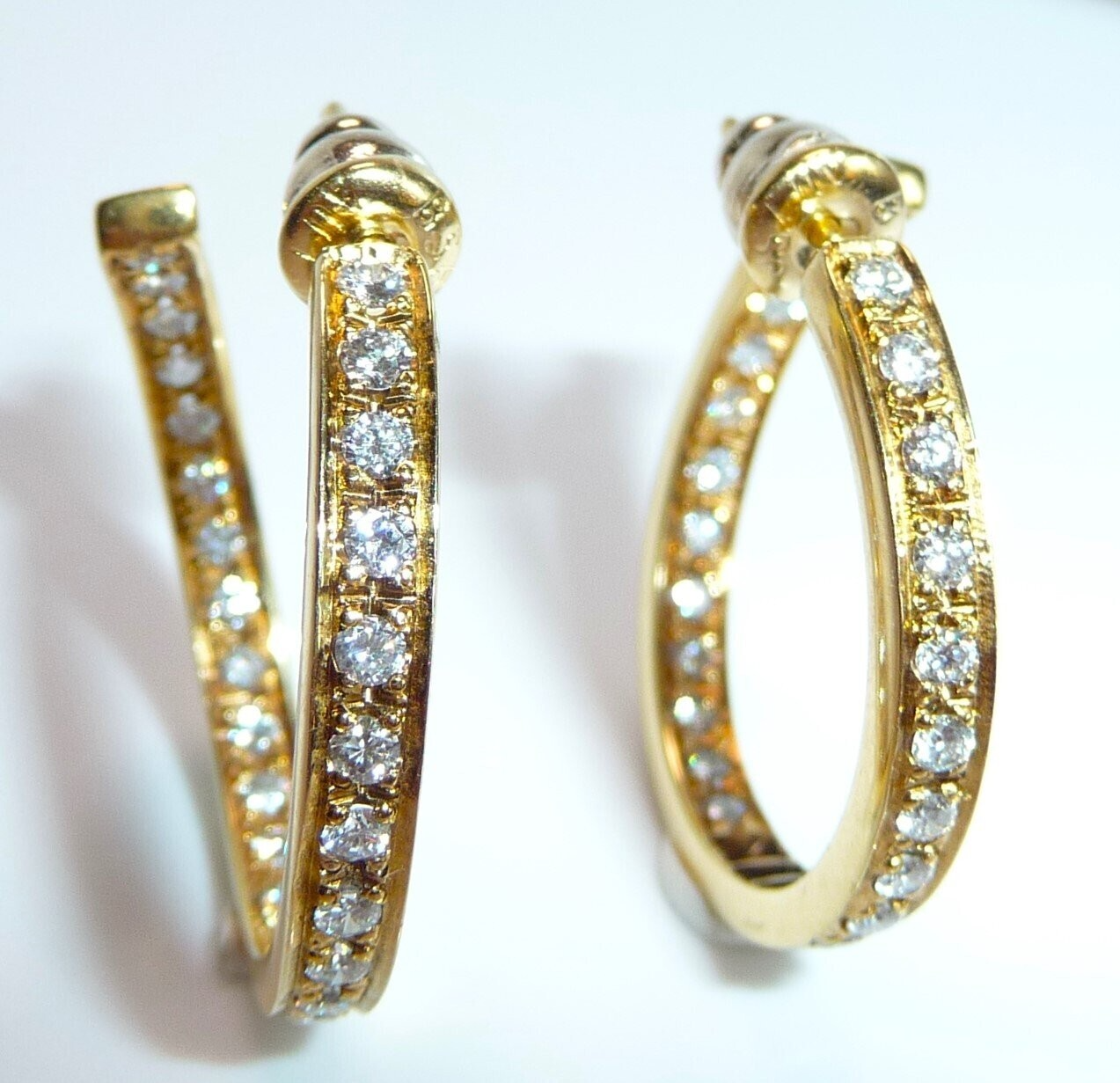 Ohrringe 750 Gelbgold 1.56ct. Diamanten große Creolen 27 x 3,4 mm 11,0 g