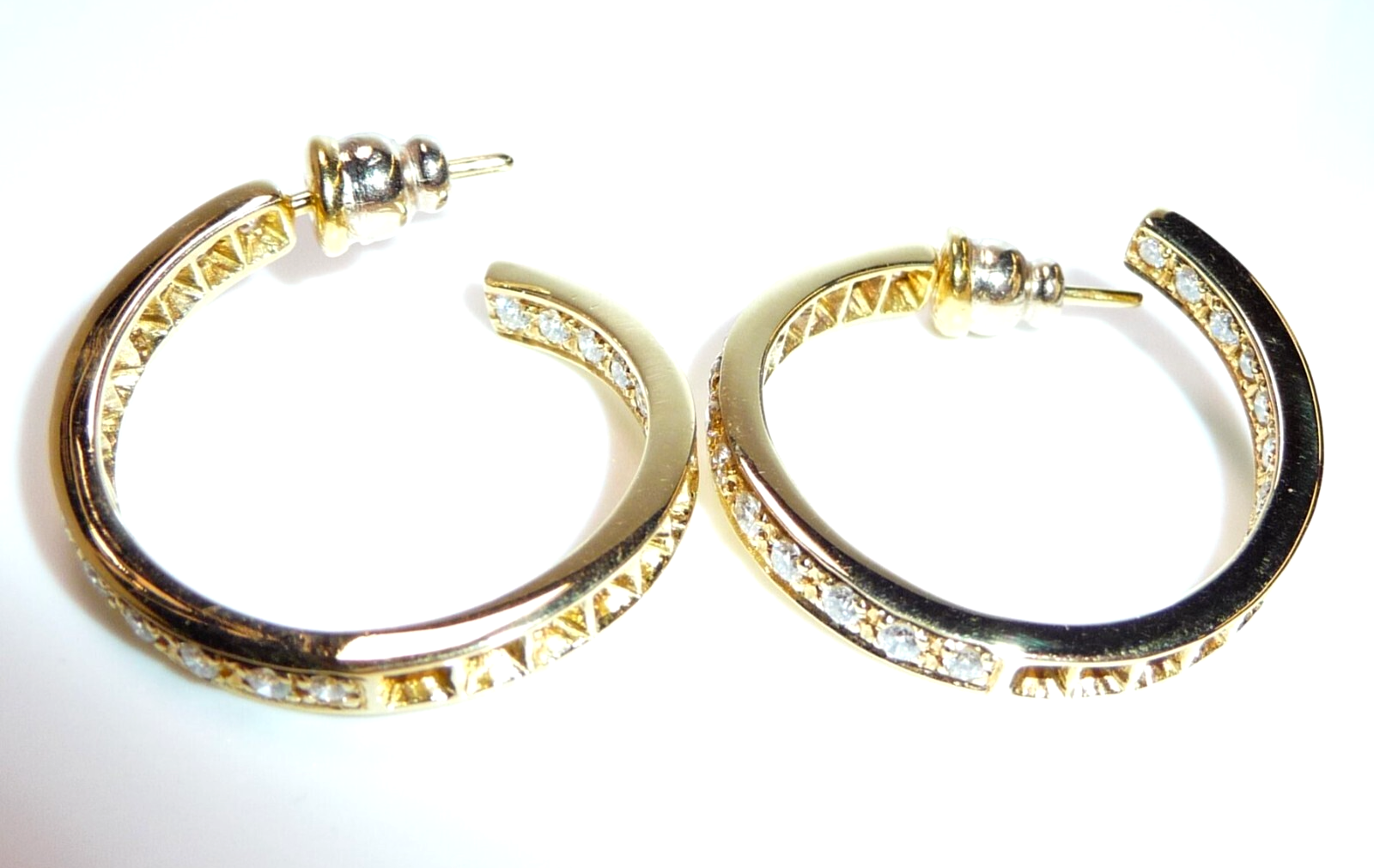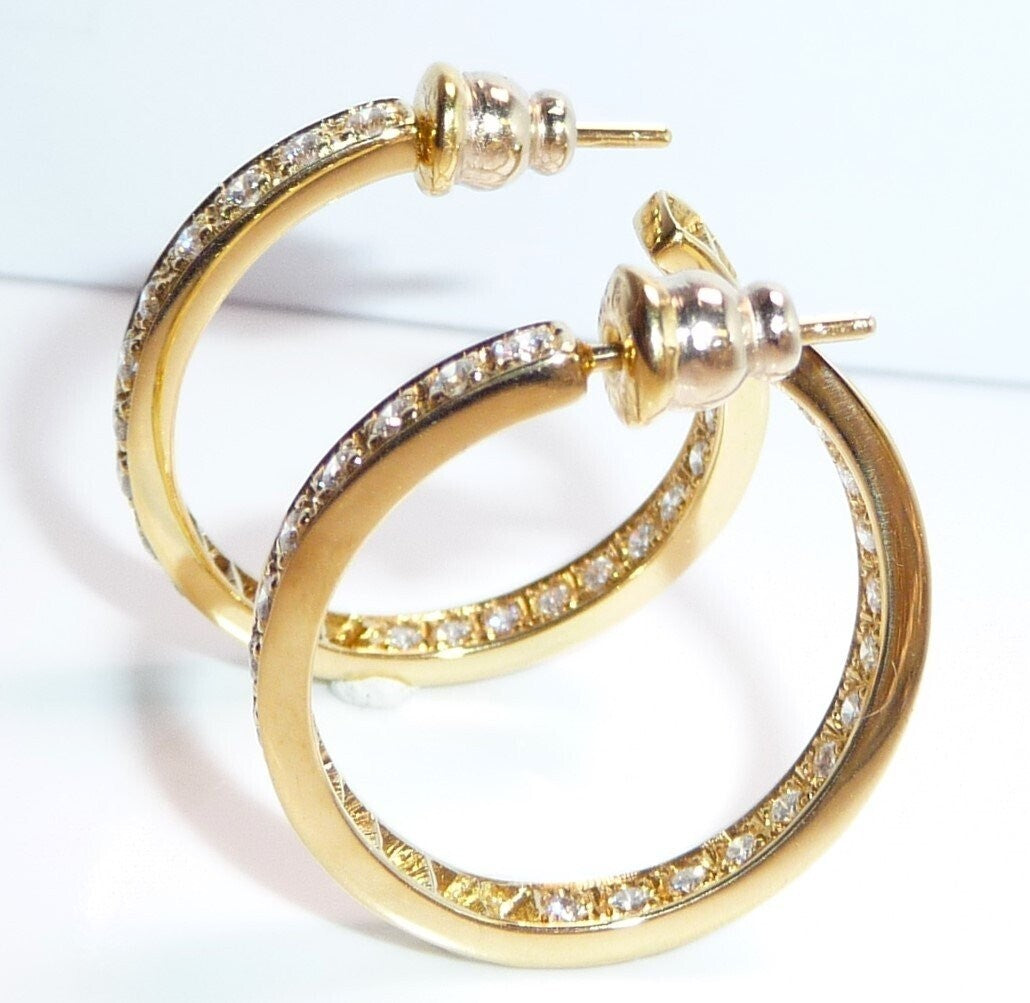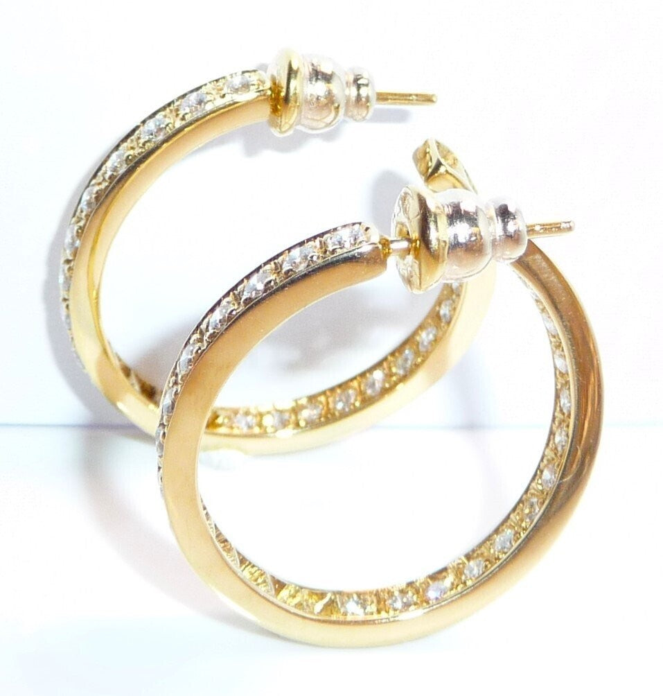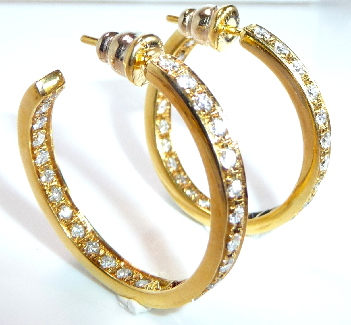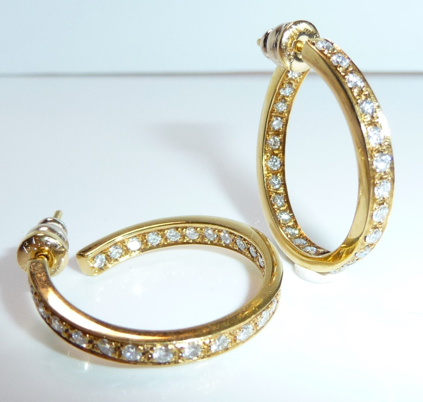 Ohrringe 750 Gelbgold 1.56ct. Diamanten große Creolen 27 x 3,4 mm 11,0 g