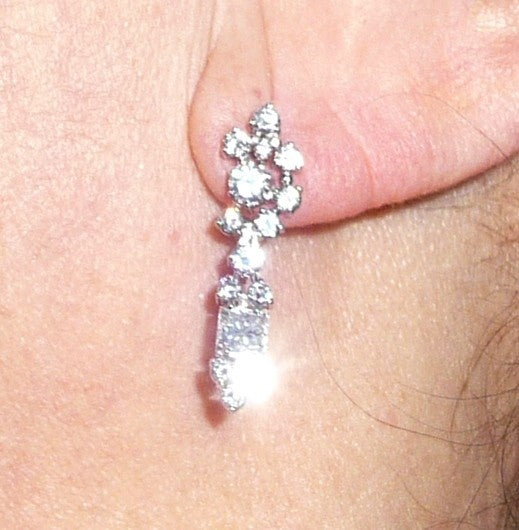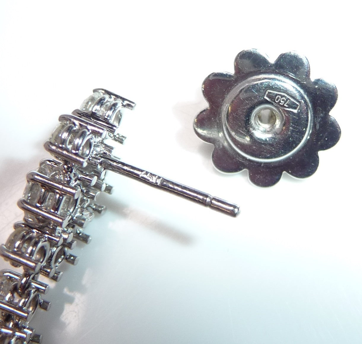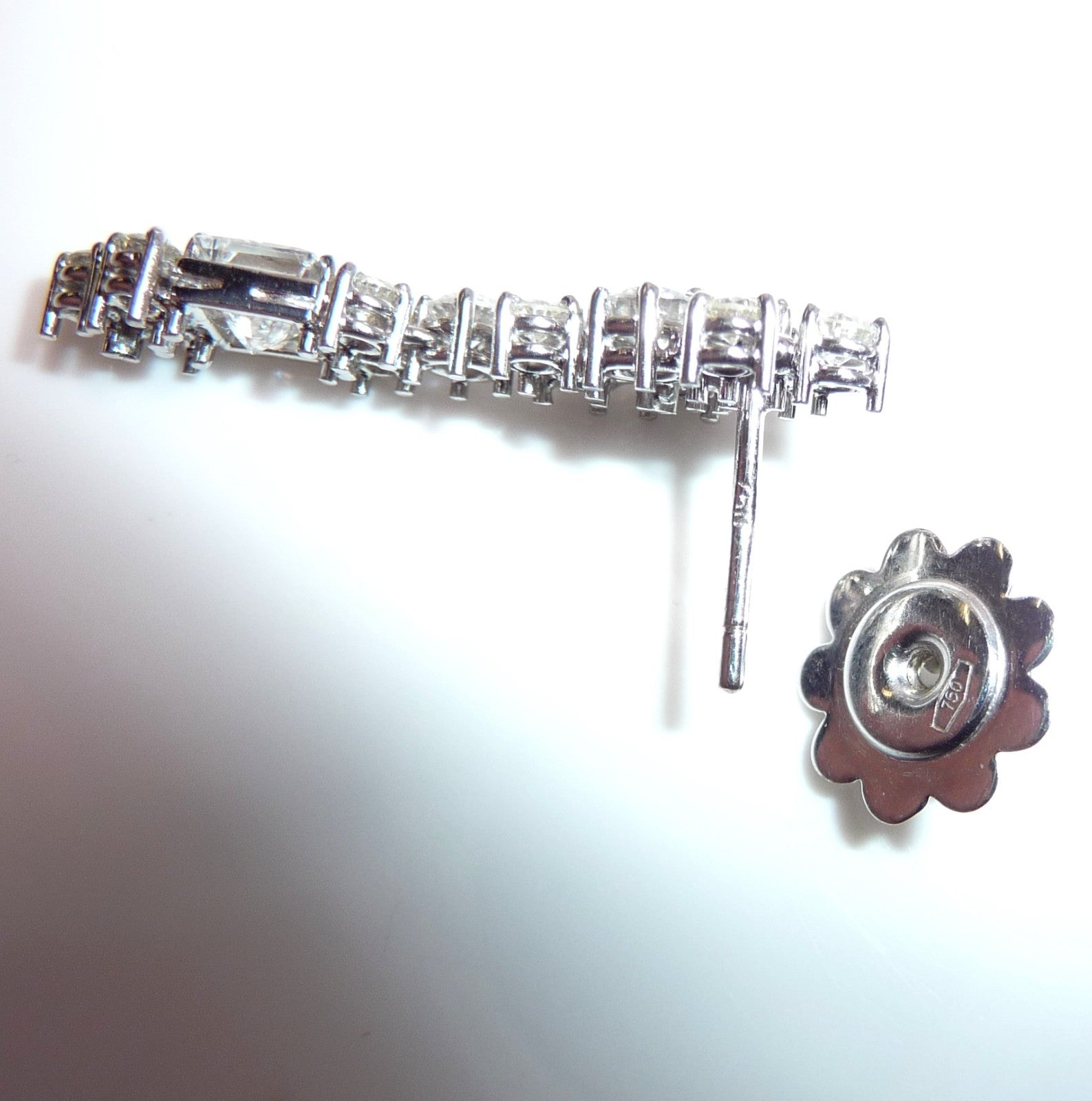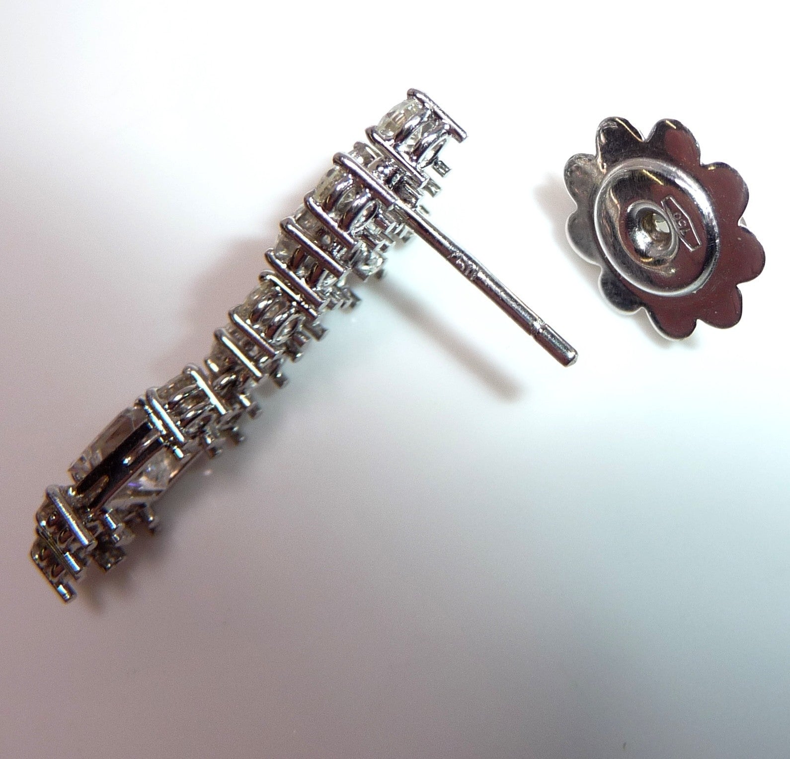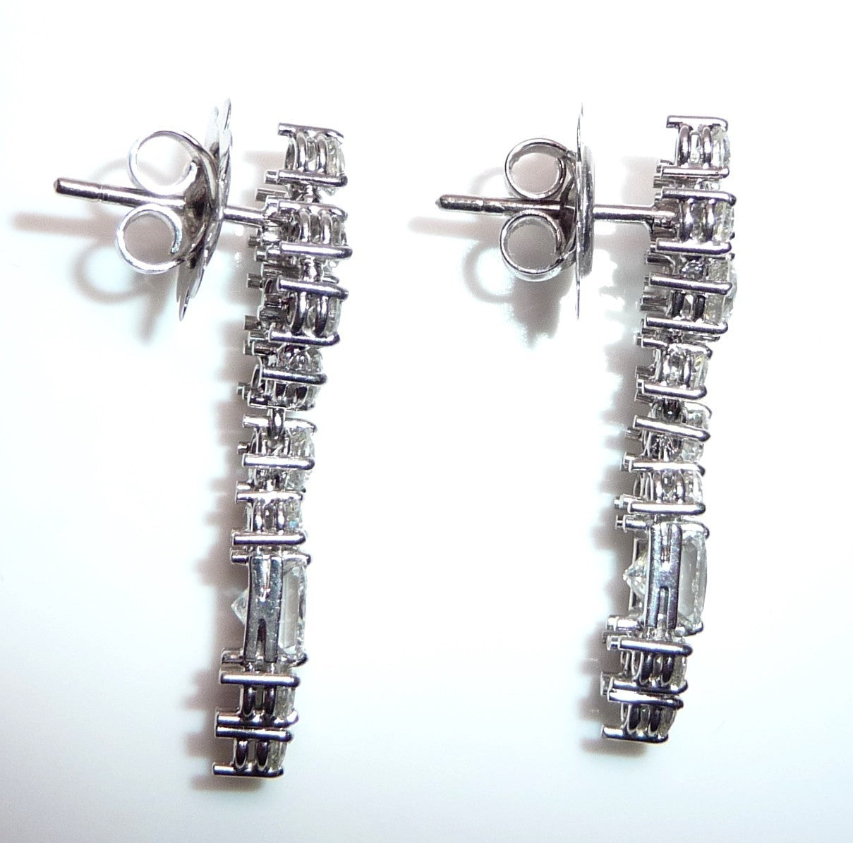 Ohrringe /Ohrhänger in 750/ 18 K Weißgold. Die Ohrringe haben zusammen ca. 2,54 ct. Diamanten. Zusammen sind es 30 Diamanten. Davon sind 28 Diamanten im Brillantschliff und 2 große Diamanten von jeweils 0.57 ct. im Princess-Schliff. Ein Feuerwerk an Brillanz.