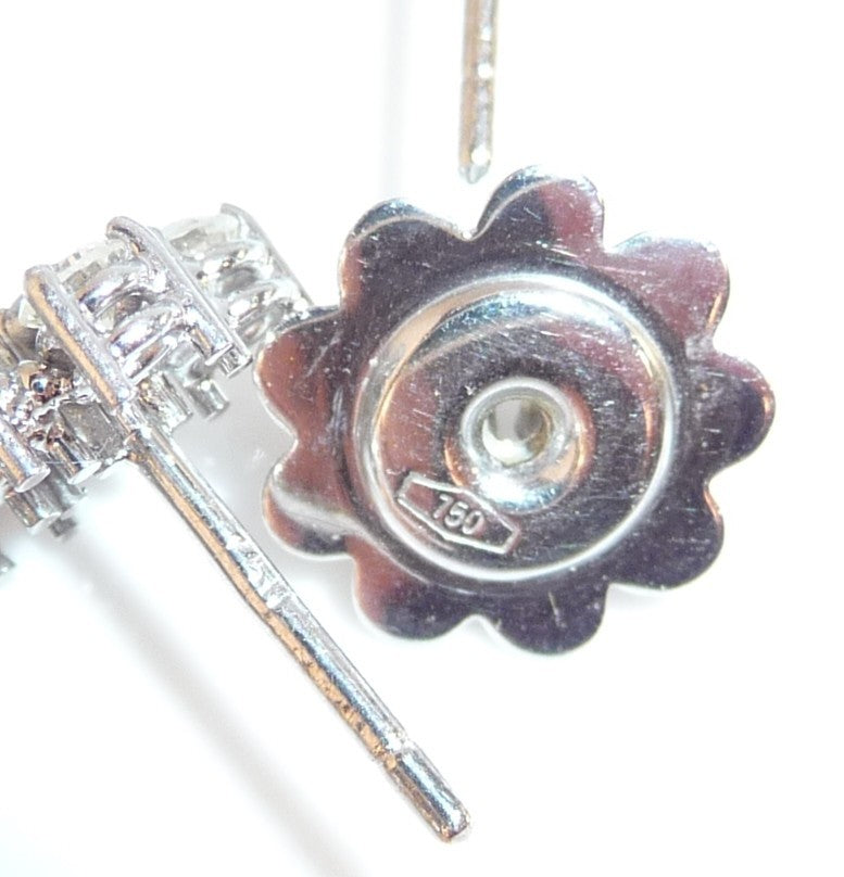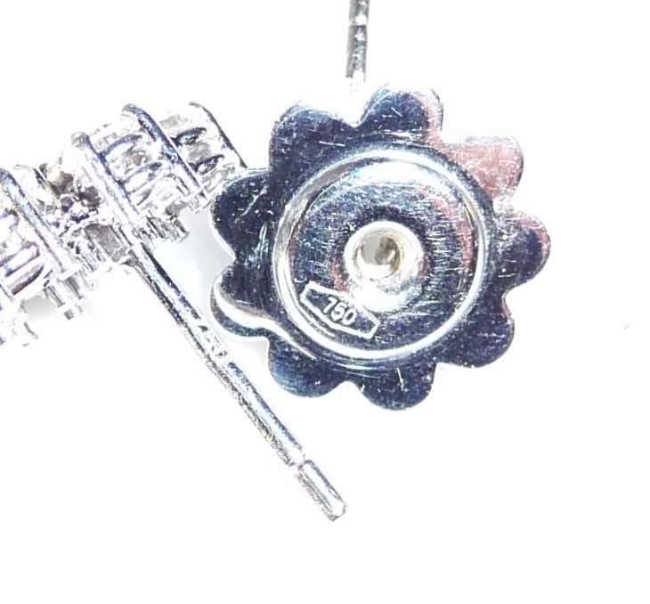 Die Ohrringe haben zwei bewegliche Verbindung und zwar genau an dem mittleren Diamant. Dieser ist zu beiden Seiten beweglich montiert.