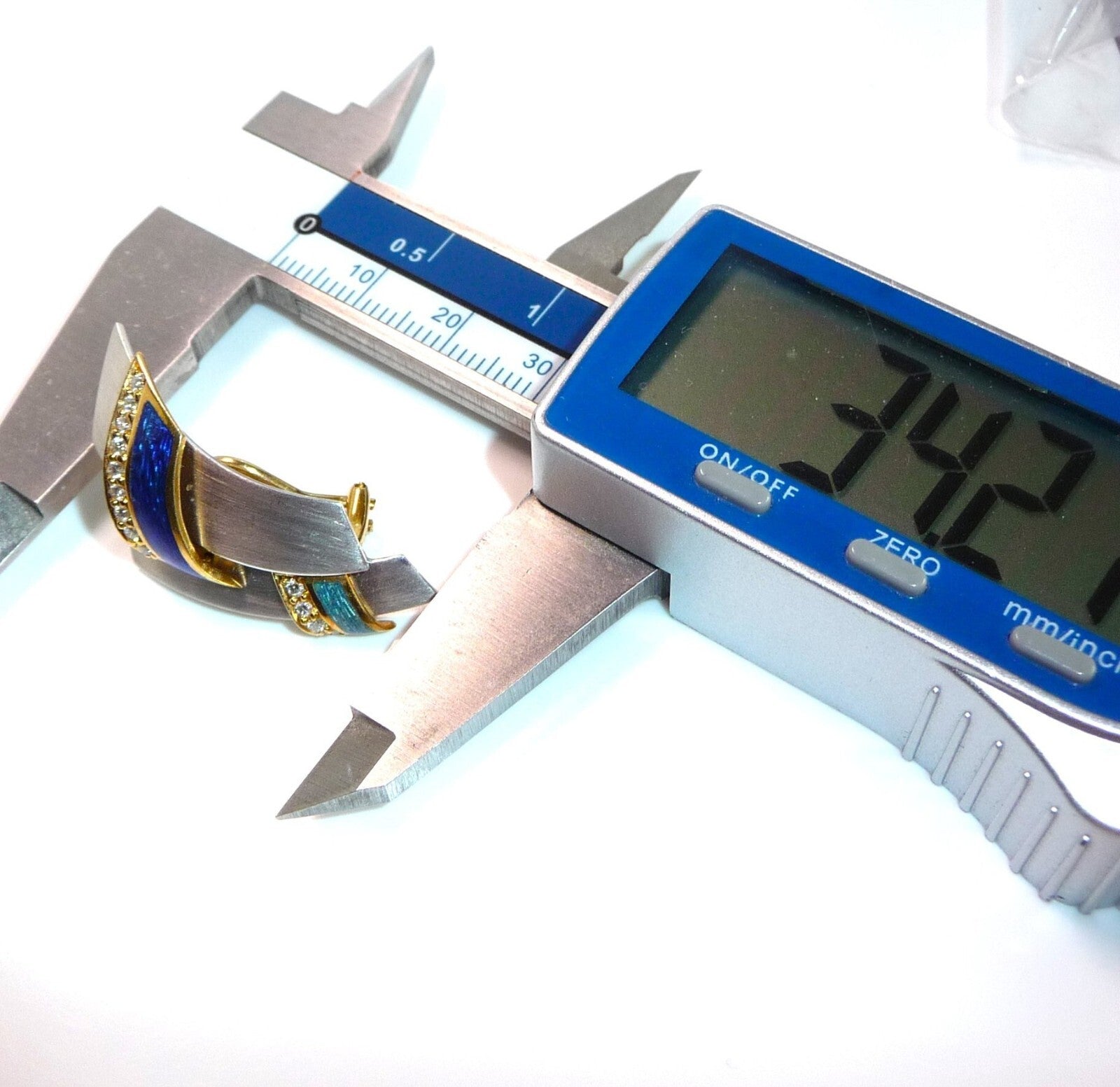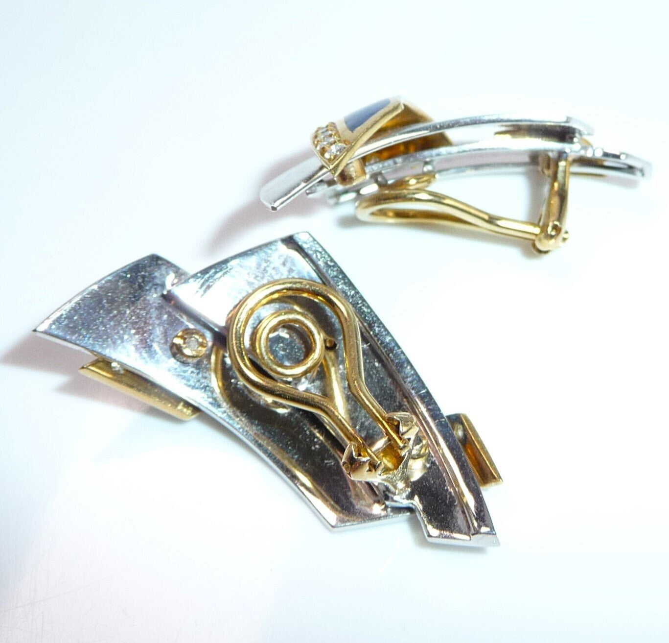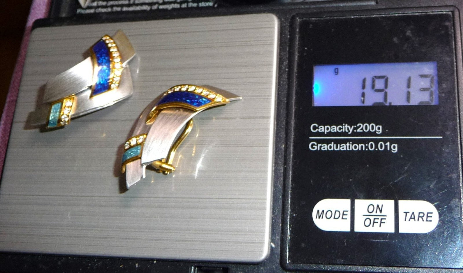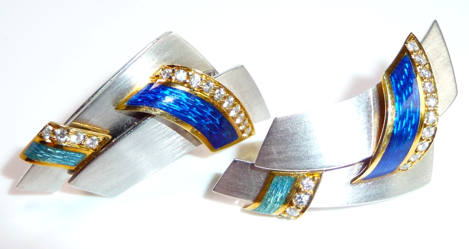 Ohrringe 750 Gold Guilloche-Emaille 0.56ct. Diamanten 34,2 mm 19,2 g Unikate
