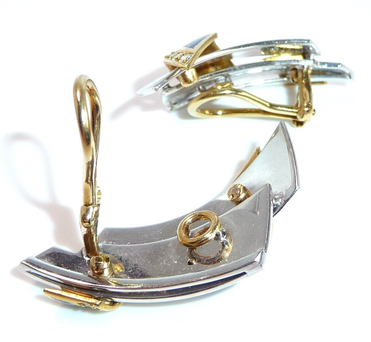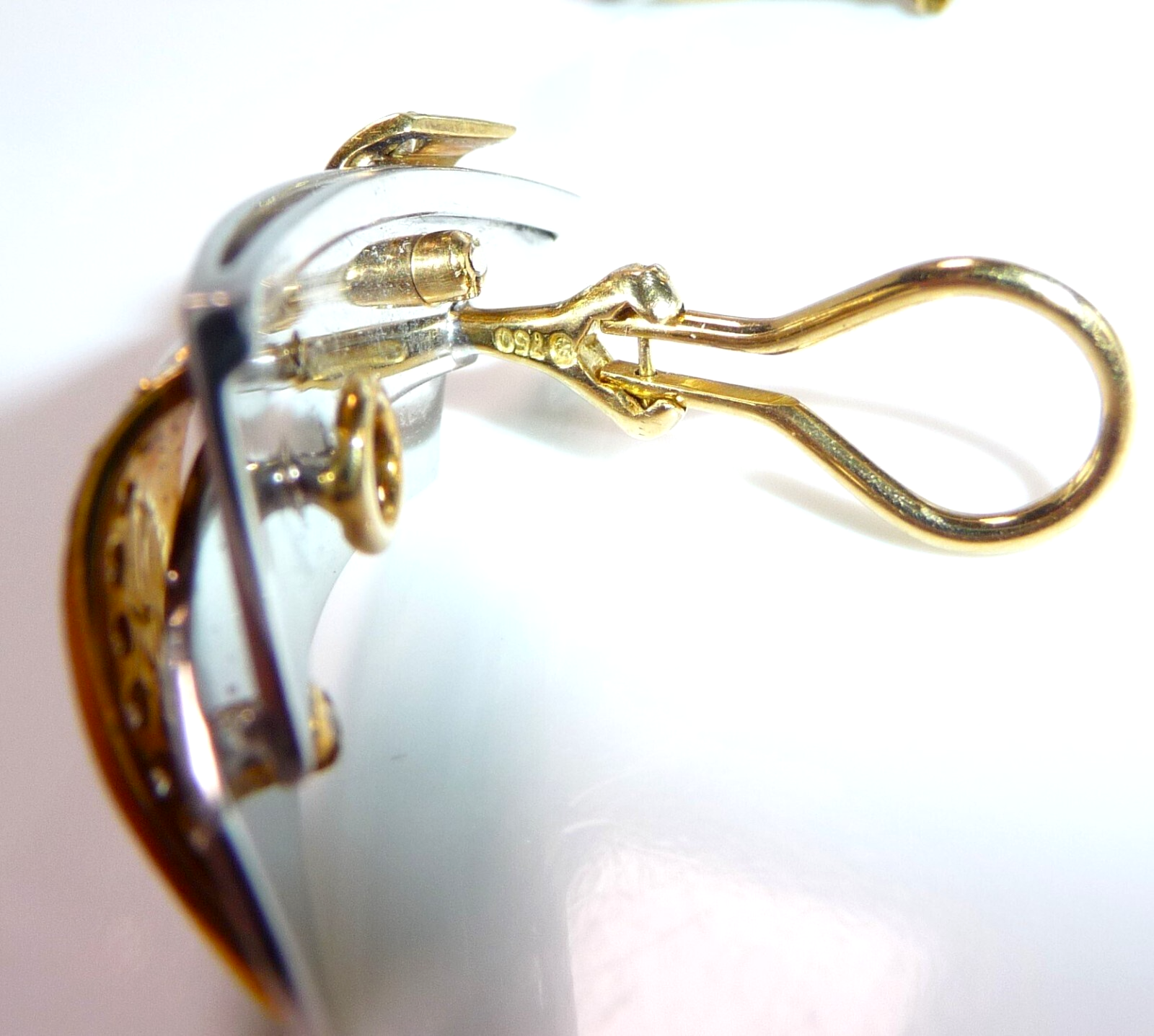 Exzellenter, neuwertiger Zustand und ein echter Eye-Catcher. Die Ohrringe sind aktuell als reine Clips gearbeitet. Sie können aber von unserem Goldschmied auf Wunsch auch mit einem Stift versehen werden. Der Vorteil reiner Clips ist, dass man die Ohrringe besser ausrichten kann am Ohr. Daher ist es besonders bei großen Ohrringen nicht selten, dass man sie als reine Clips trägt.