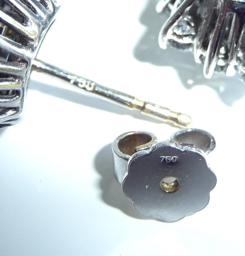 Punzierung mit 750 direkt auf dem Stift und auf den Ohrmutter. Zusätzlich professionell geprüftes massives 18 K Gold.