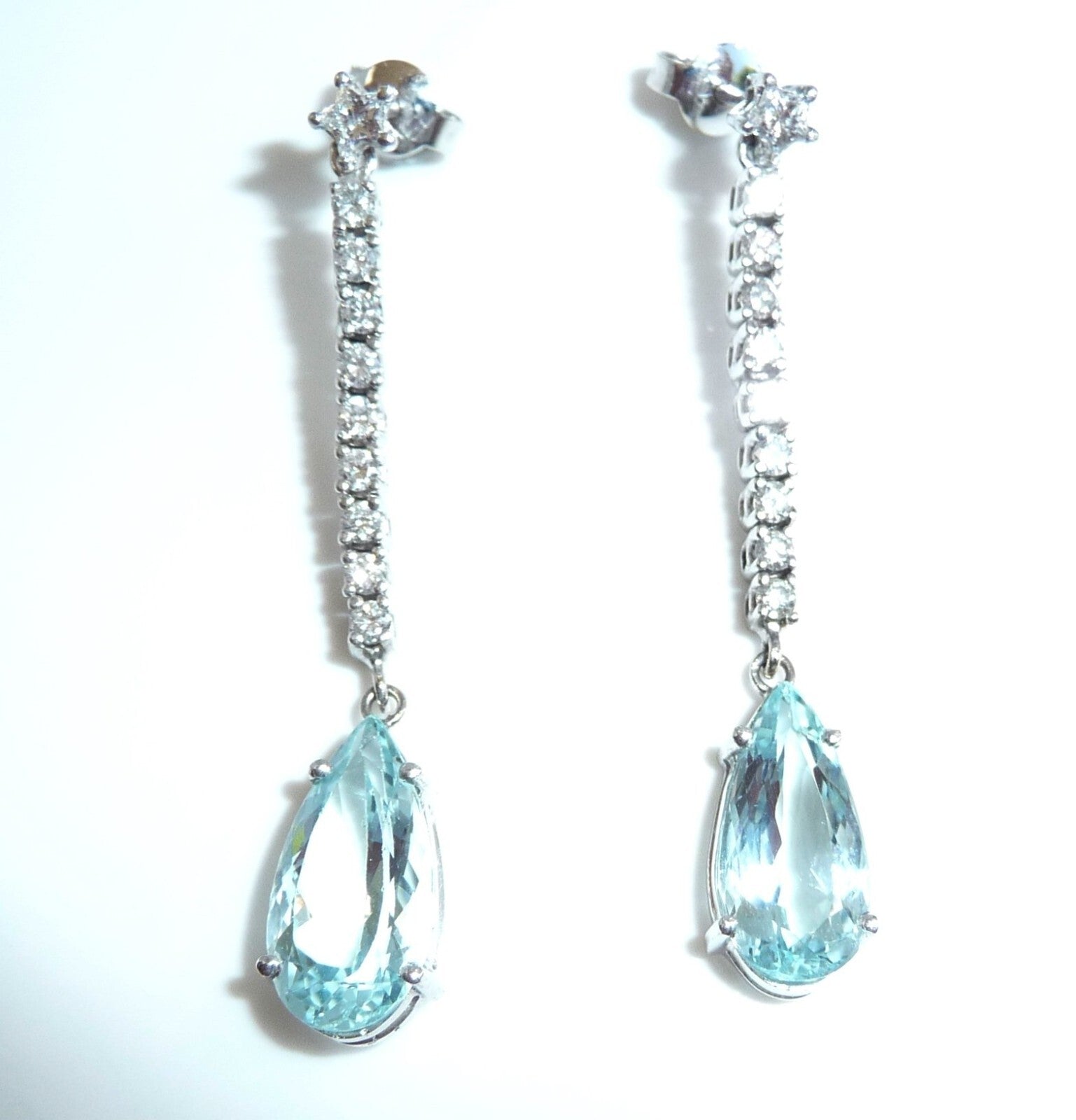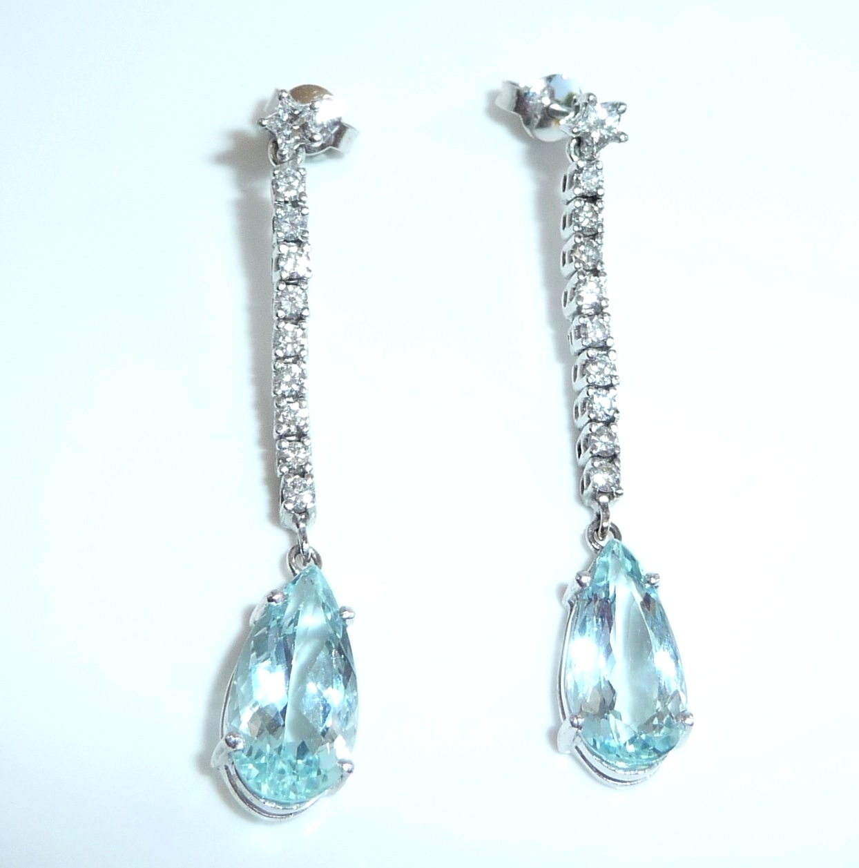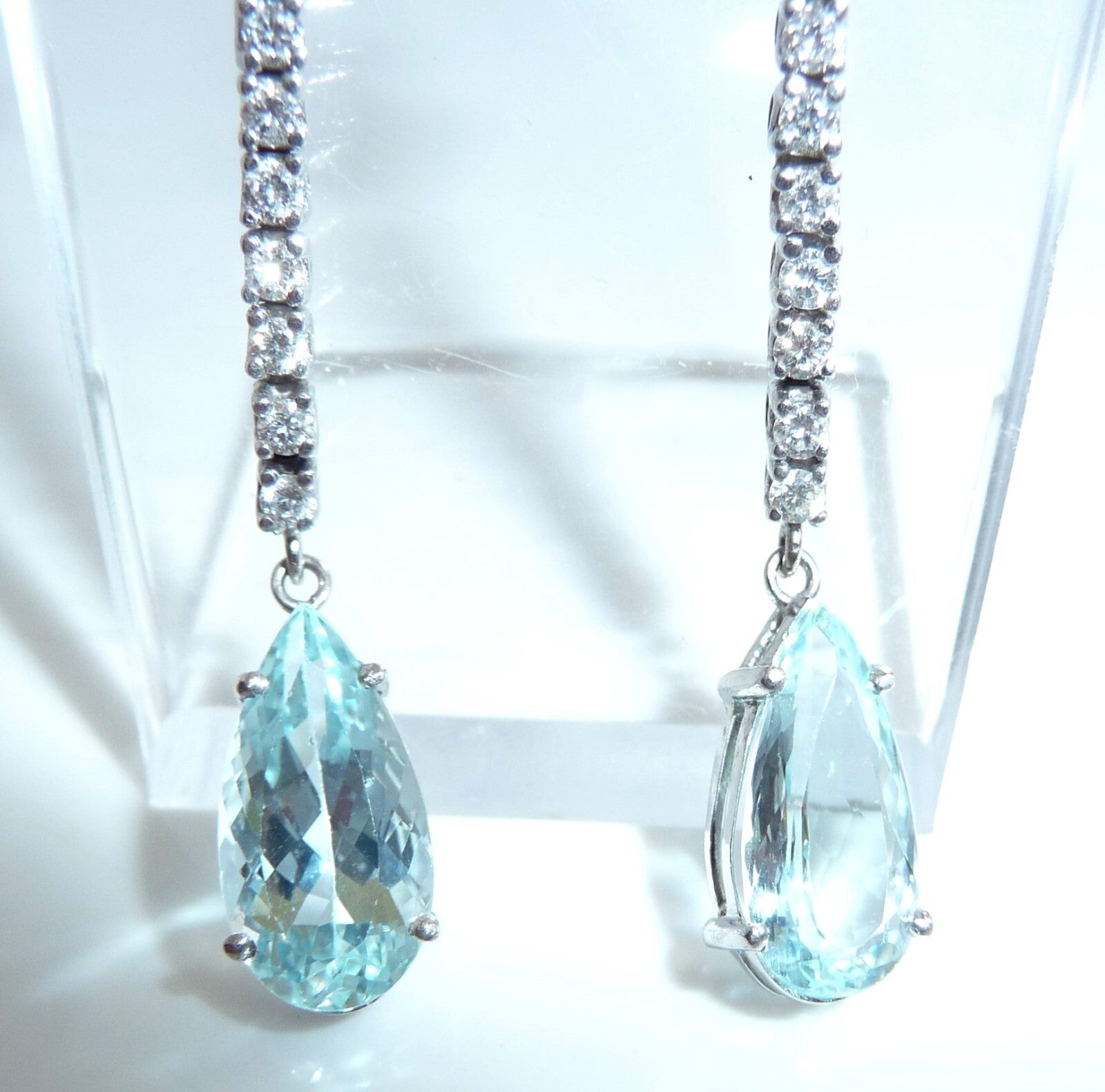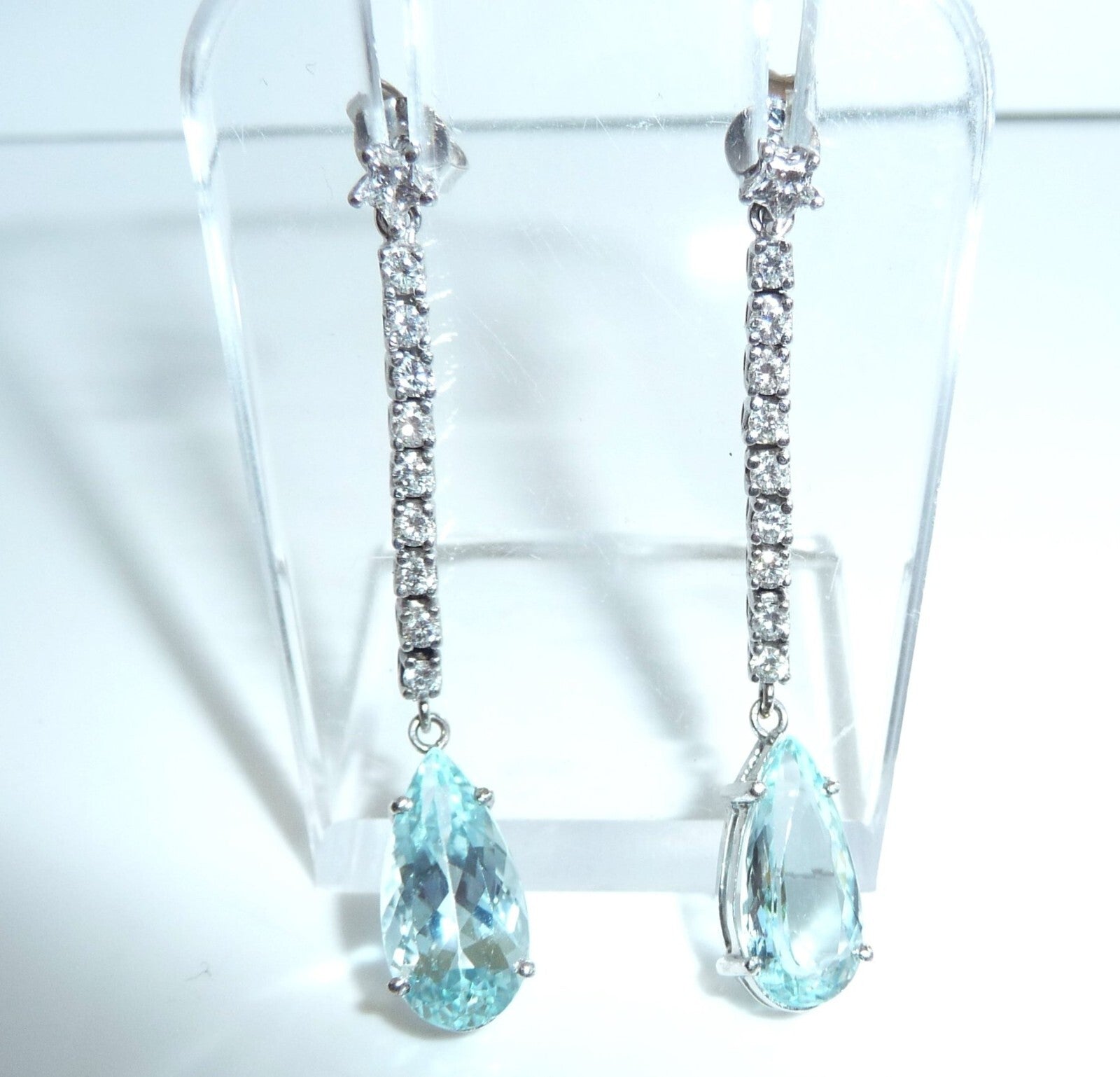 Ohrringe 750 Weißgold 5.0ct. Aquamarin 0.75 ct Diamanten 44,8 mm lang 5,7 gr
