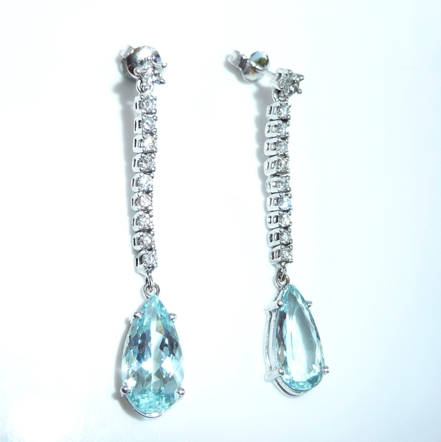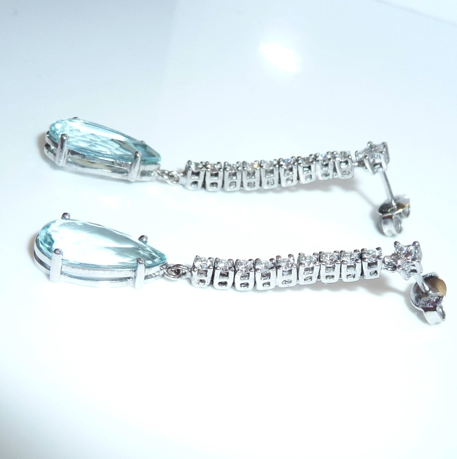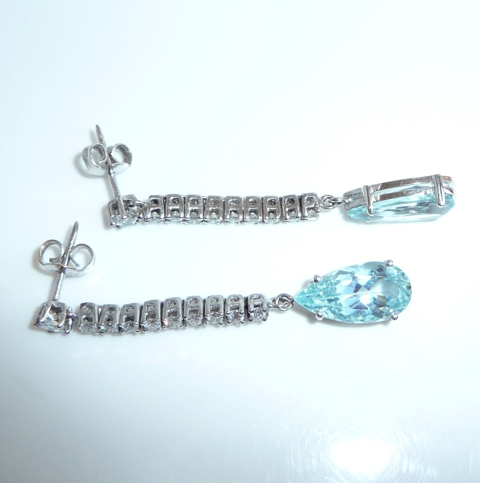Ohrringe 750 Weißgold 5.0ct. Aquamarin 0.75 ct Diamanten 44,8 mm lang 5,7 gr