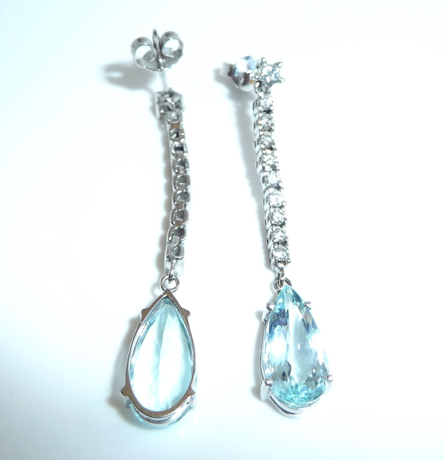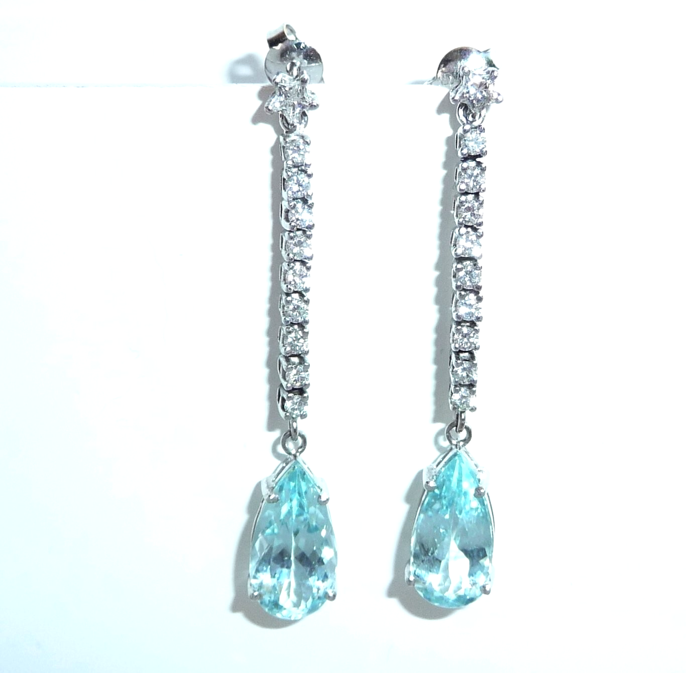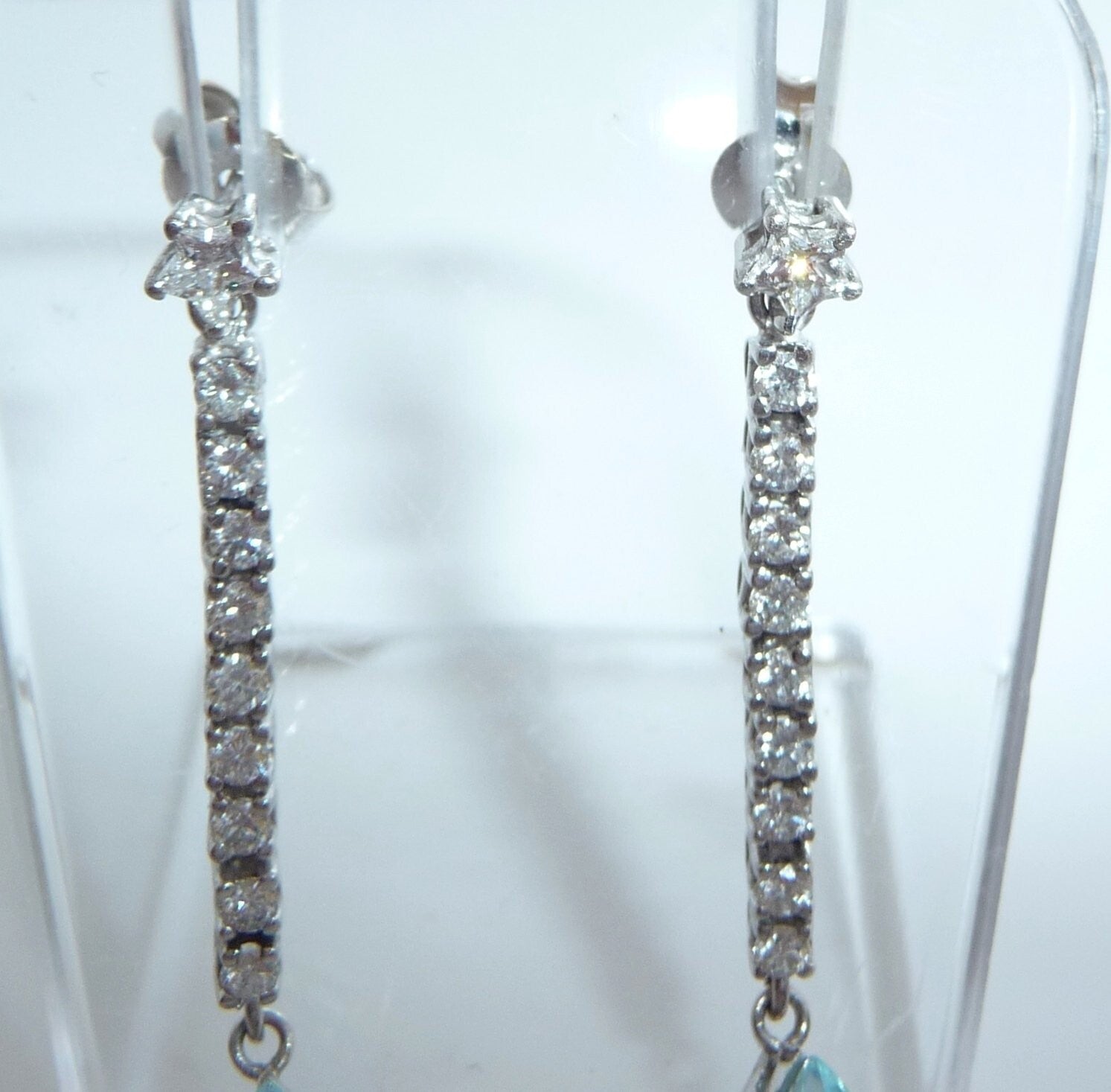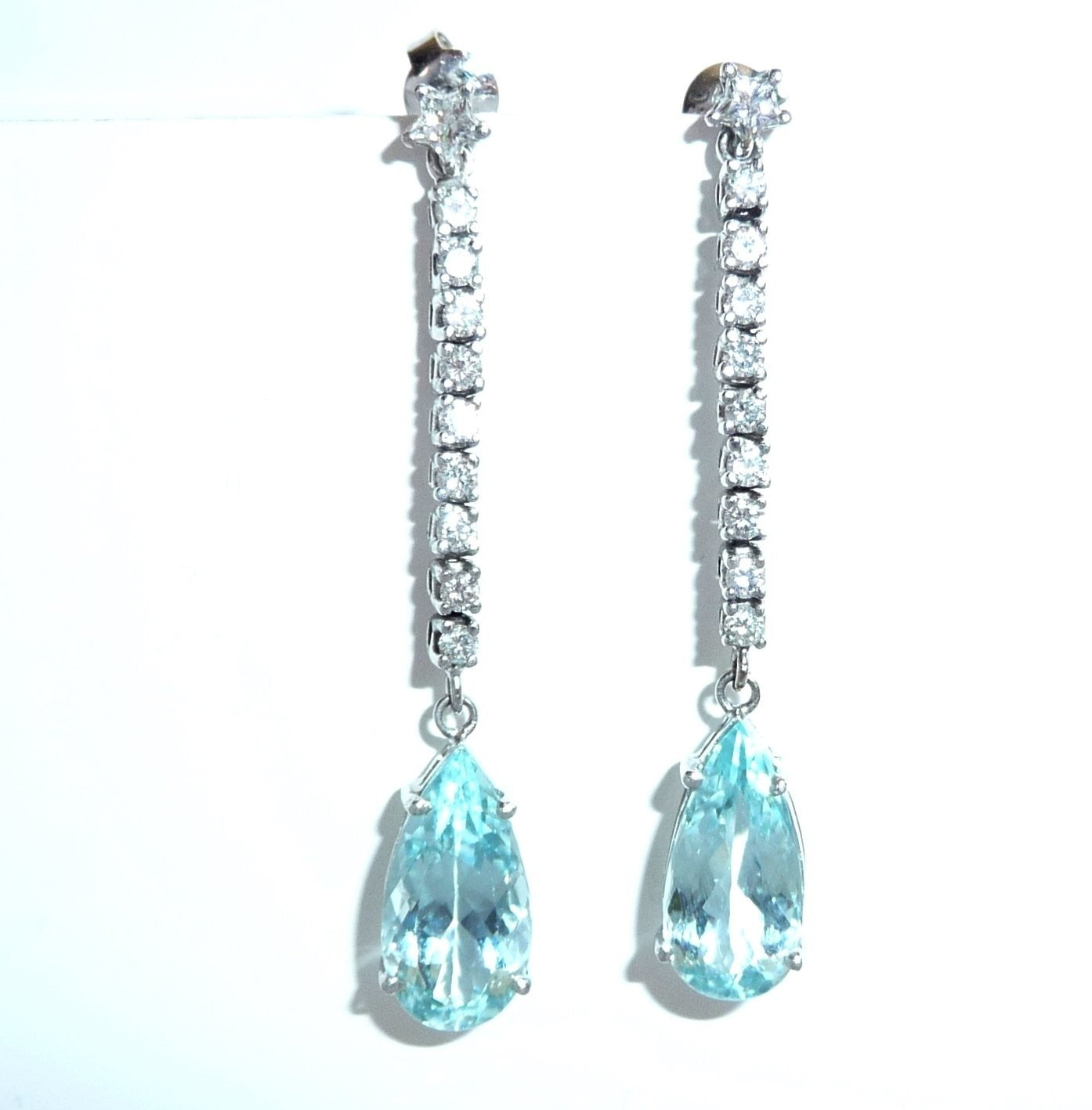 Ohrringe 750 Weißgold 5.0ct. Aquamarin 0.75 ct Diamanten 44,8 mm lang 5,7 gr