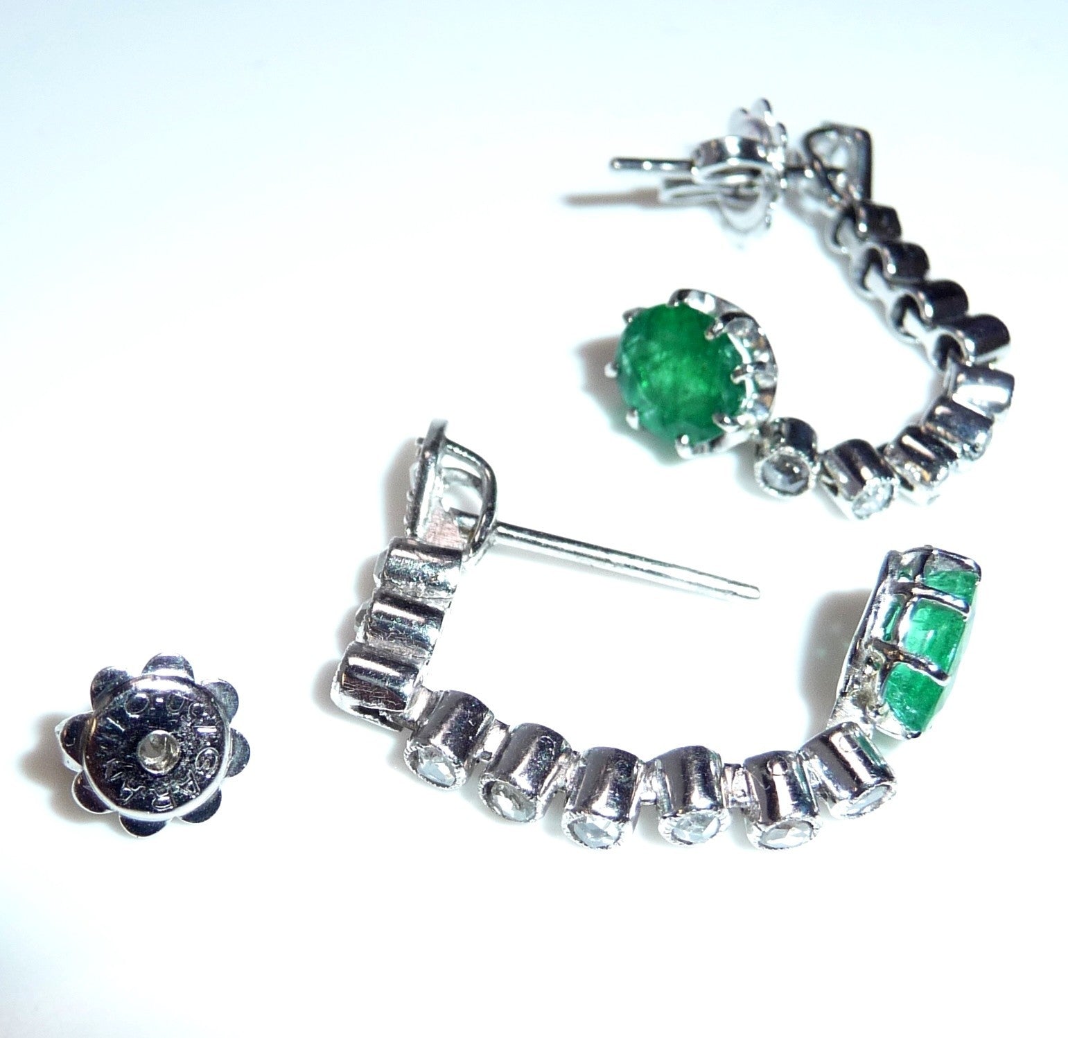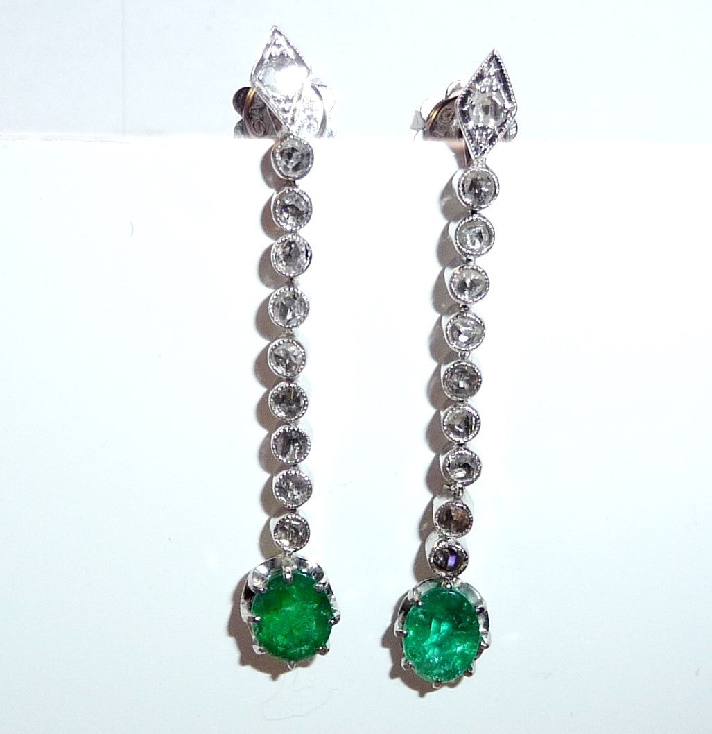 Ohrringe antik 750 Gold 0.40 ct Diamanten Rose Cut 1.20 ct Smaragde 41 mm