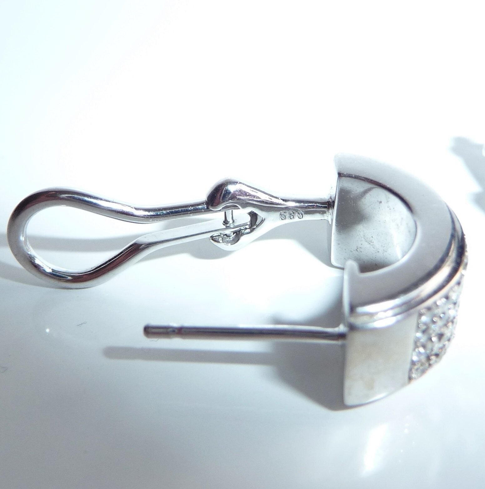 Ohrringe Halb-Creolen 585 Weißgold 1.00ct. Diamanten 15,3 mm lang 6,4 gr