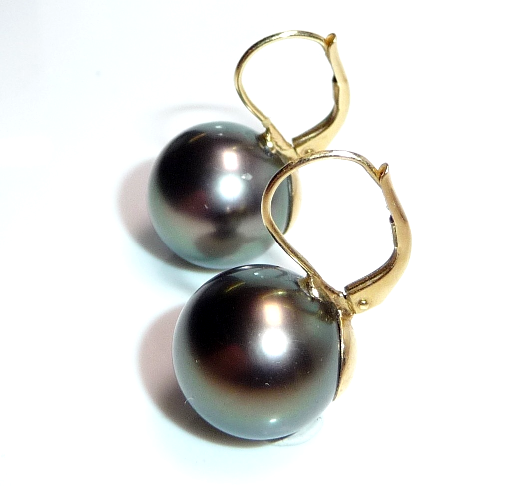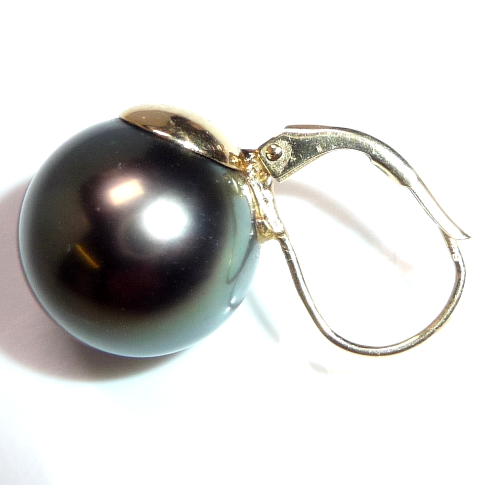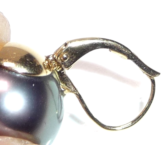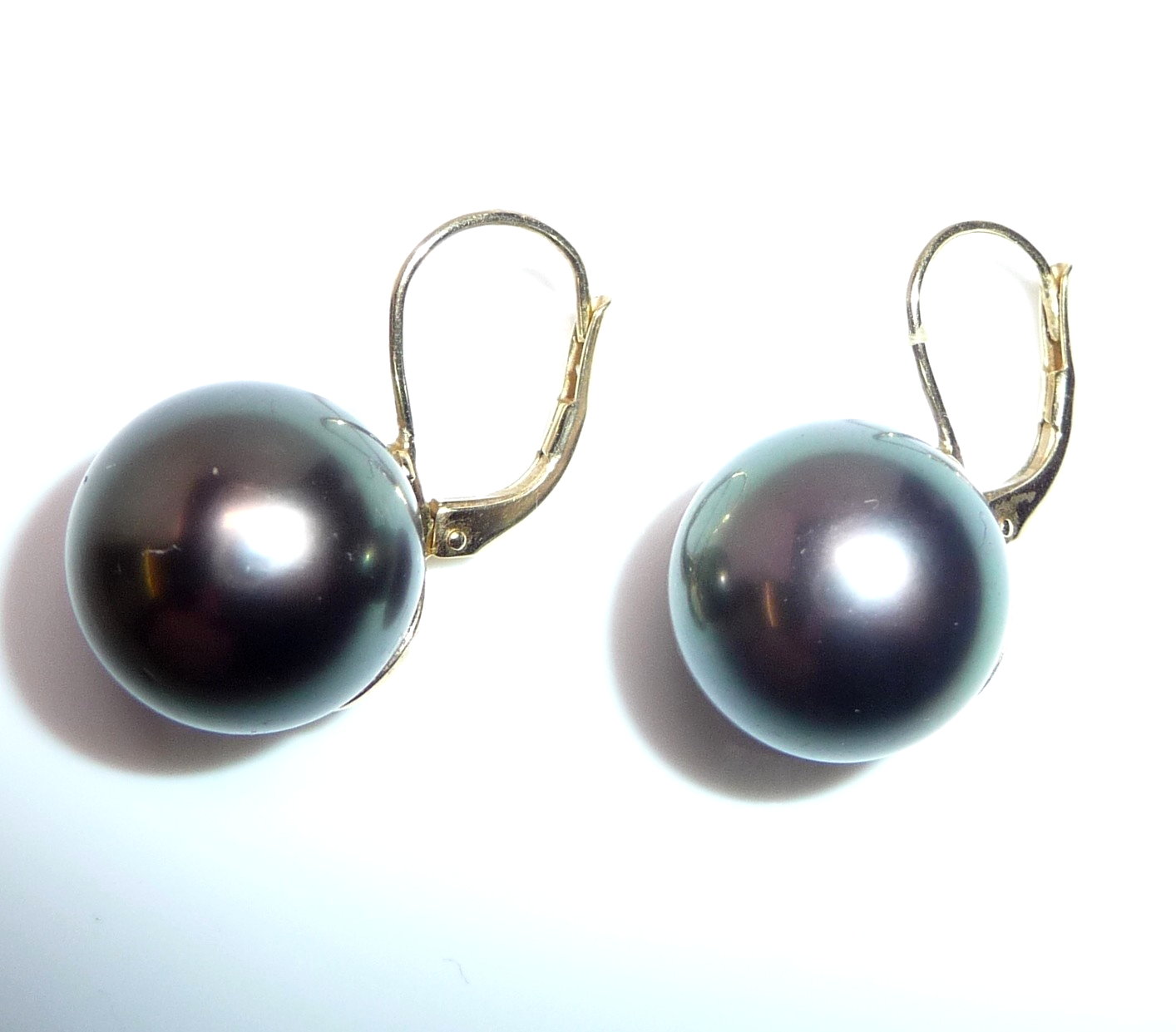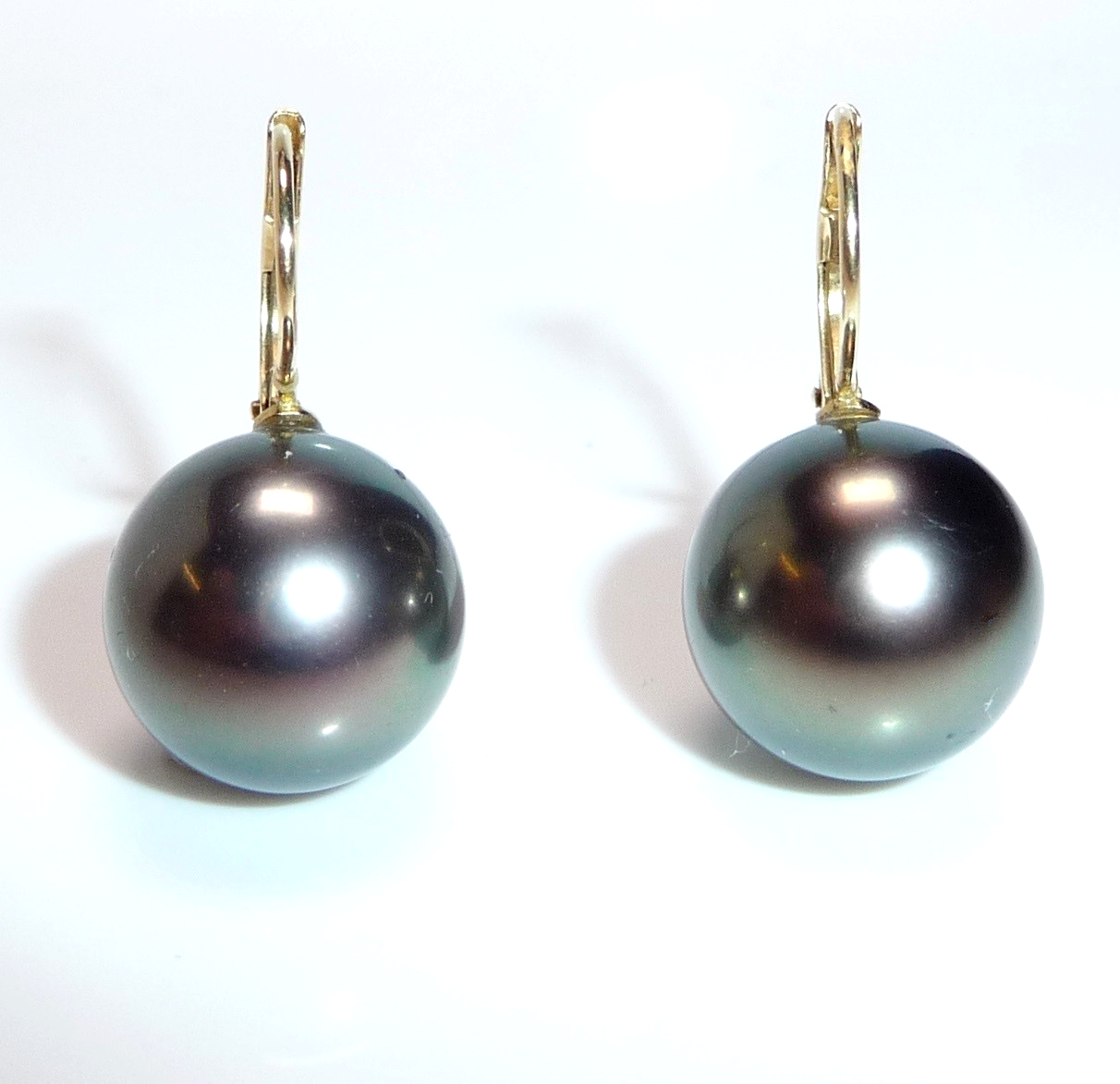 Ohrringe Ohrhänger 750 Gelbgold Tahiti Perlen 7,55g Perlen 12,7 mm anthrazit