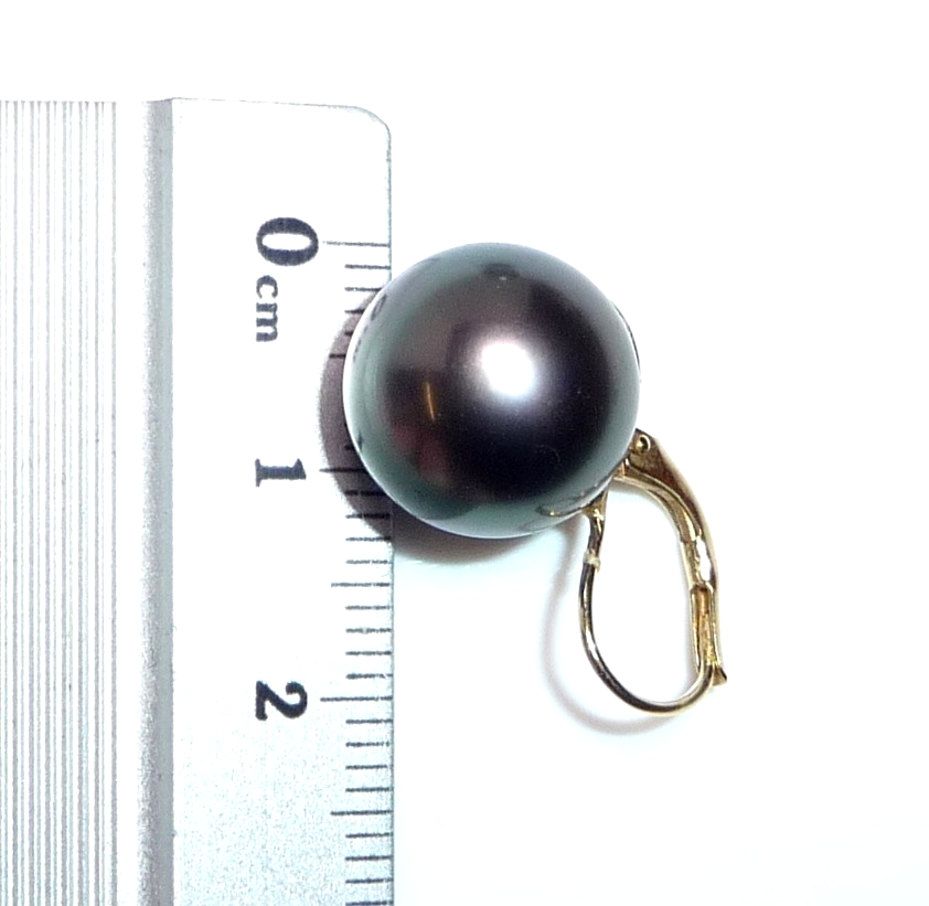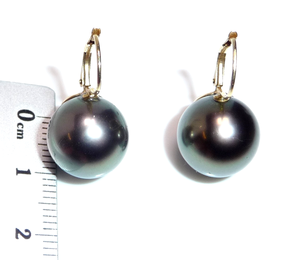 Länge senkrecht herunter gemessen 17,7 mm, Durchmesser der Perlen 1 x 12,7 und 1 x 12,6 mm