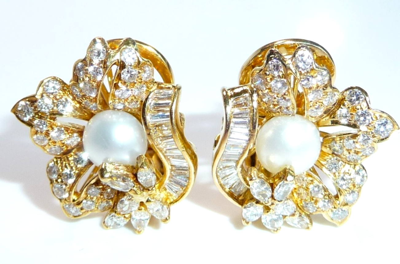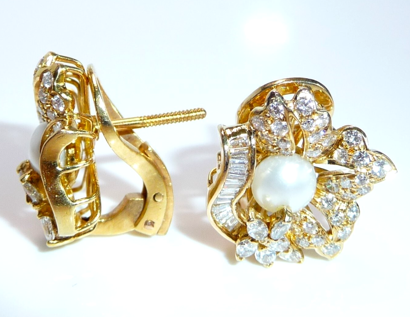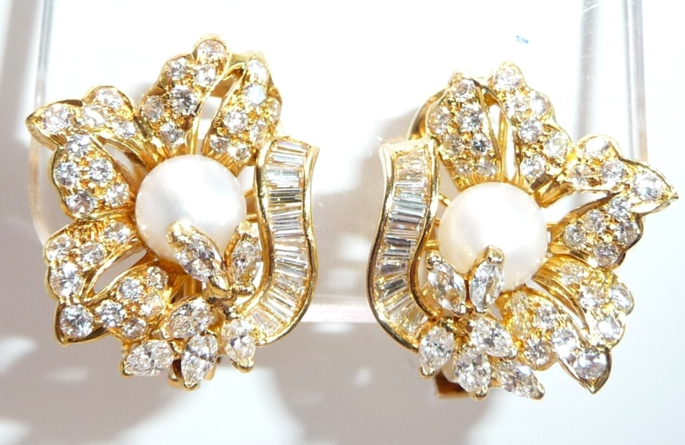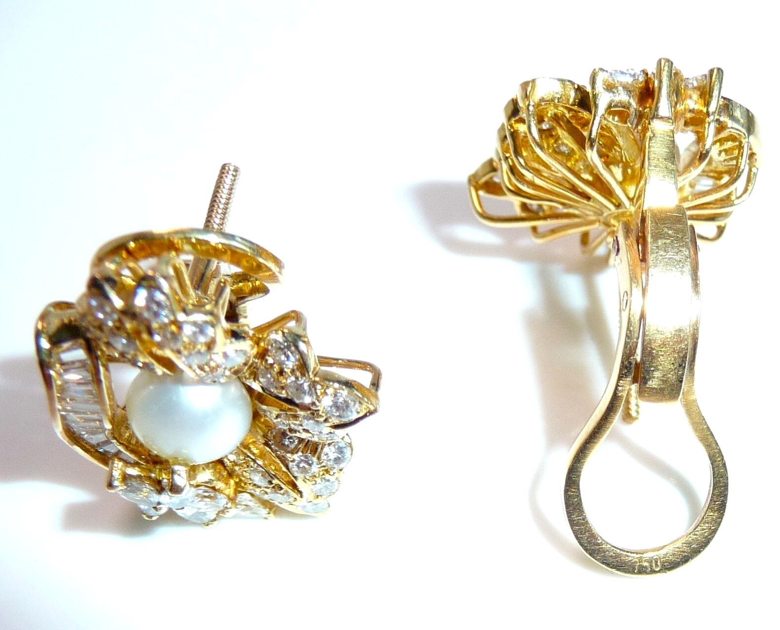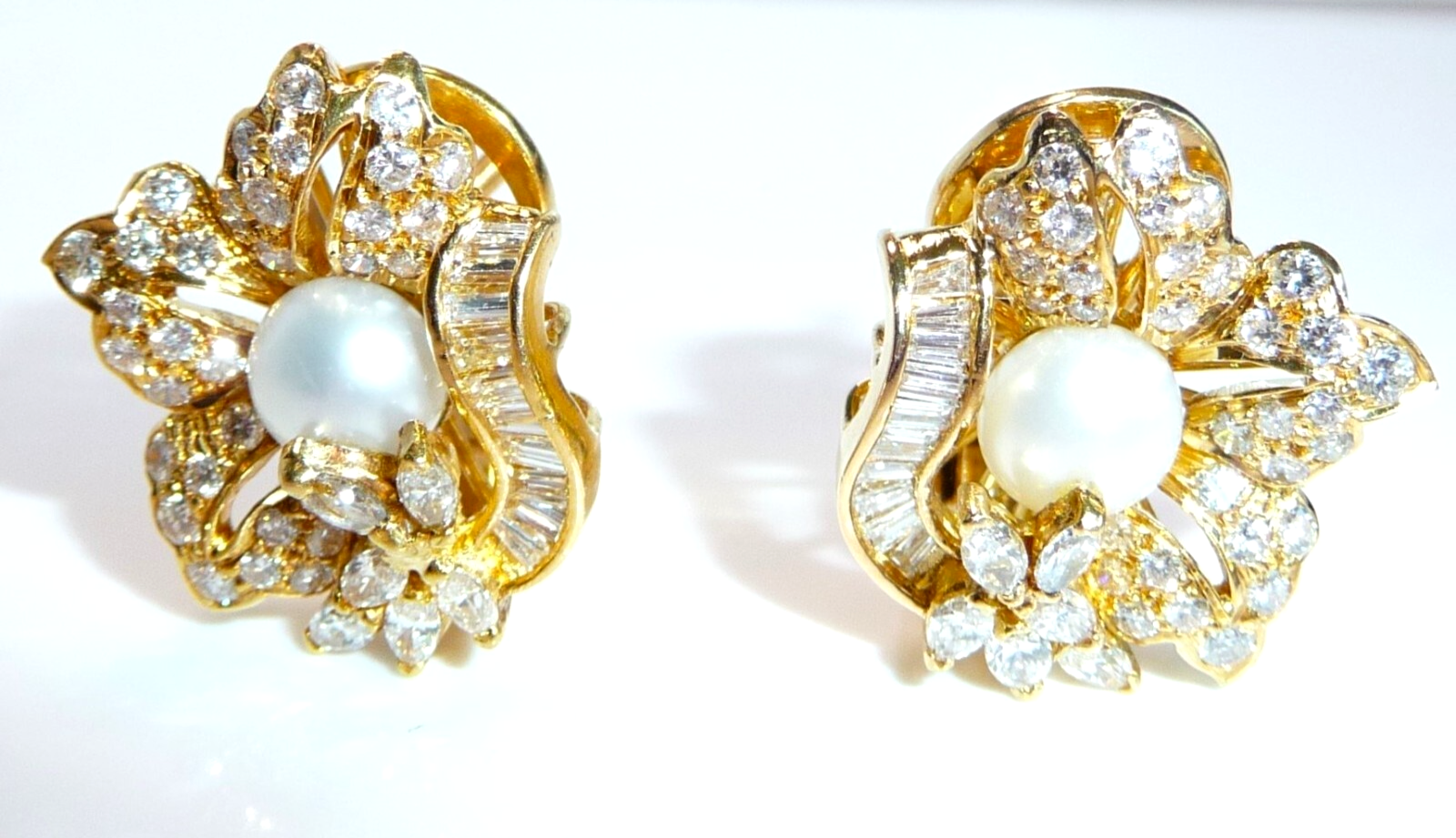 Ohrringe Omega Clips 750 Gelbgold 2.60ct. Diamanten Perle 20,8 x 19,3 mm 14,3gr
