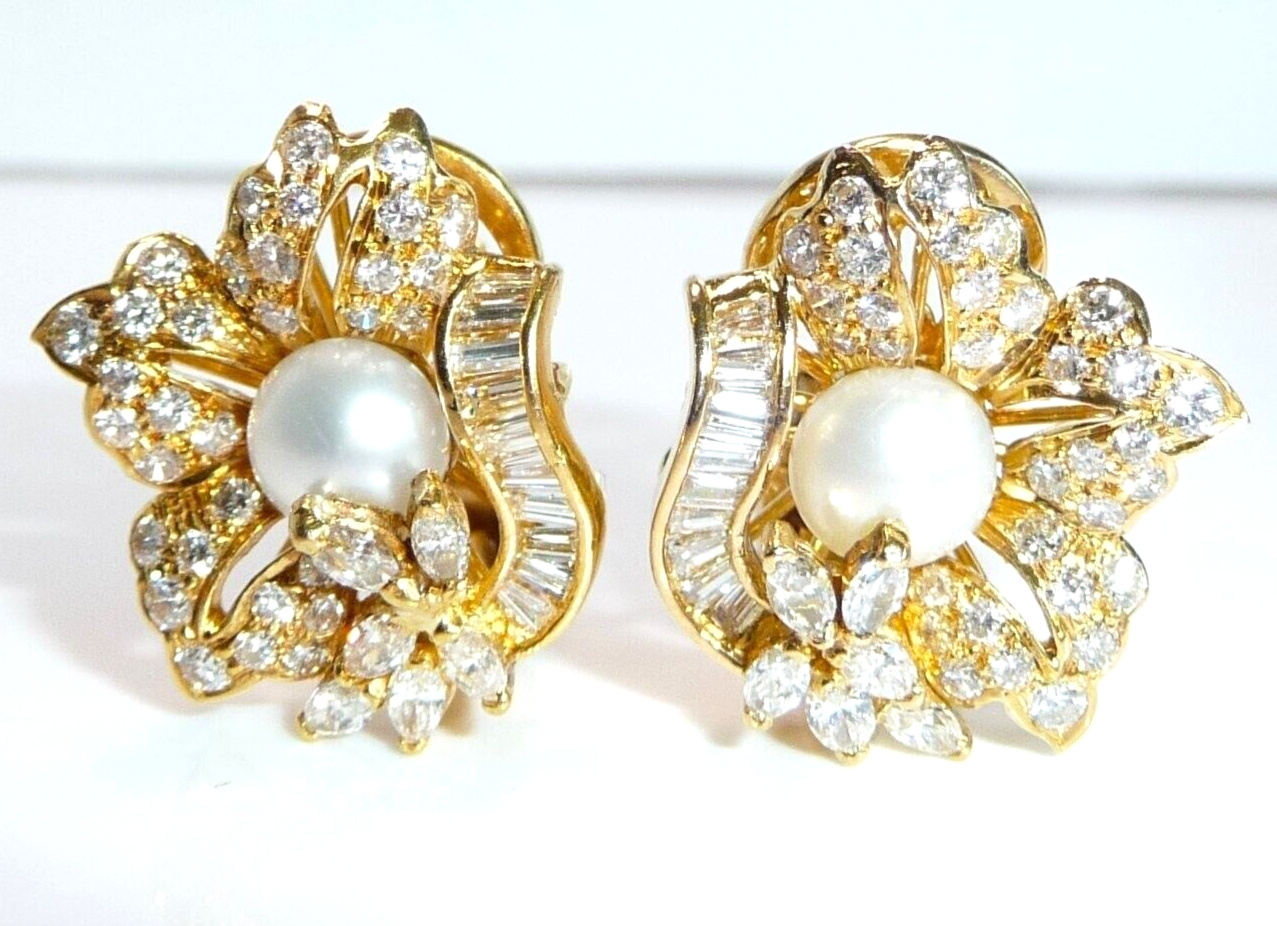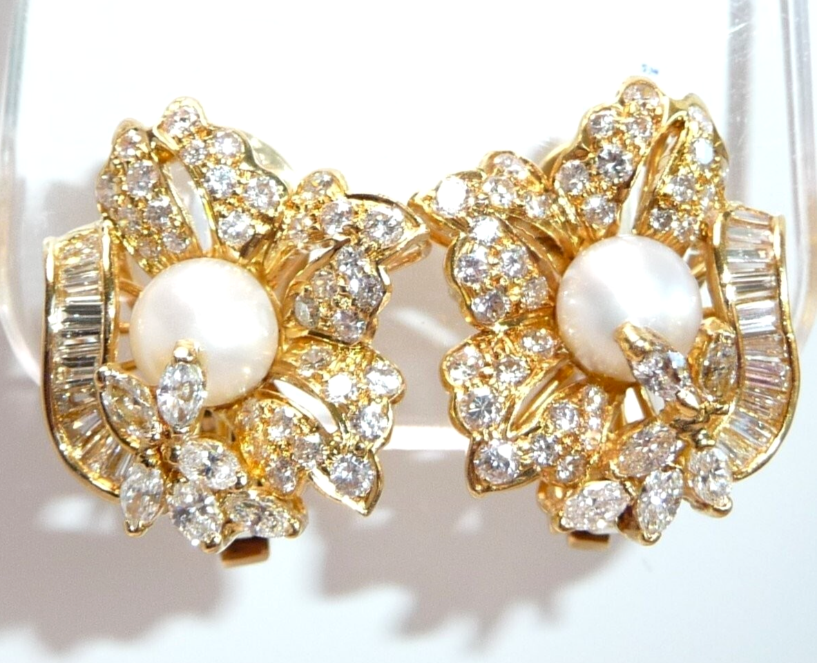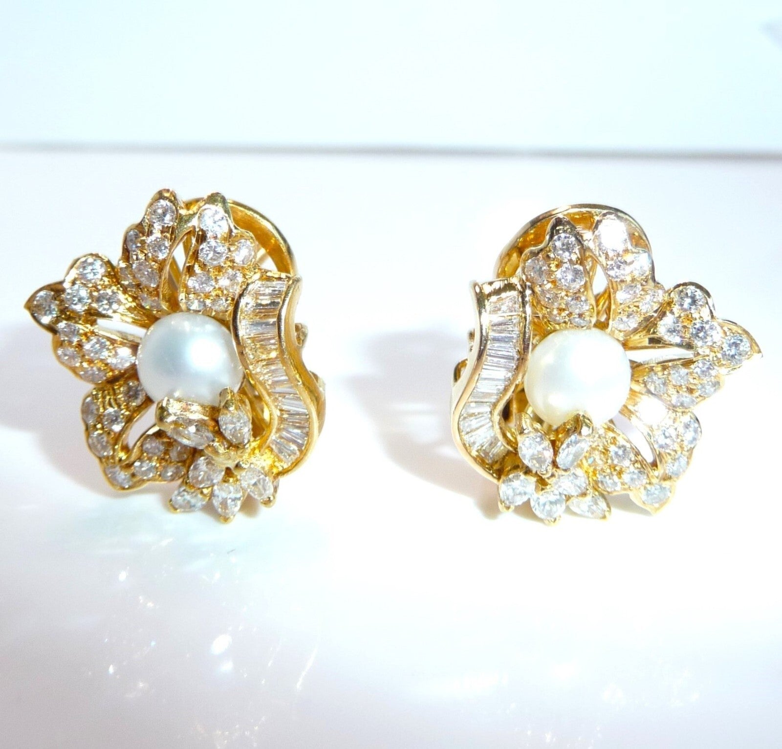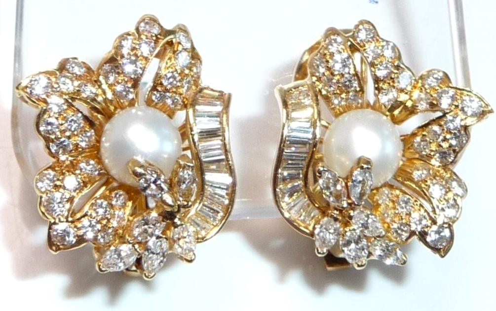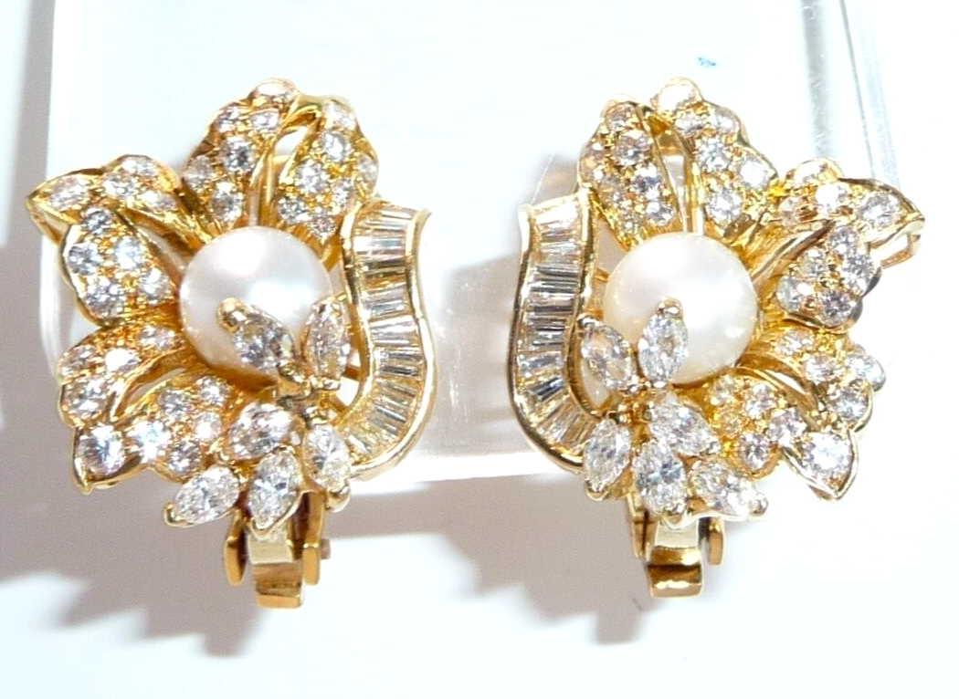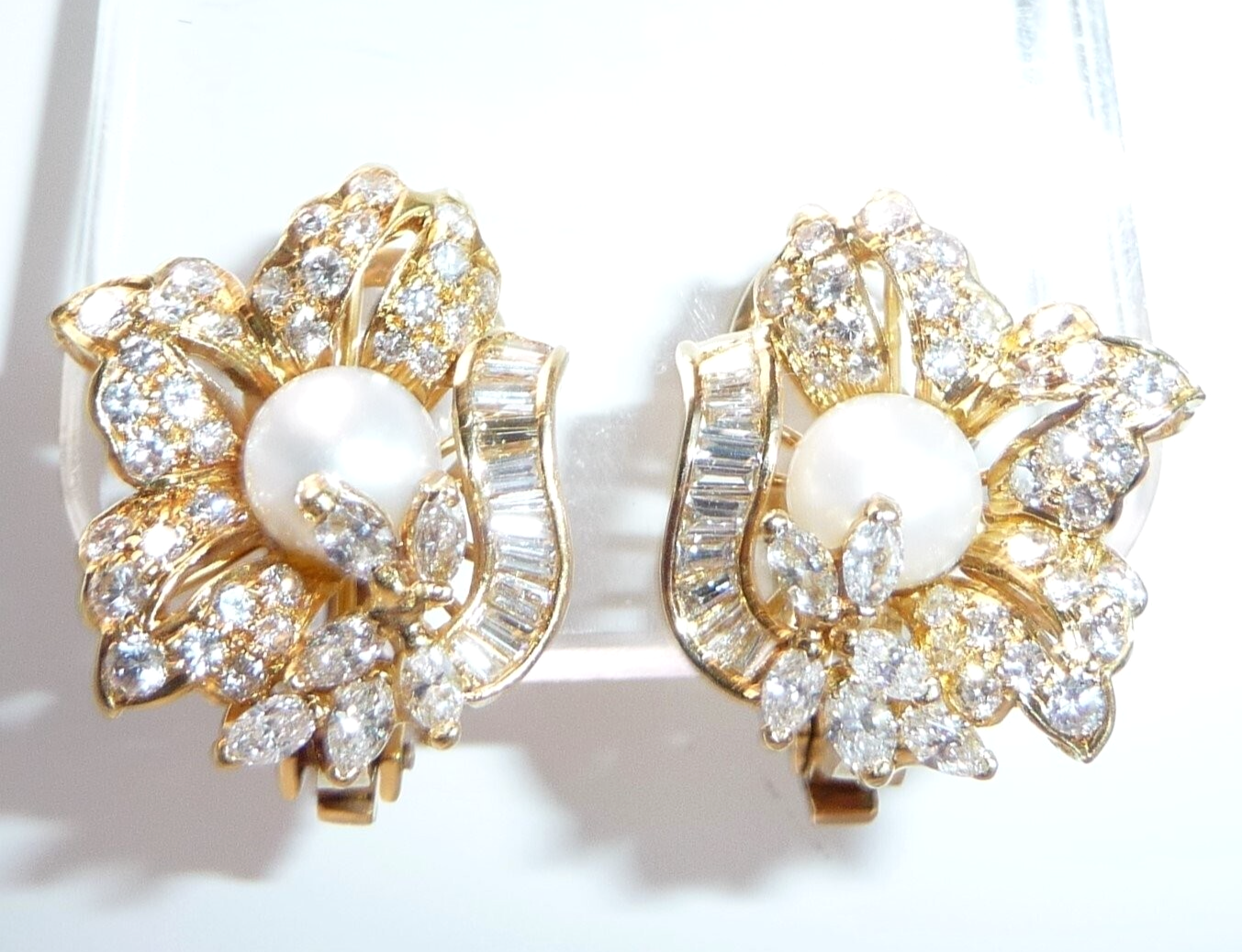 Ohrringe Omega Clips 750 Gelbgold 2.60ct. Diamanten Perle 20,8 x 19,3 mm 14,3gr