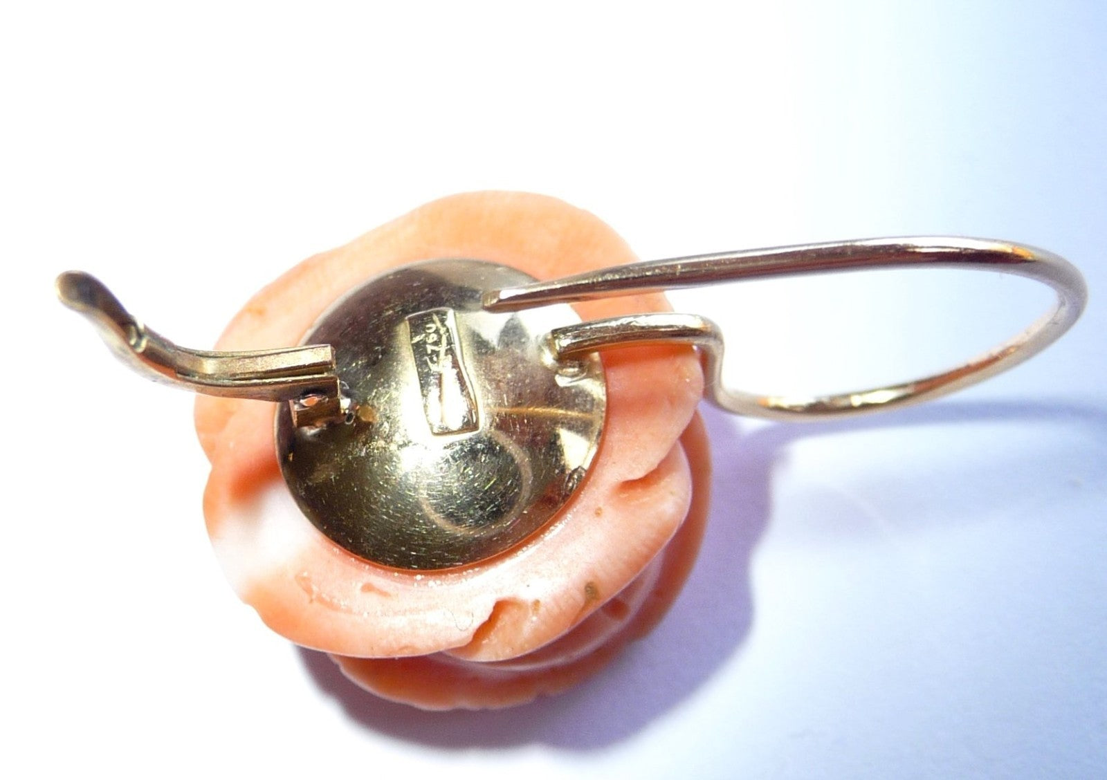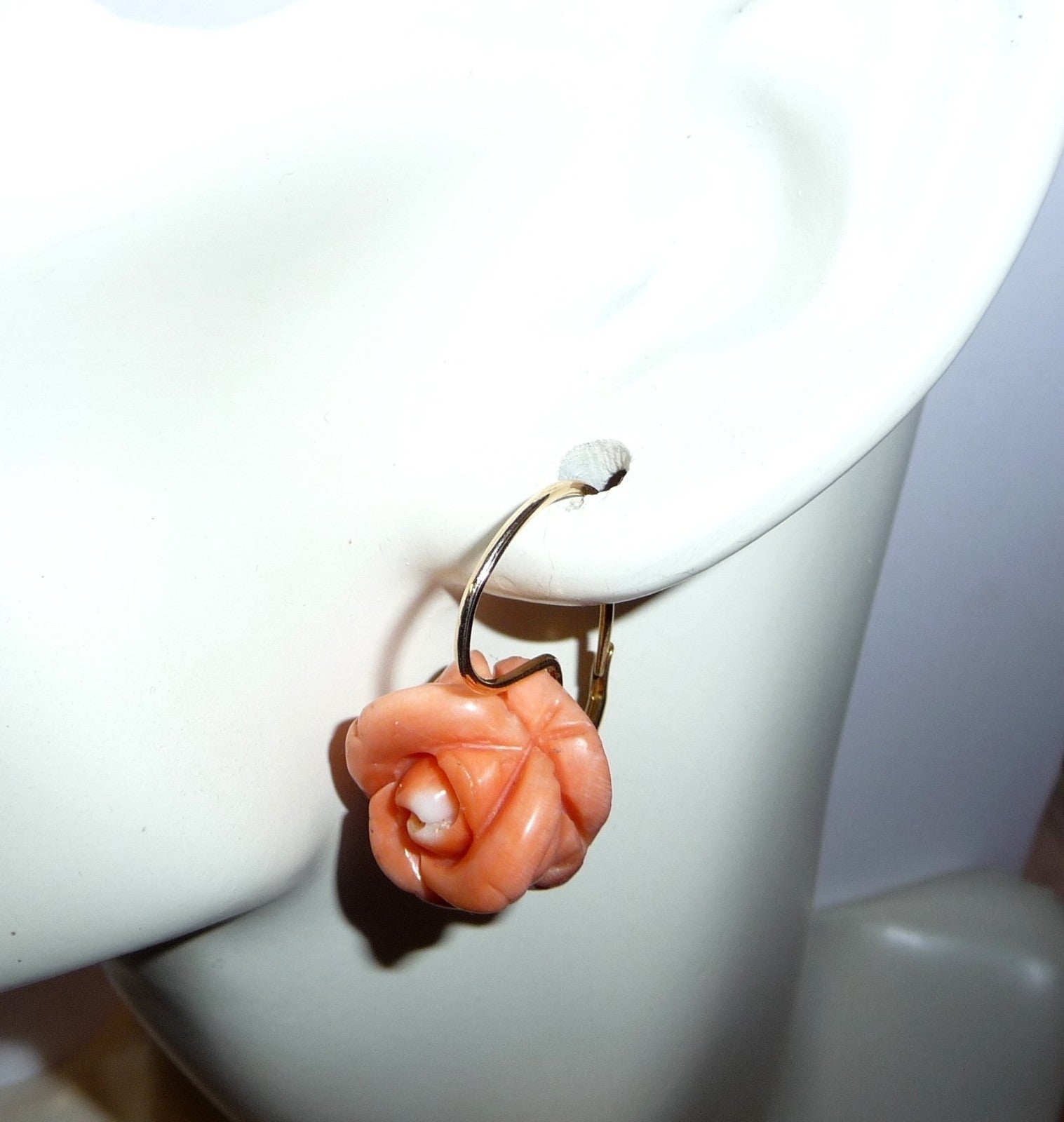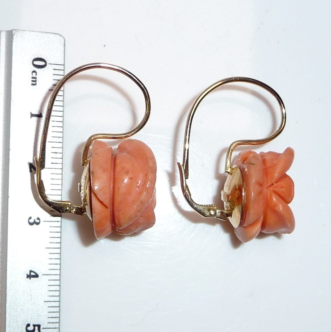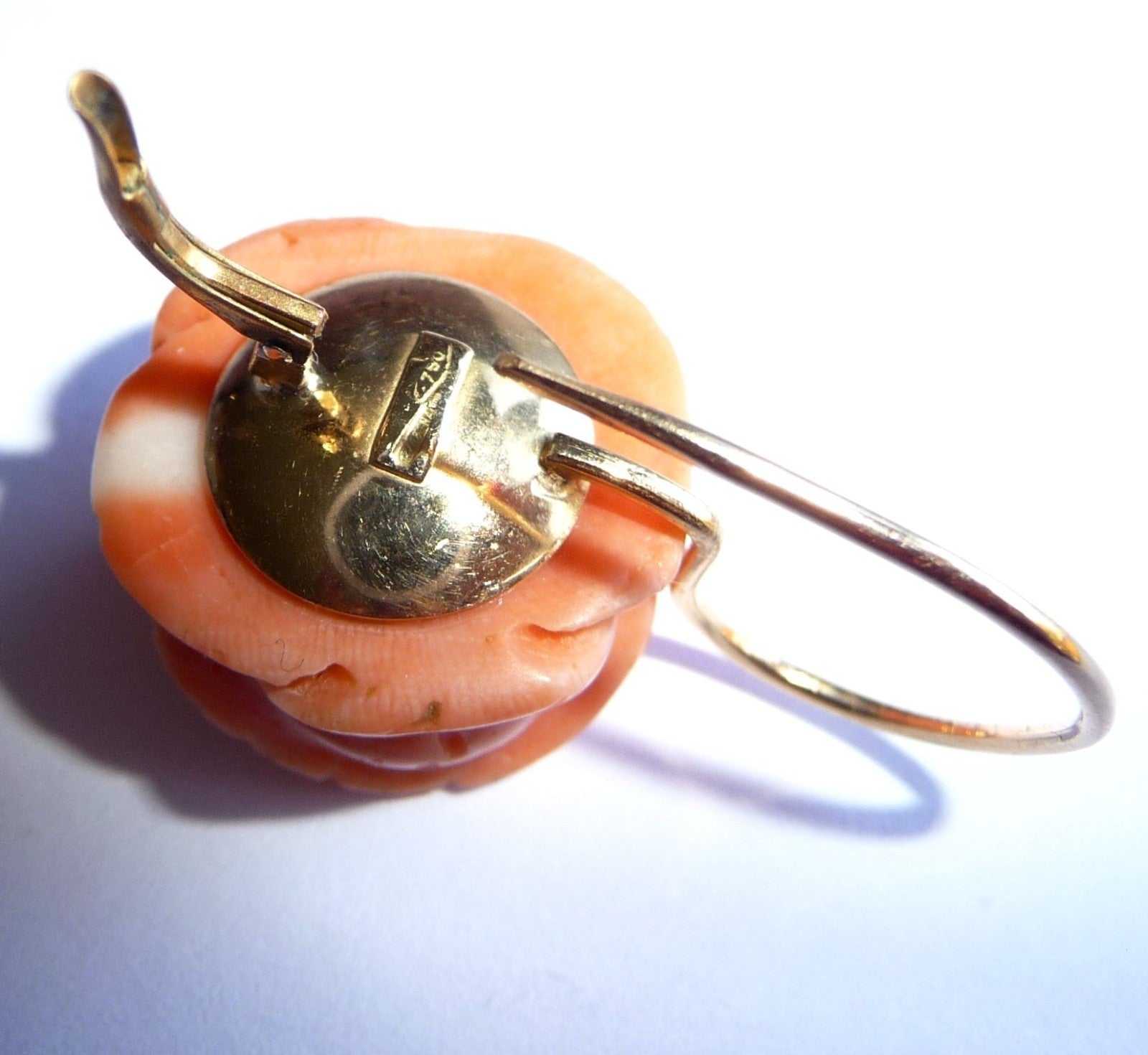 Die Ohr-Brisuren sind von Hand geformt und schön groß, so dass die Korallen-Rosen optimal unter dem Ohrläppchen hängen. Italienische Meisterarbeit.