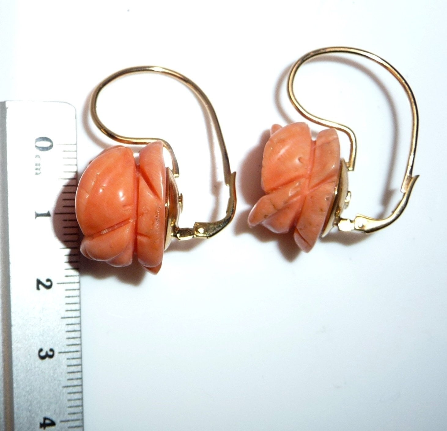 Ohrringe Rose 750 Gelbgold Koralle Pelle dAngelo Länge 31 mm 13,2gr