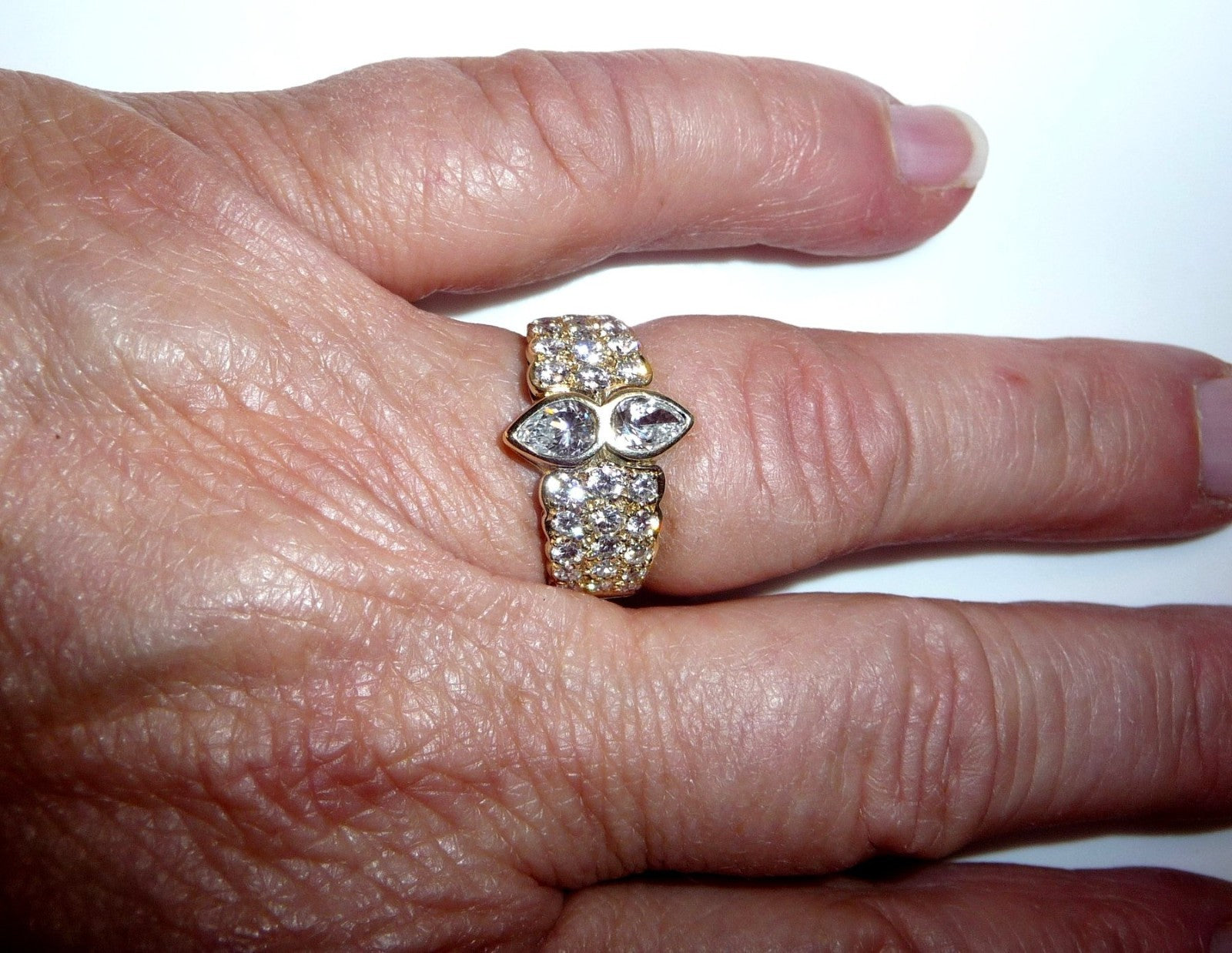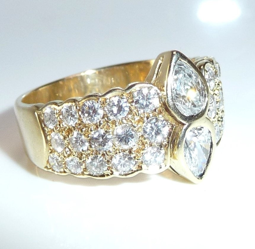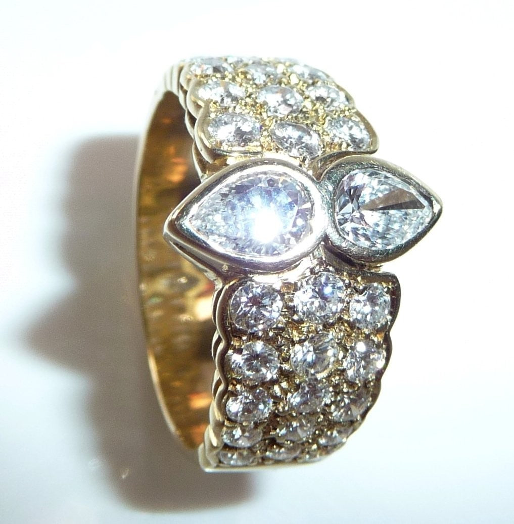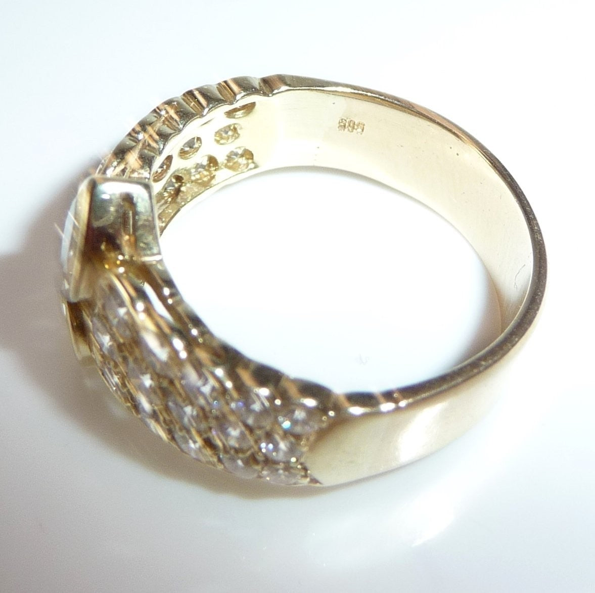 Ring in 585/ 14 K Gelbgold. Der breite Bandring ist besetzt mit insgesamt 32 Diamanten von total 1.80 ct.