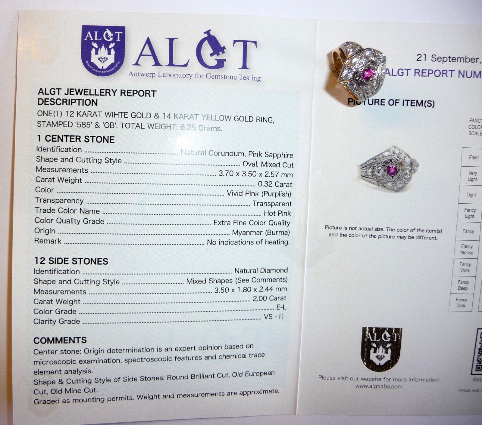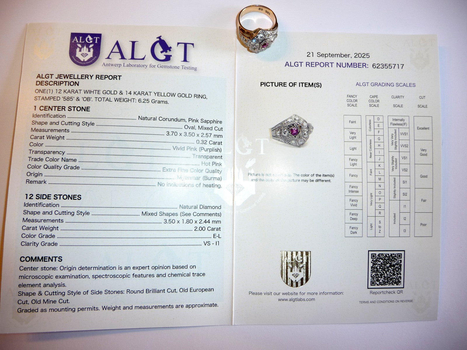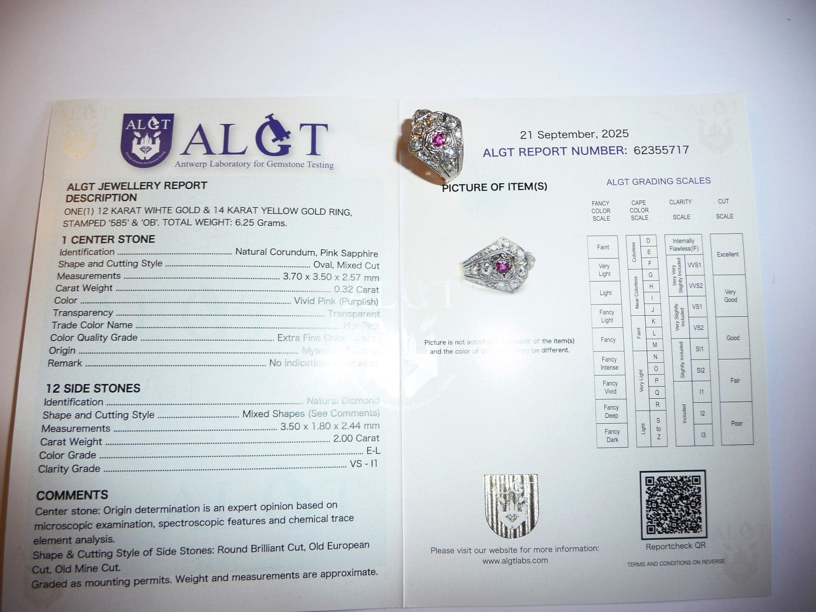 Ring 585 Gold 2.00ct. Diamanten pink Saphir Weißgold Gelbgold Zertifikat ALGT