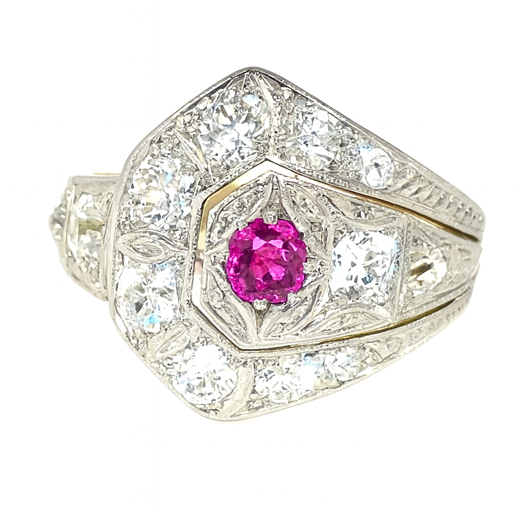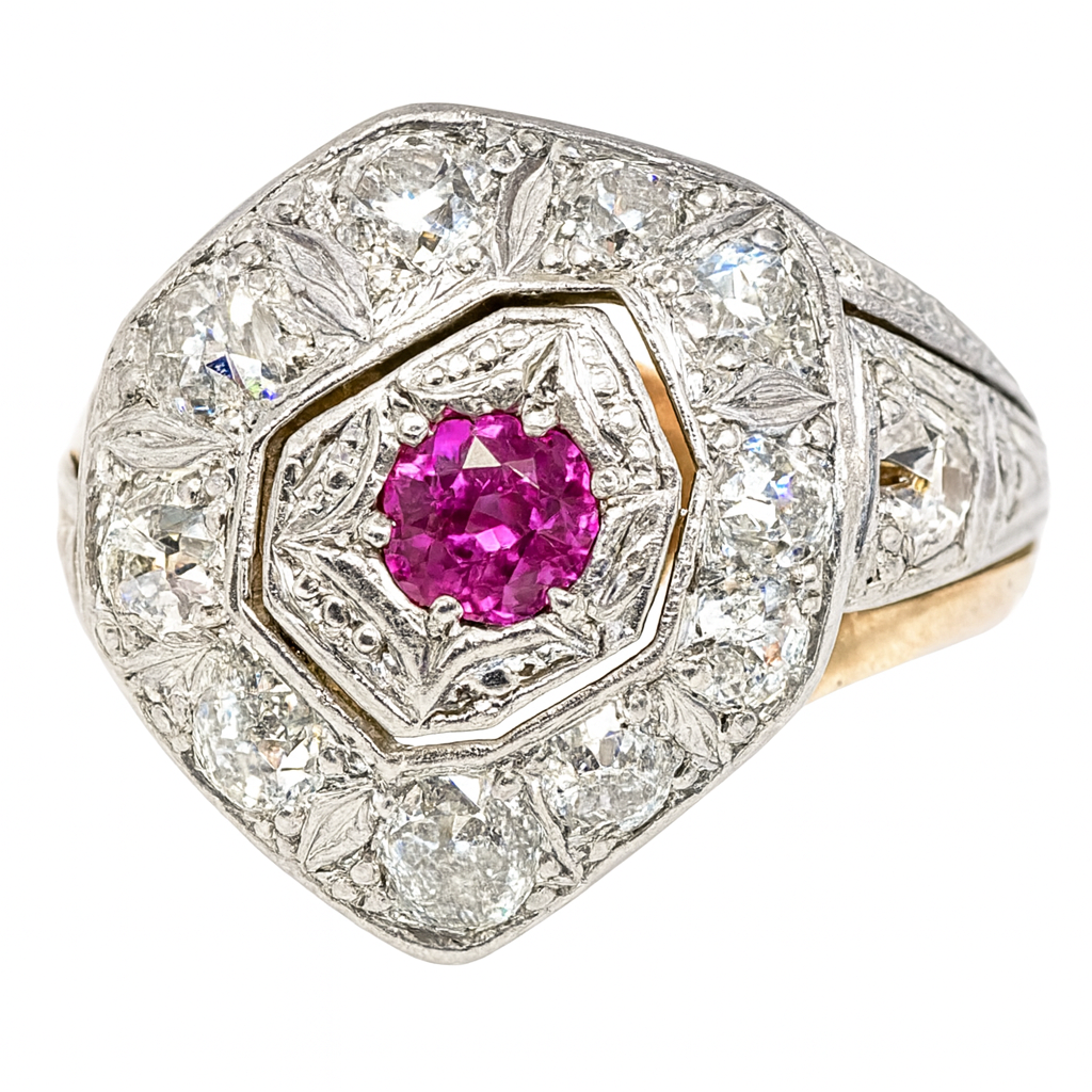 Der pinke Saphir zeigt keine Anzeichen einer Bearbeitung - auch keine Erhitzung. Er wird geographisch als "Burma" (Myanmar-) Saphir klassifiziert. Karat-Gewicht: 0.32 ct.