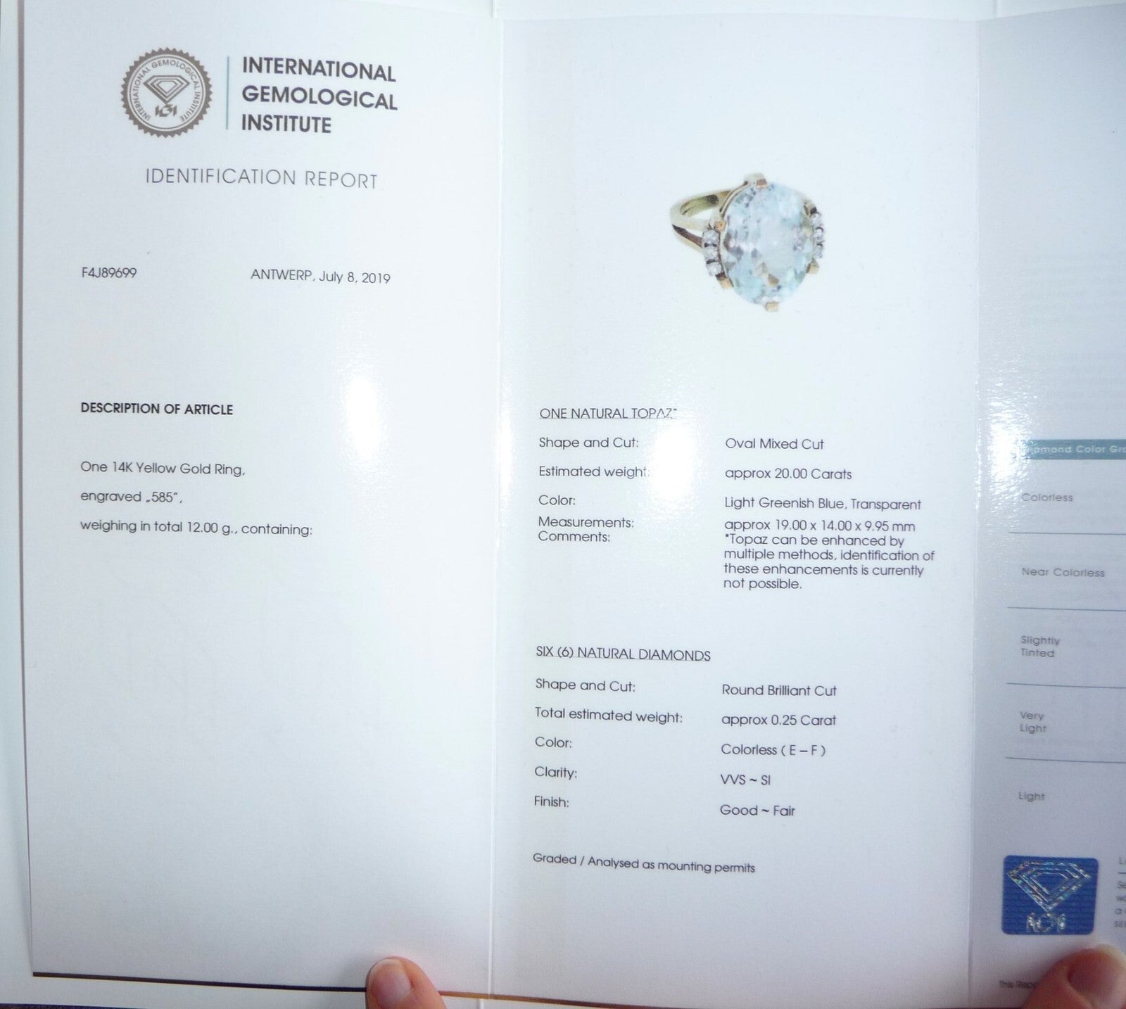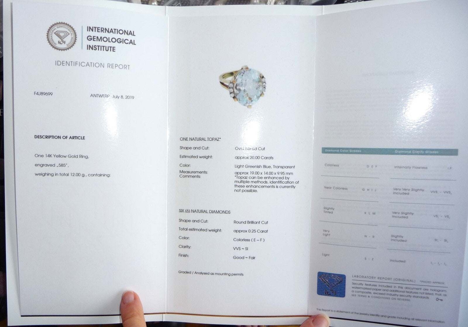Ring 585 Gold 20.0ct Topas 0.25 ct Brillanten Gr 55 / 12 Gramm IGI Zertifikat