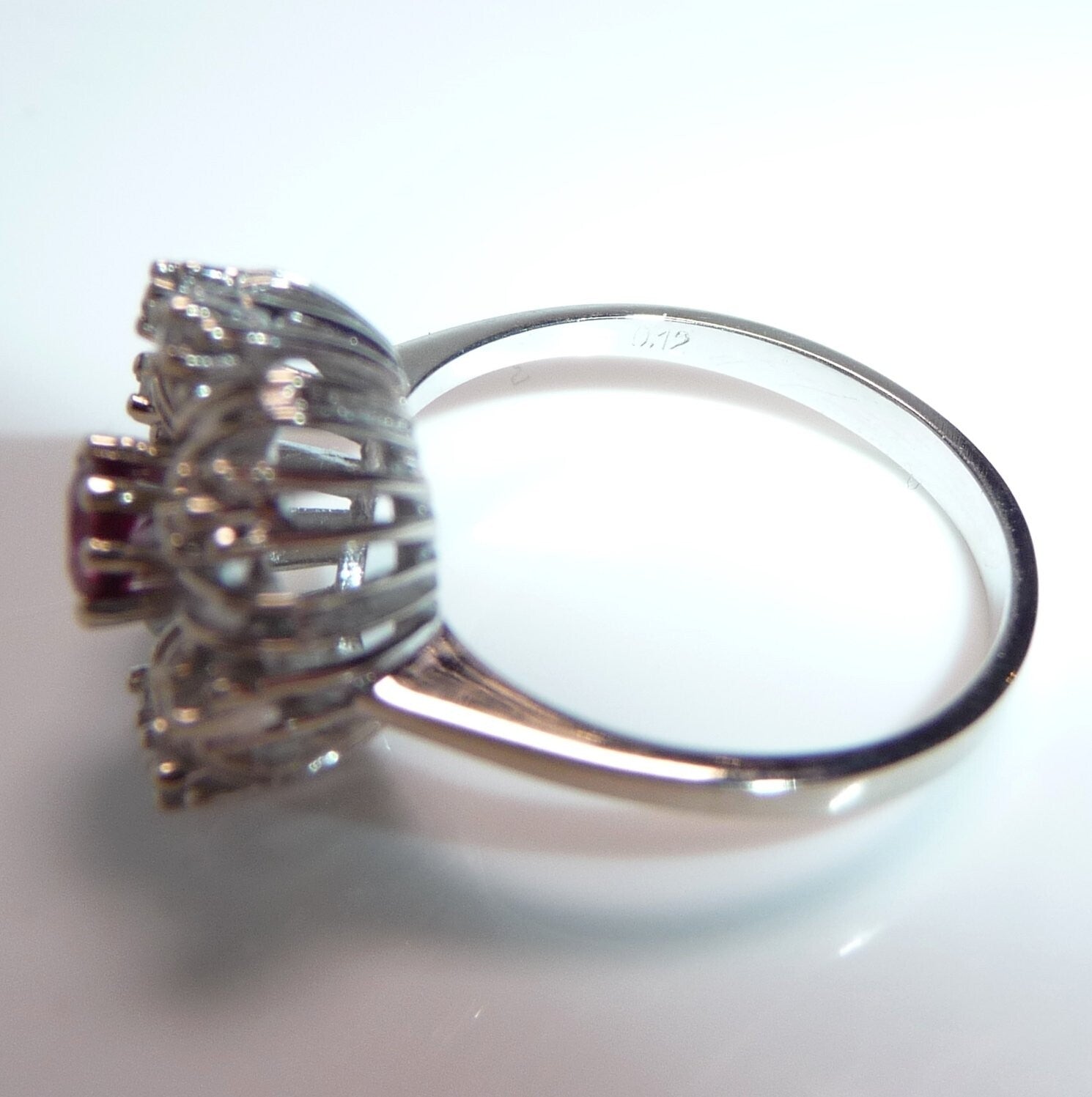 Ring 585 Gold Weißgold 0.12ct Diamanten 0.20 ct Rubin Gr 55/ 17,5 mm änderbar