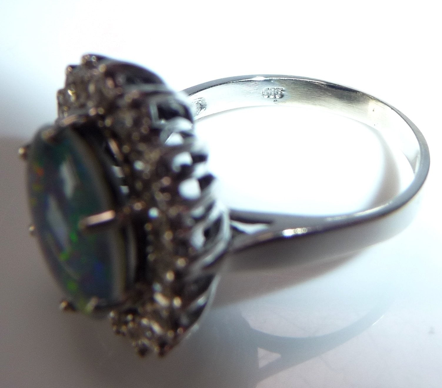 Ring 585 Gold Weißgold 0.20ct. Diamanten Opal Triplette Gr: 53 änderbar 5,3g