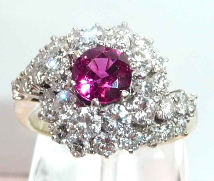 Ring 750 Gold 1.40 ct Diamanten 1.0 ct pinker Saphir Gr: 55-56 änderbar 5,6g