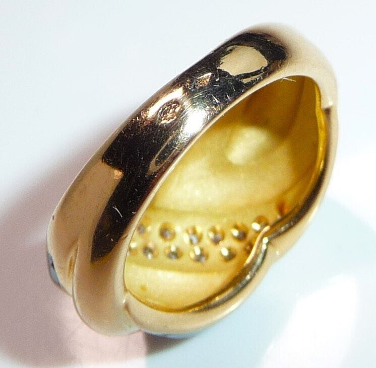Wunderschöne, präzise Goldschmiede-Arbeit aus Frankreich. Signiert innen mit einem Marken-Zeichen: DD gespiegelt und ineinander legiert.