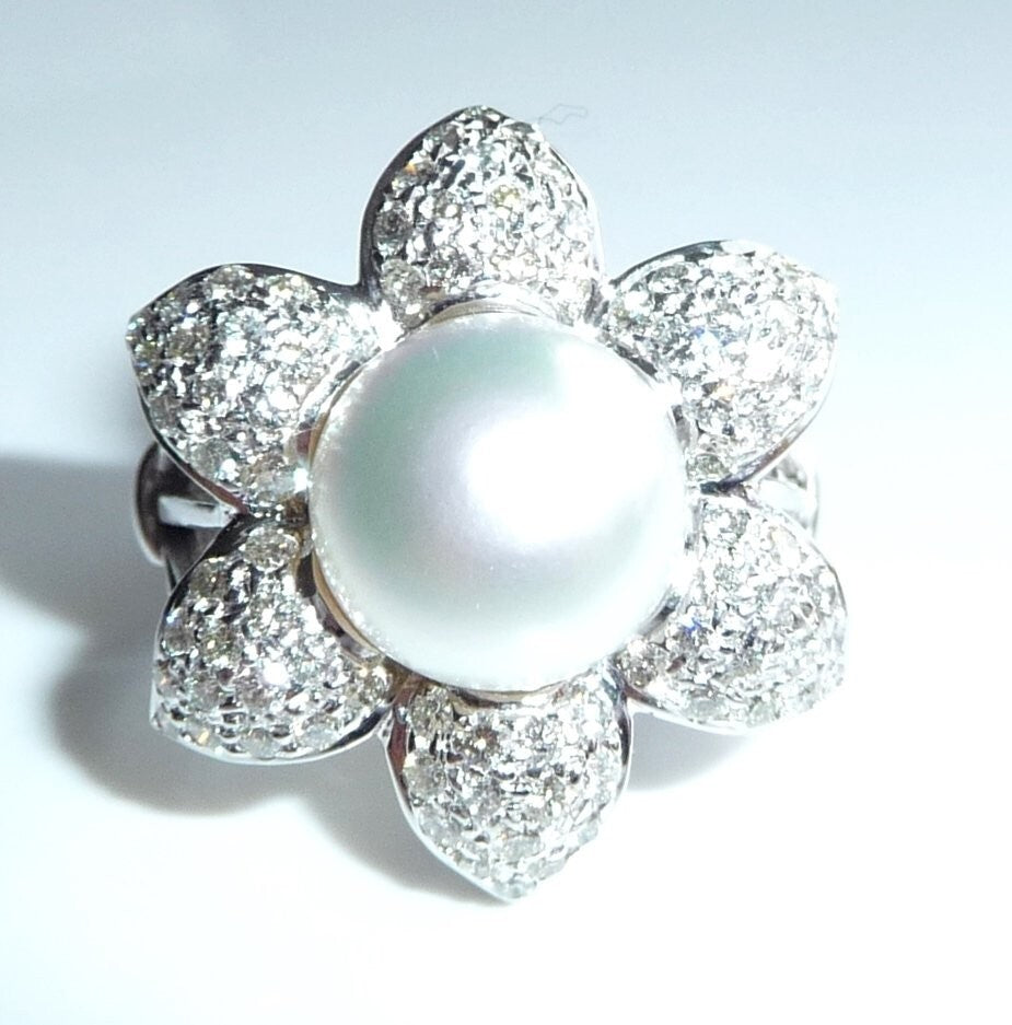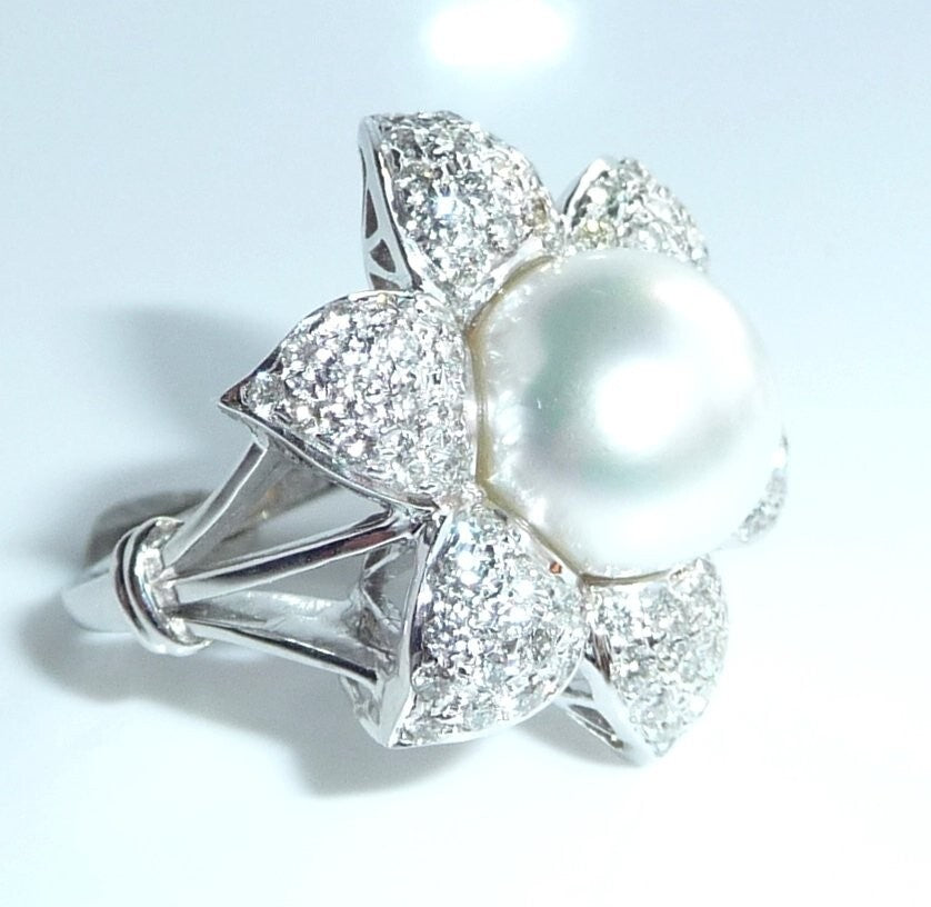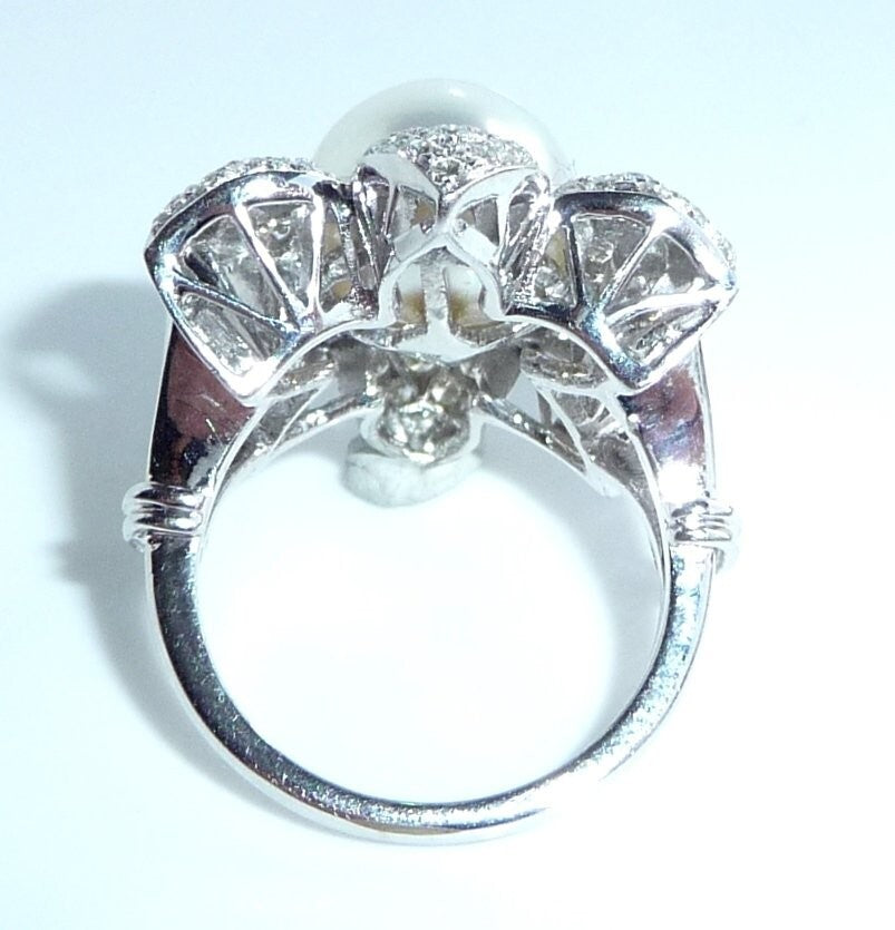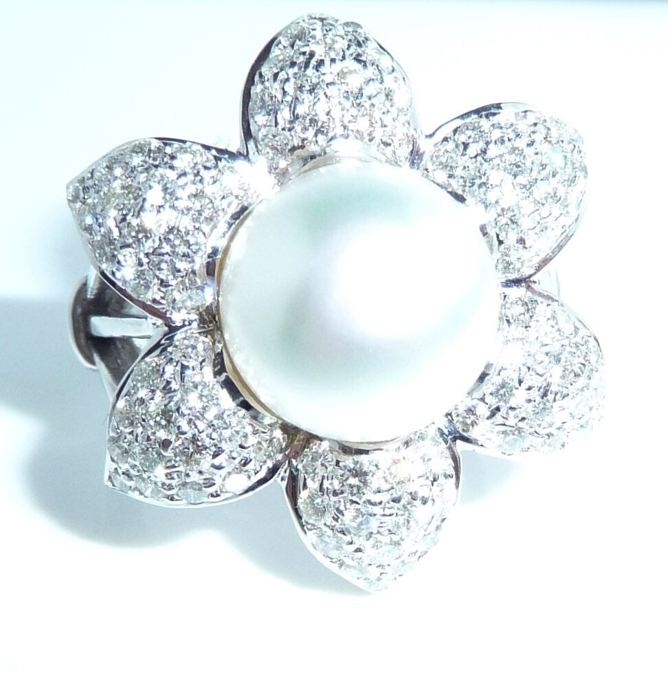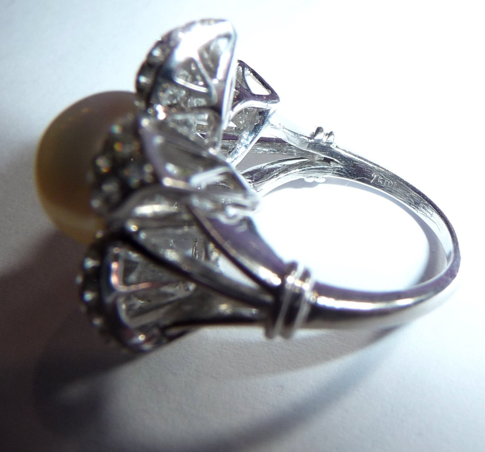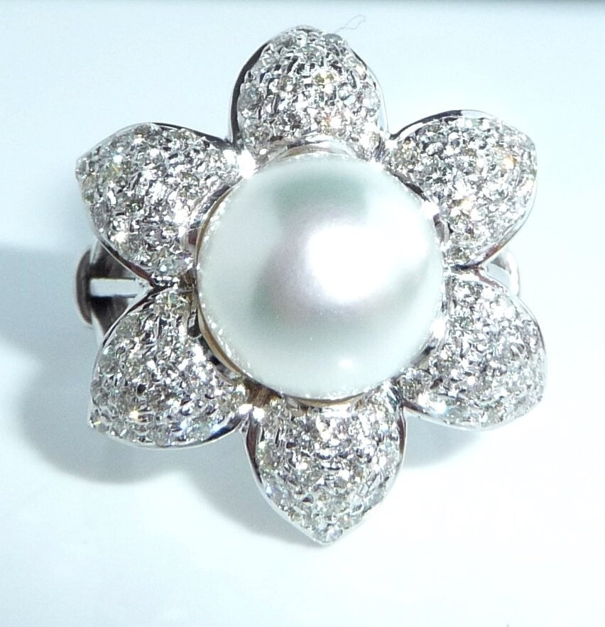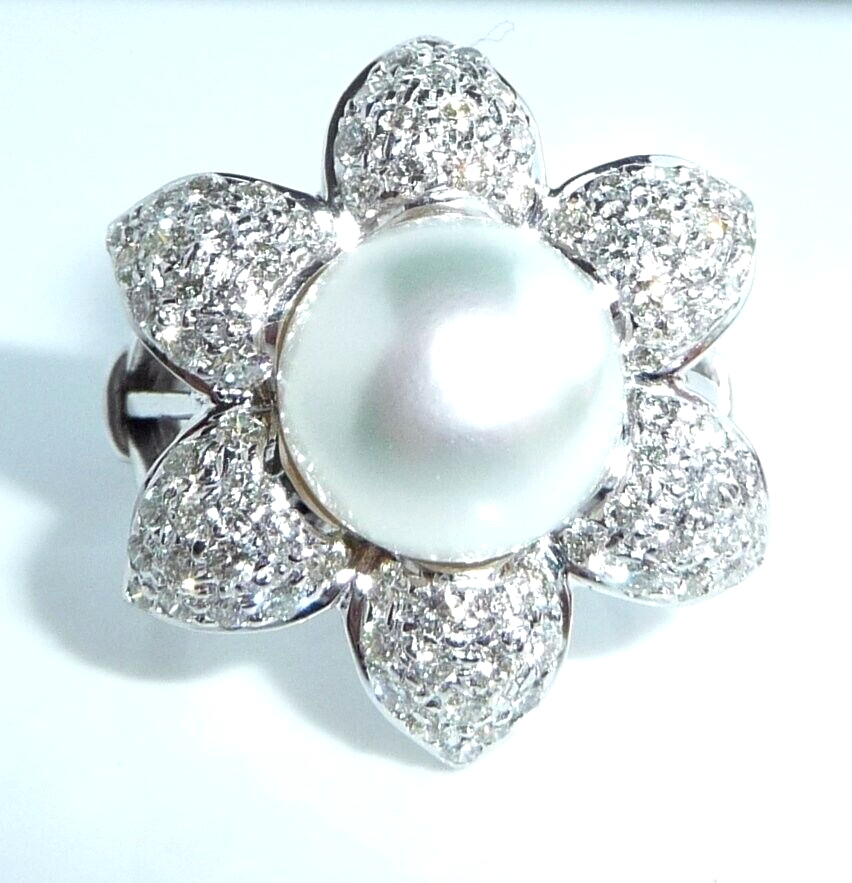 Ring 750 Weißgold 1.70ct. Diamanten Südsee-Perle Gr. 53 massive 11 Gramm