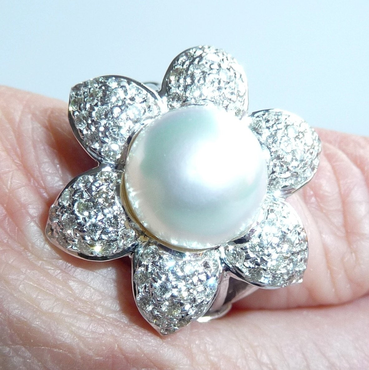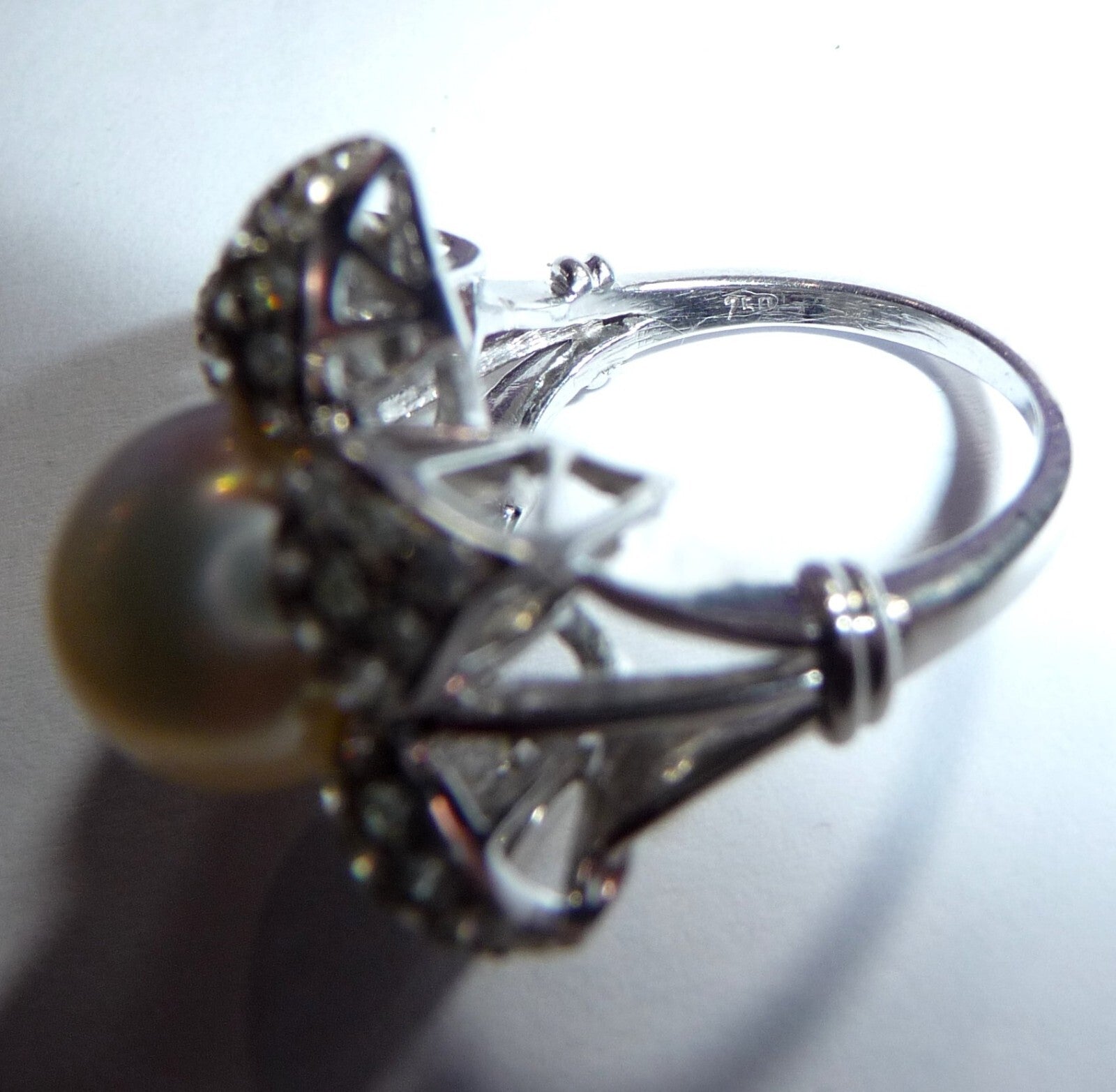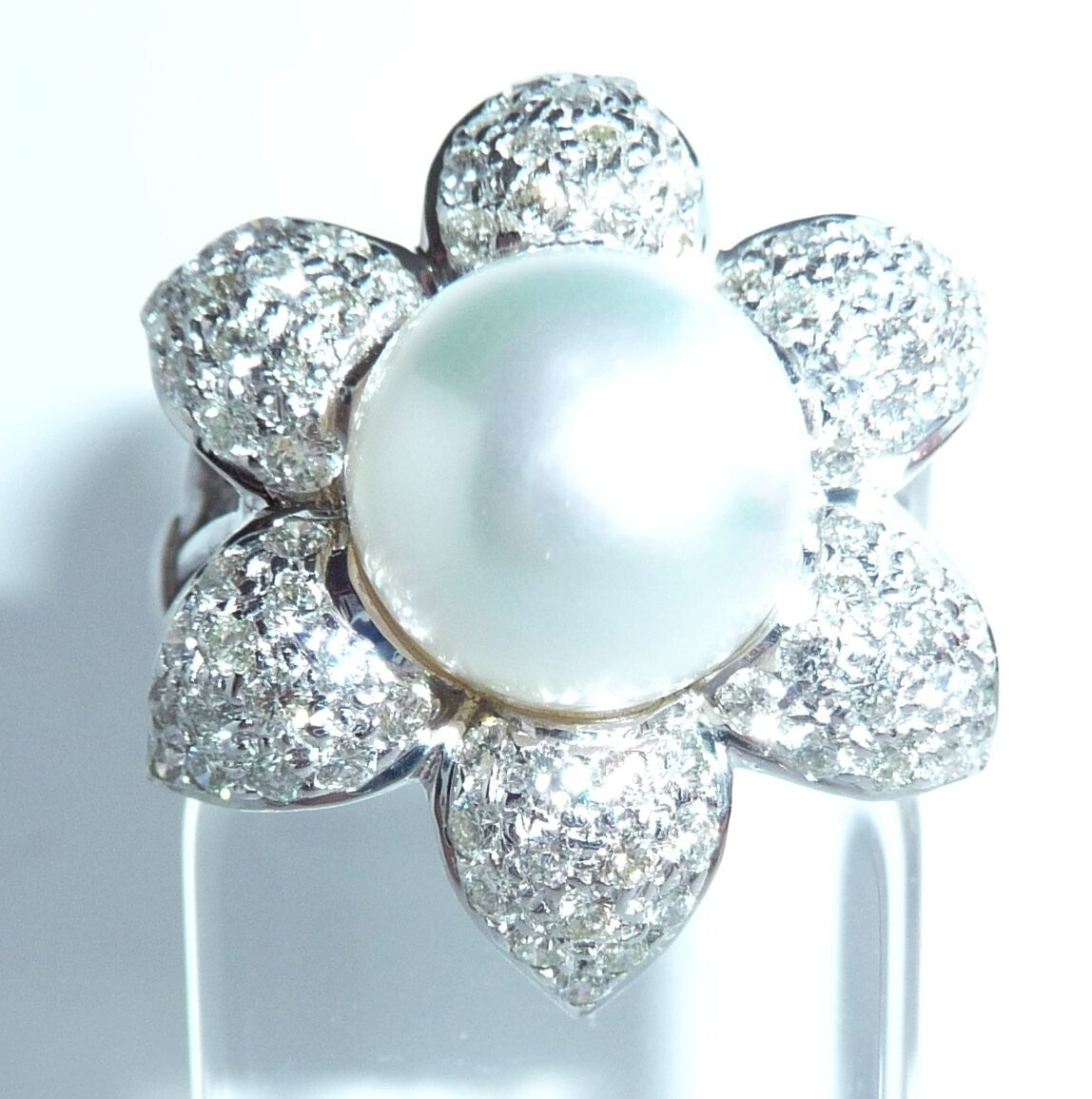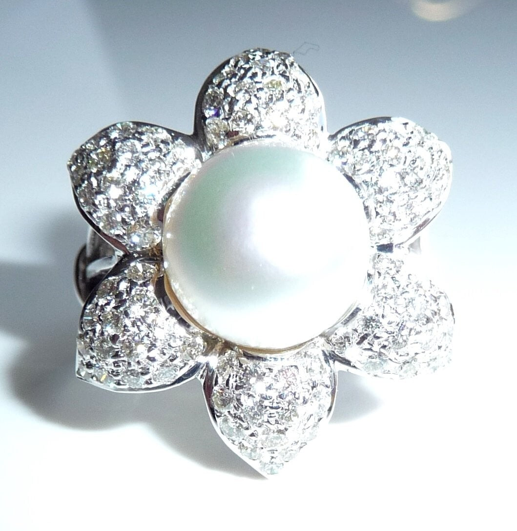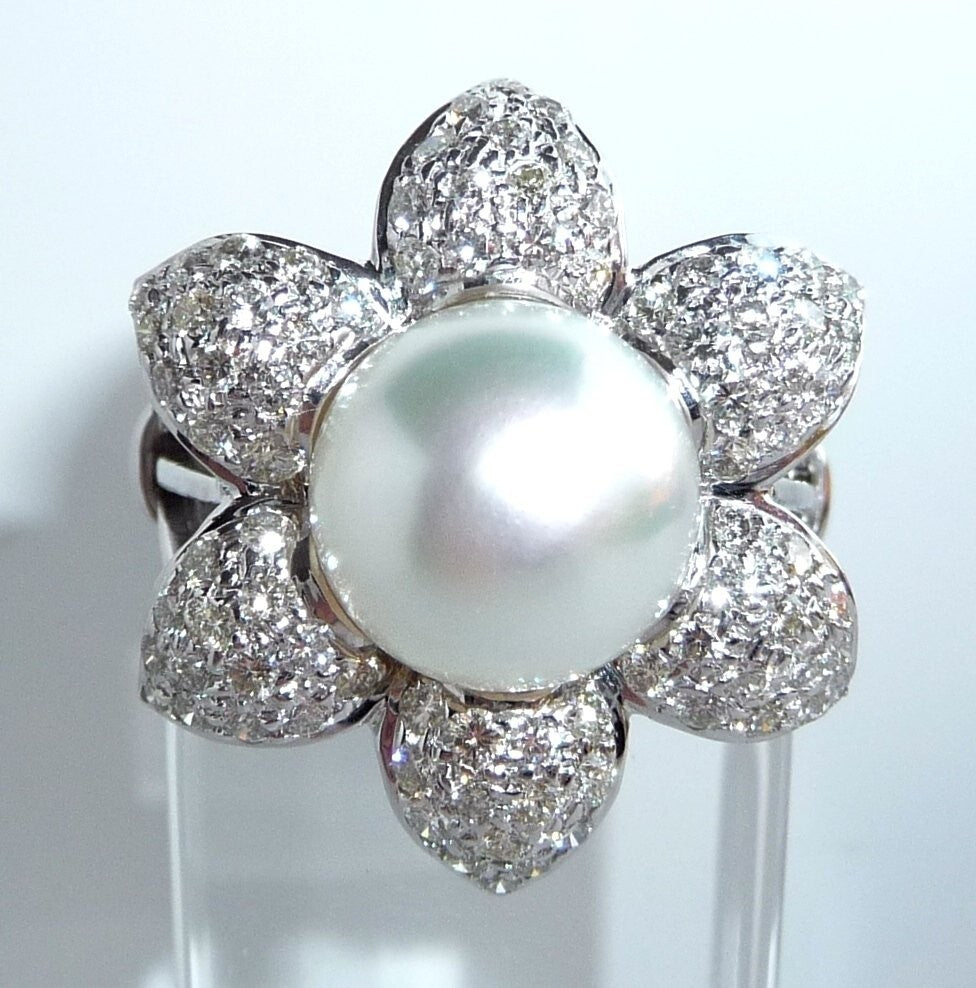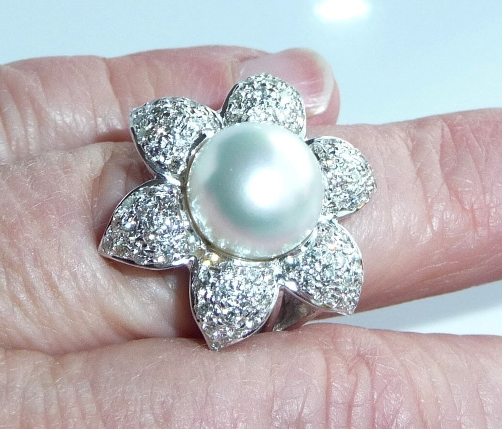 Ring 750 Weißgold 1.70ct. Diamanten Südsee-Perle Gr. 53 massive 11 Gramm