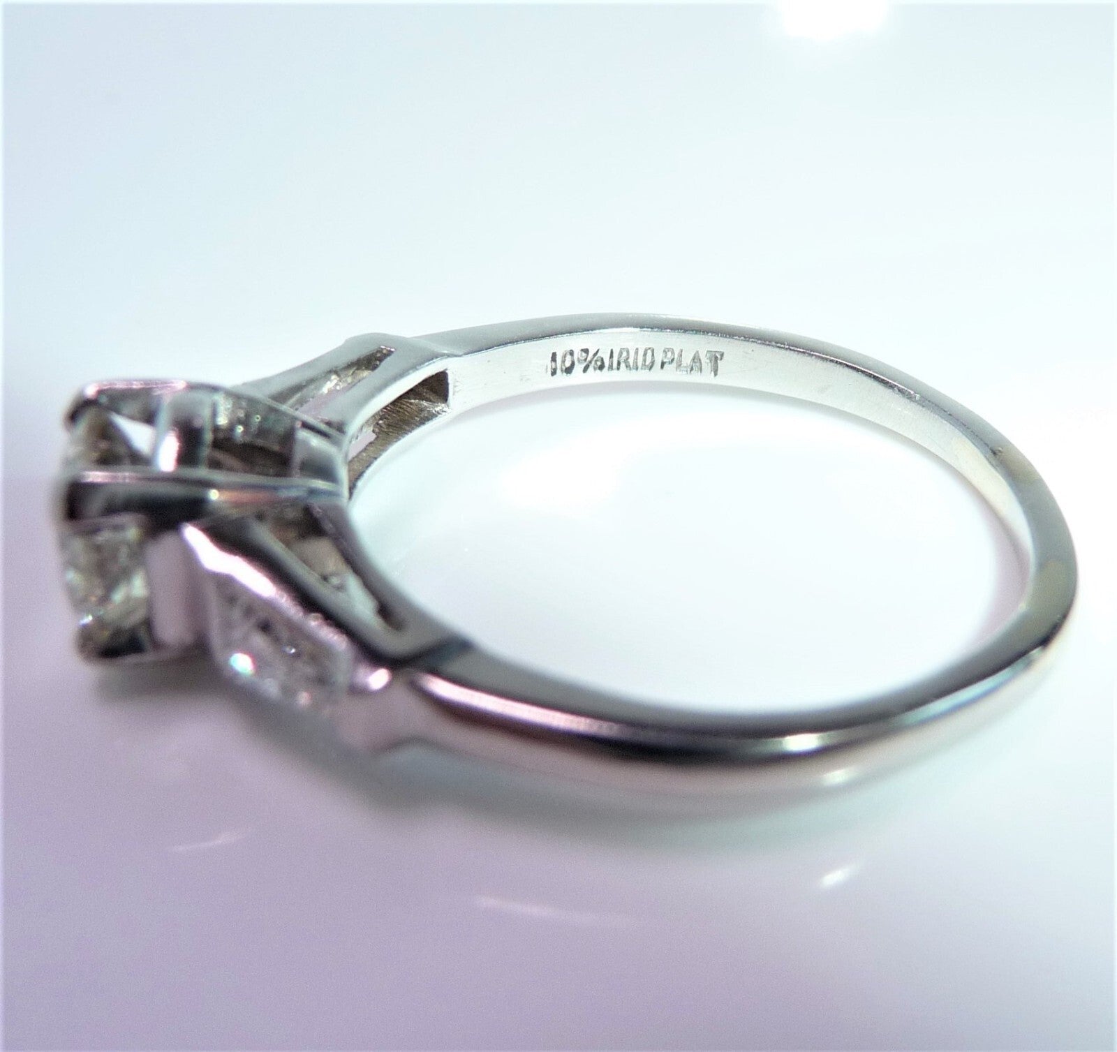 Gepunzt innen mit 10% IRID PLAT und graviert mit 0.86 für den zentralen Diamanten.
