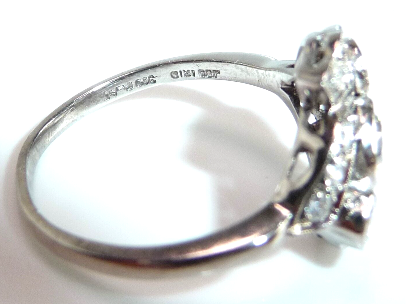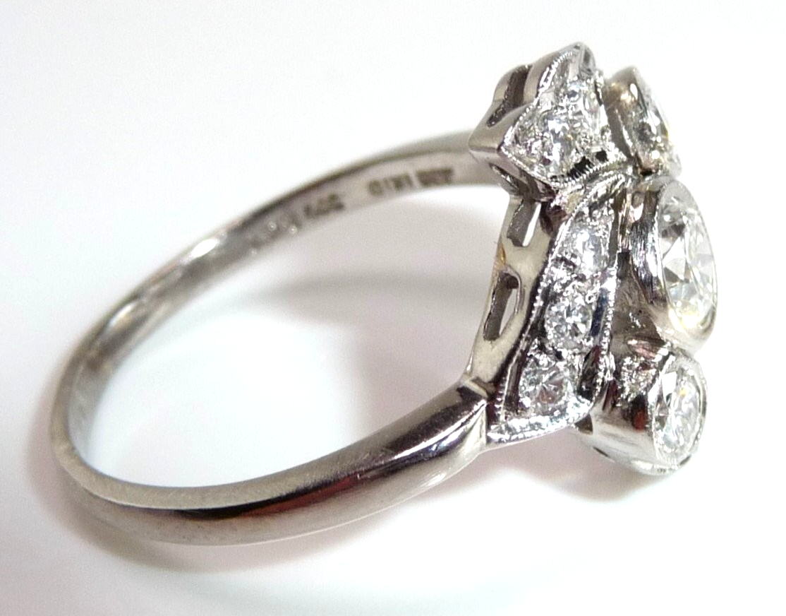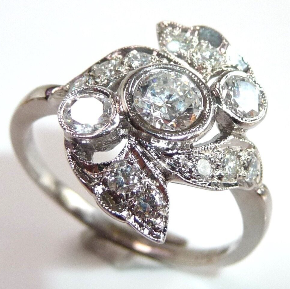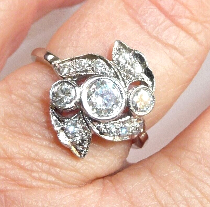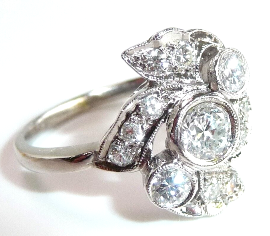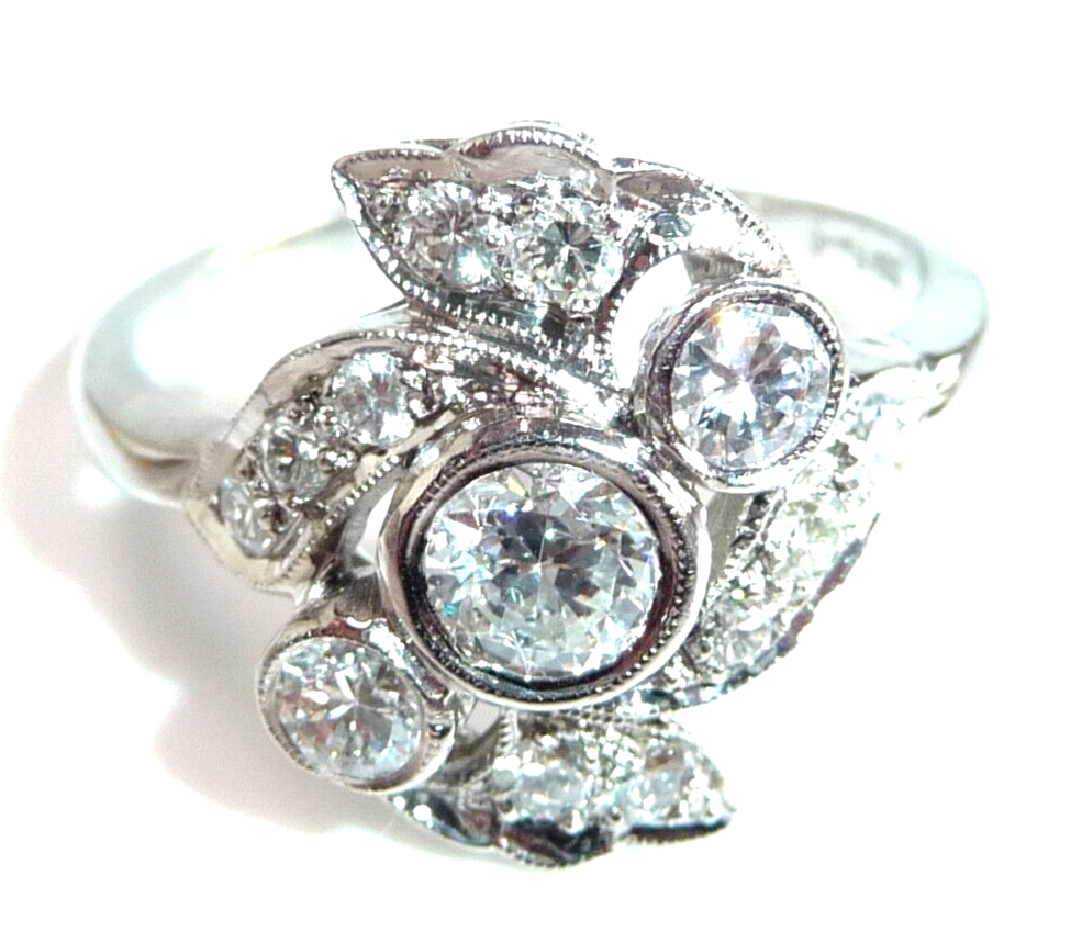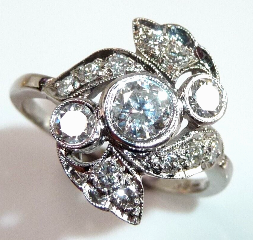 Ring 900 Platin + Iridium 0.88 ct Diamanten Gr 58 / 18,8 mm änderbar 6,5g ANTIK