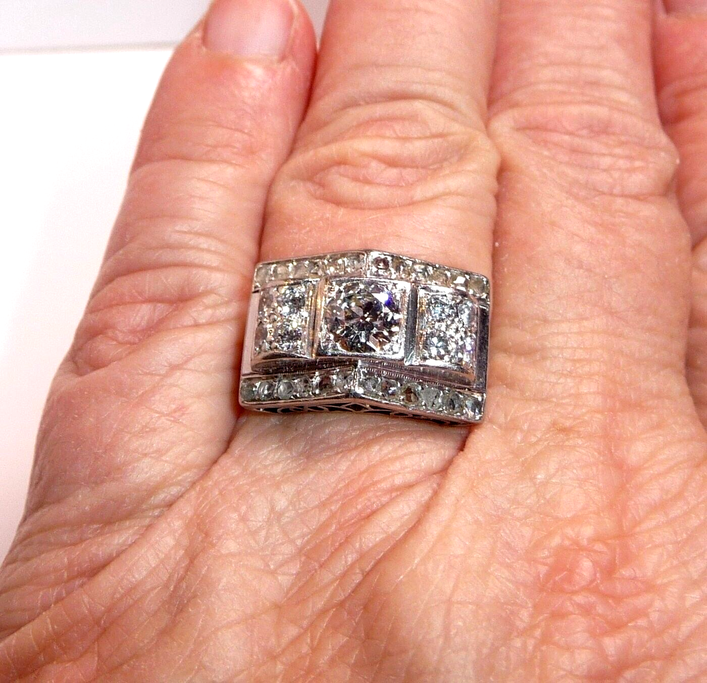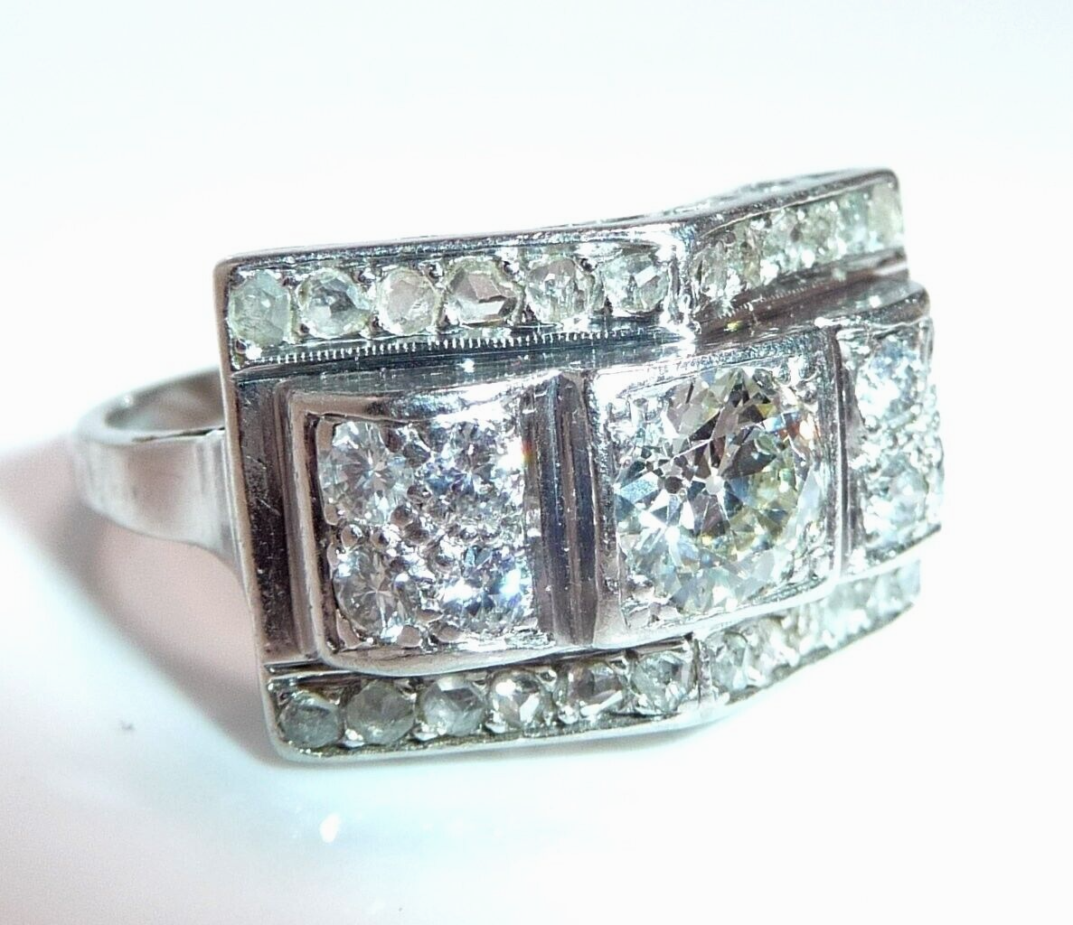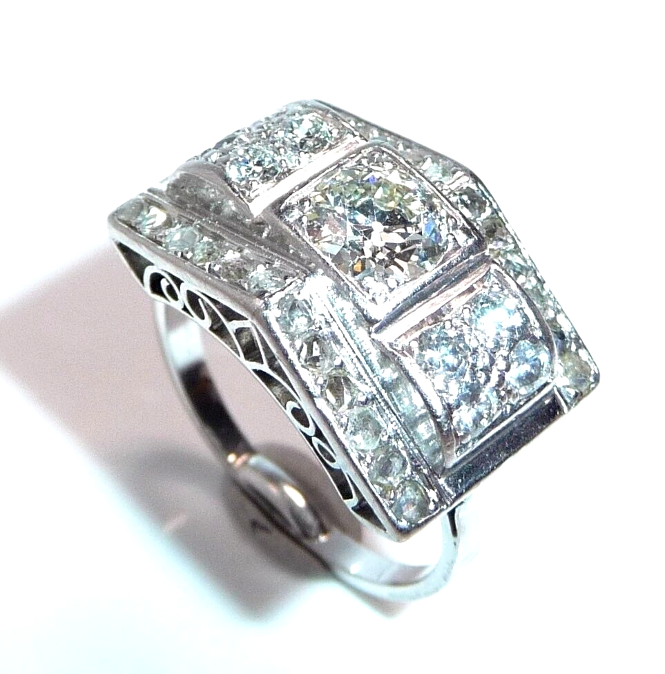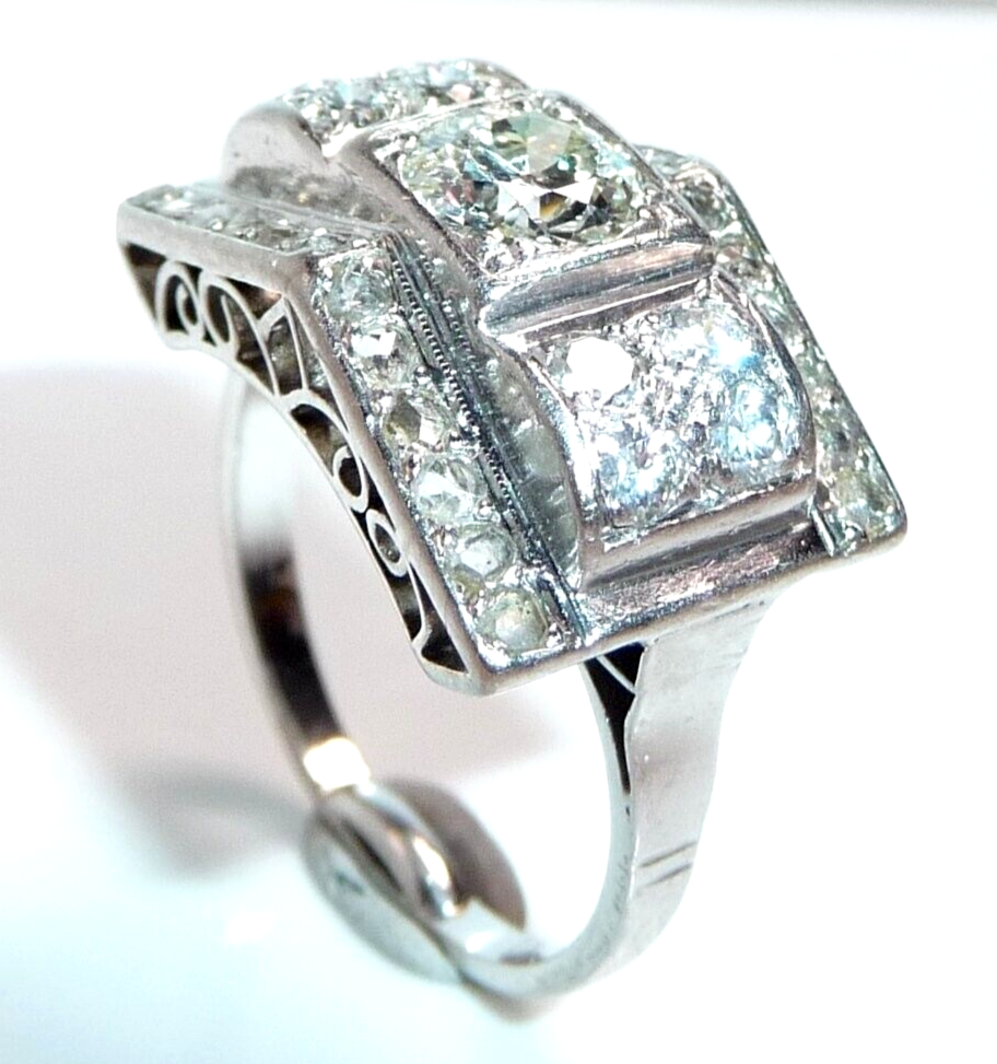 Ring antik Platin 1.50ct Diamanten Größe 55 änderbar 8,1 g Mitte: 0.85ct