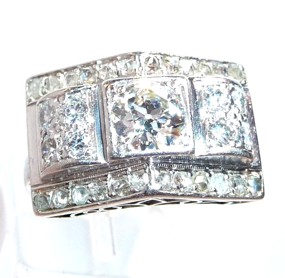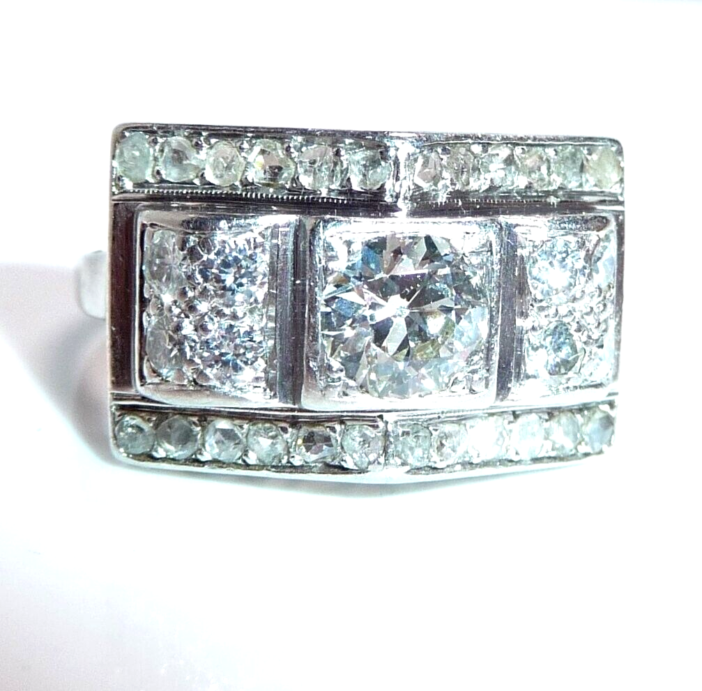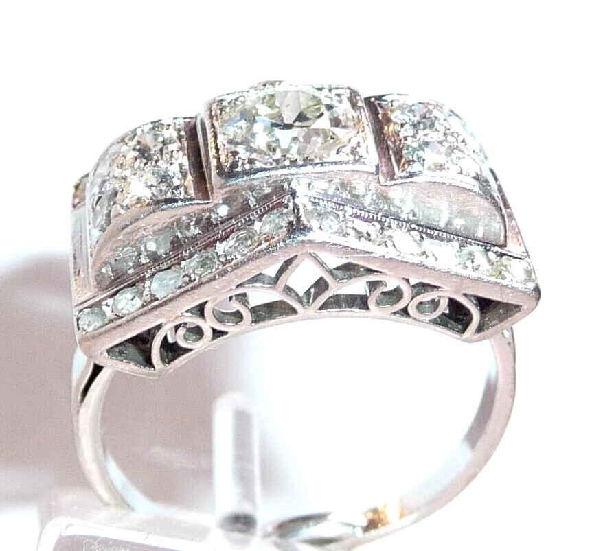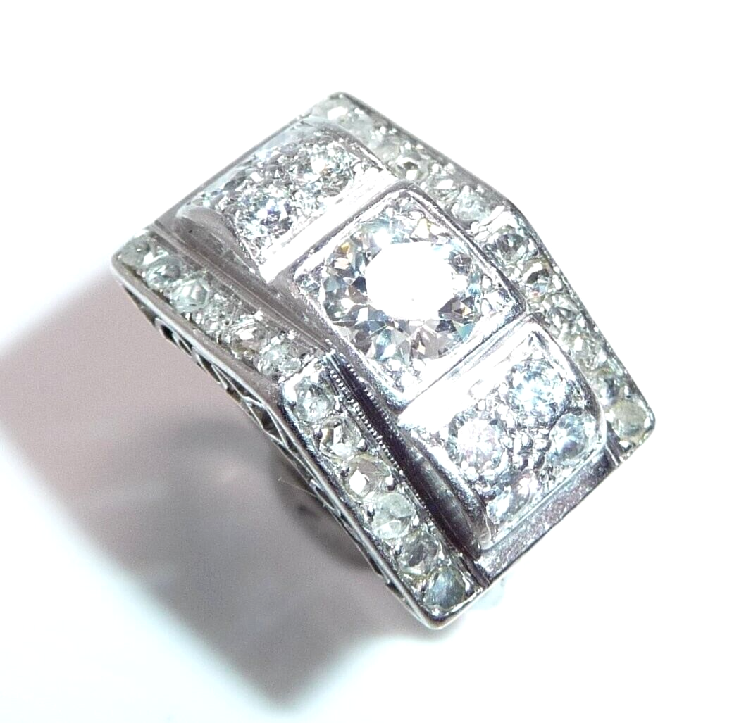 Ring antik Platin 1.50ct Diamanten Größe 55 änderbar 8,1 g Mitte: 0.85ct