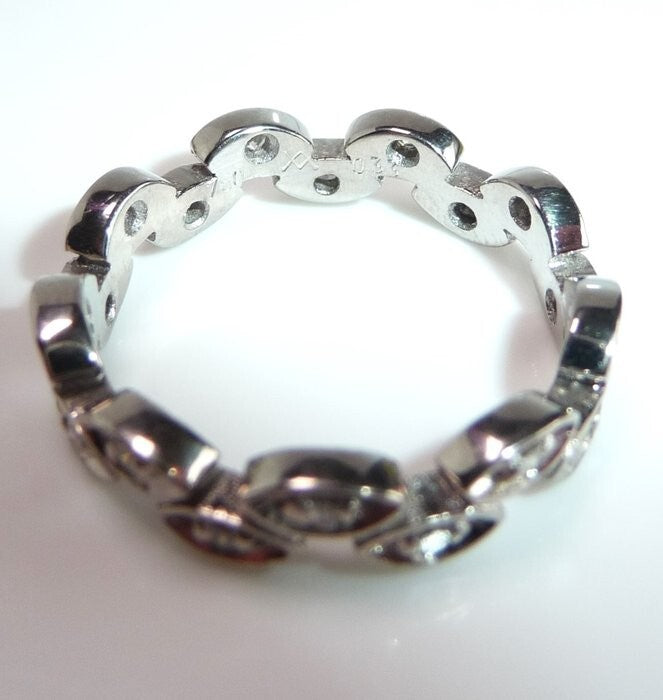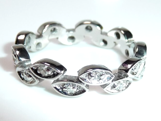 Goldschmiede-Ring in 750 / 18 K Weißgold. Der Ring ist ein rundum besetzter Voll-Memory / Eternity-Ring mit insgesamt 18 Diamanten im Achtkant-Schliff von total 0.33 ct. (F/VVS). Das Karat-Gewicht ist mit 0.33