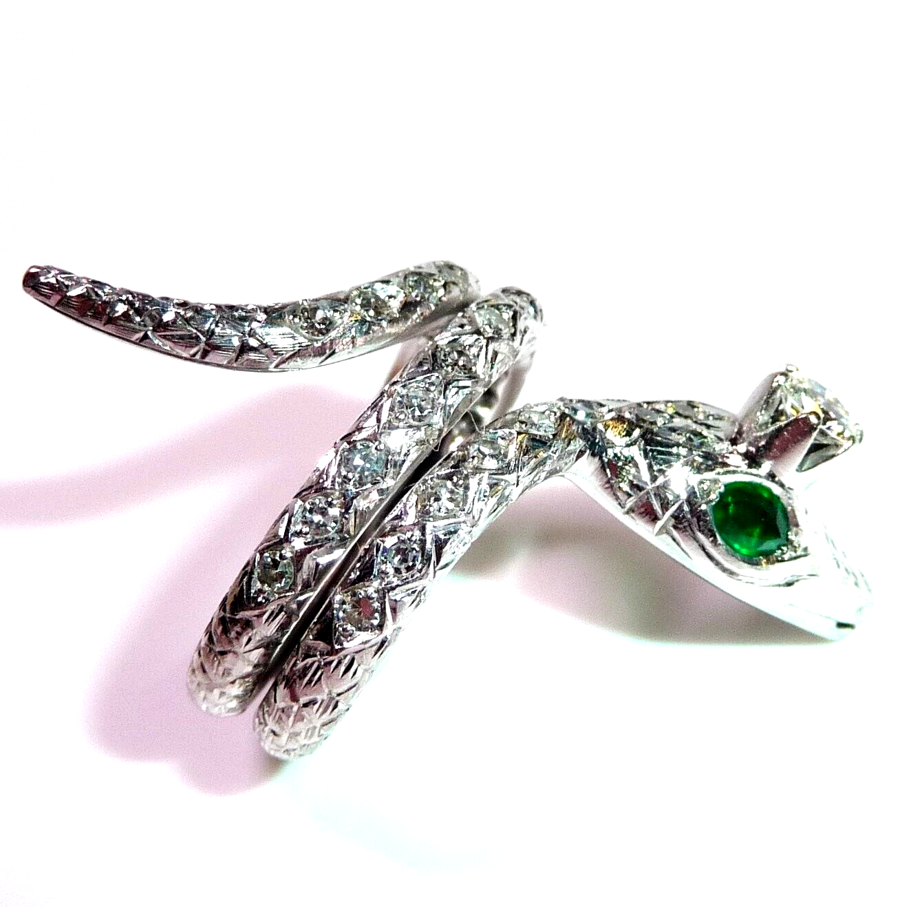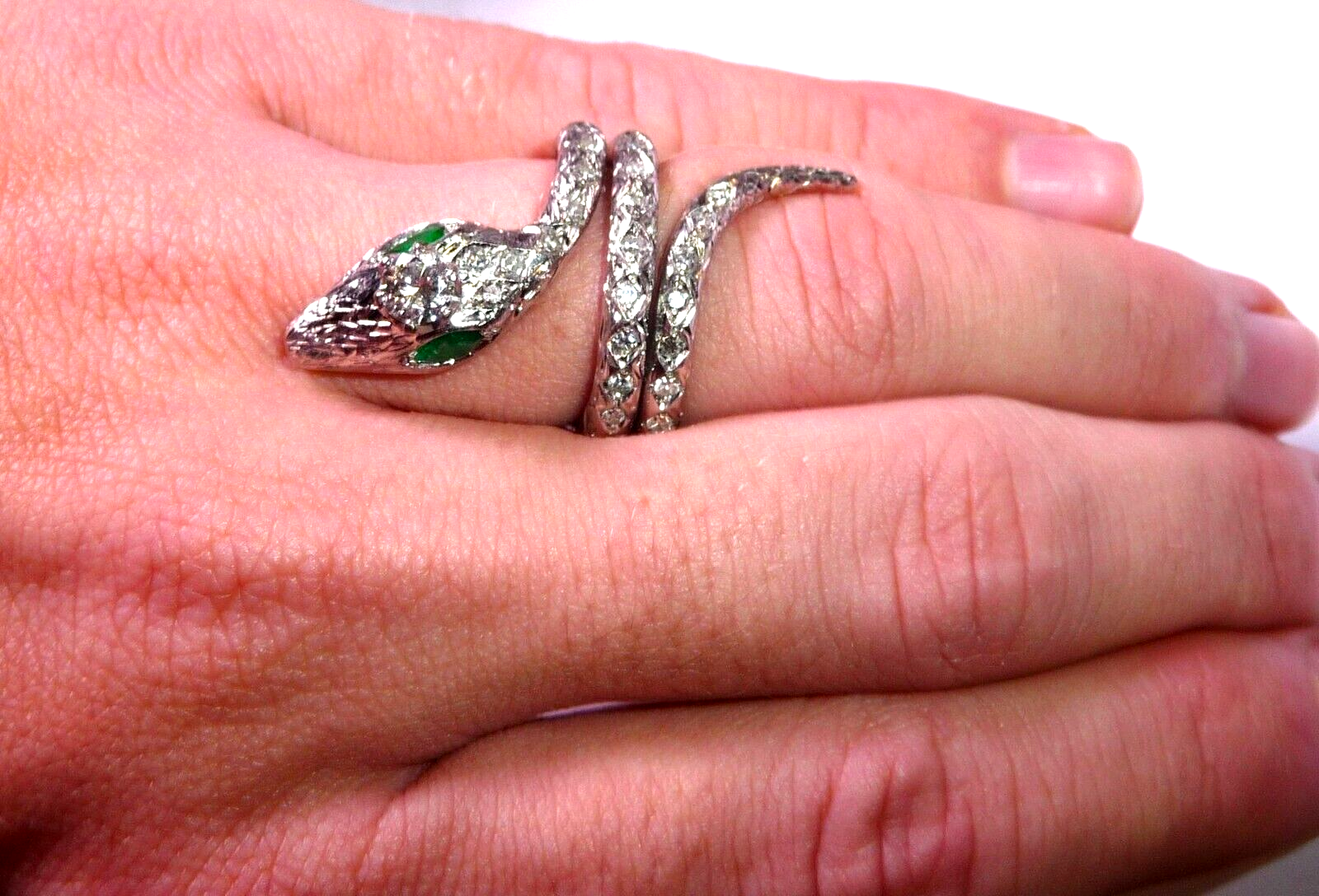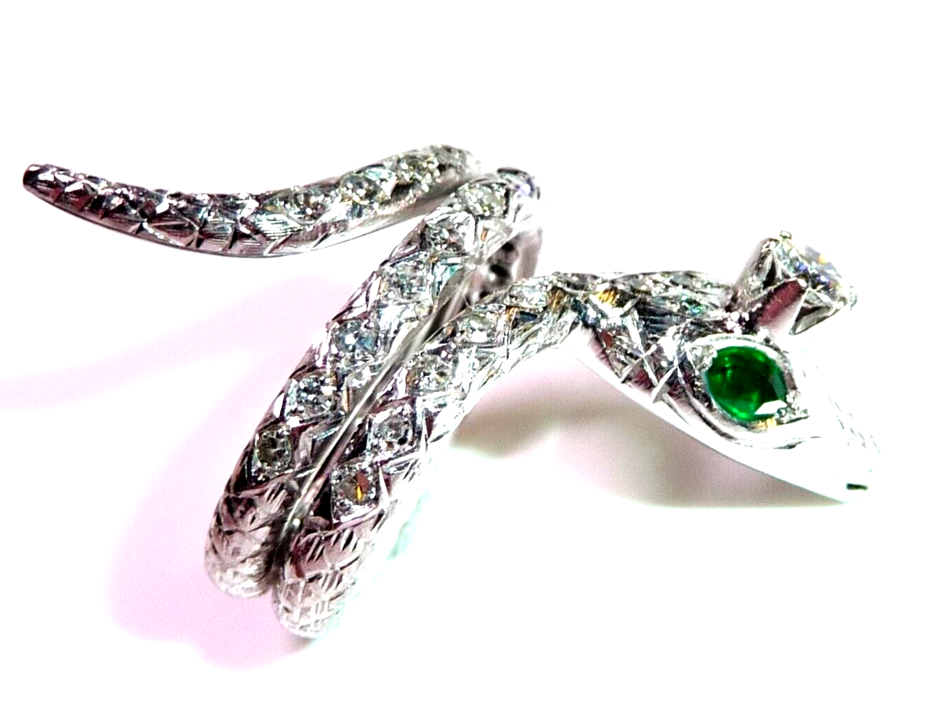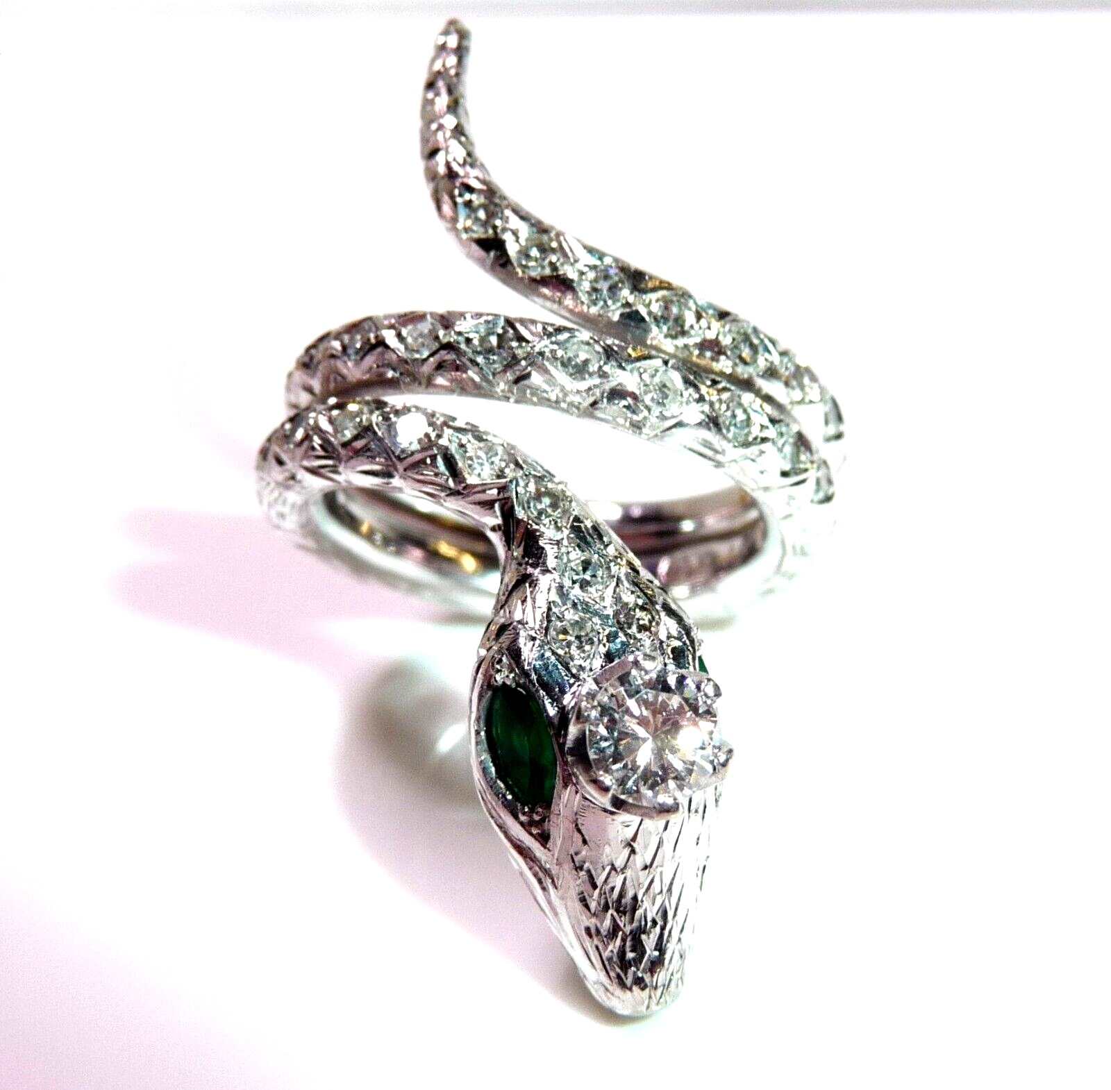 Ring Schlange 750 Gold 0.80 ct Diamanten Smaragde Gr 56 änderbar 23,2g Weißgold