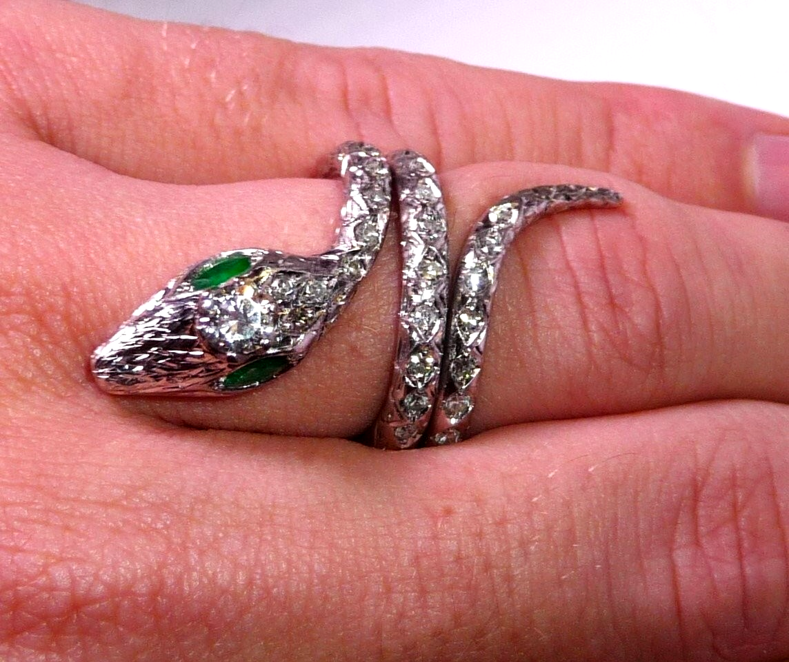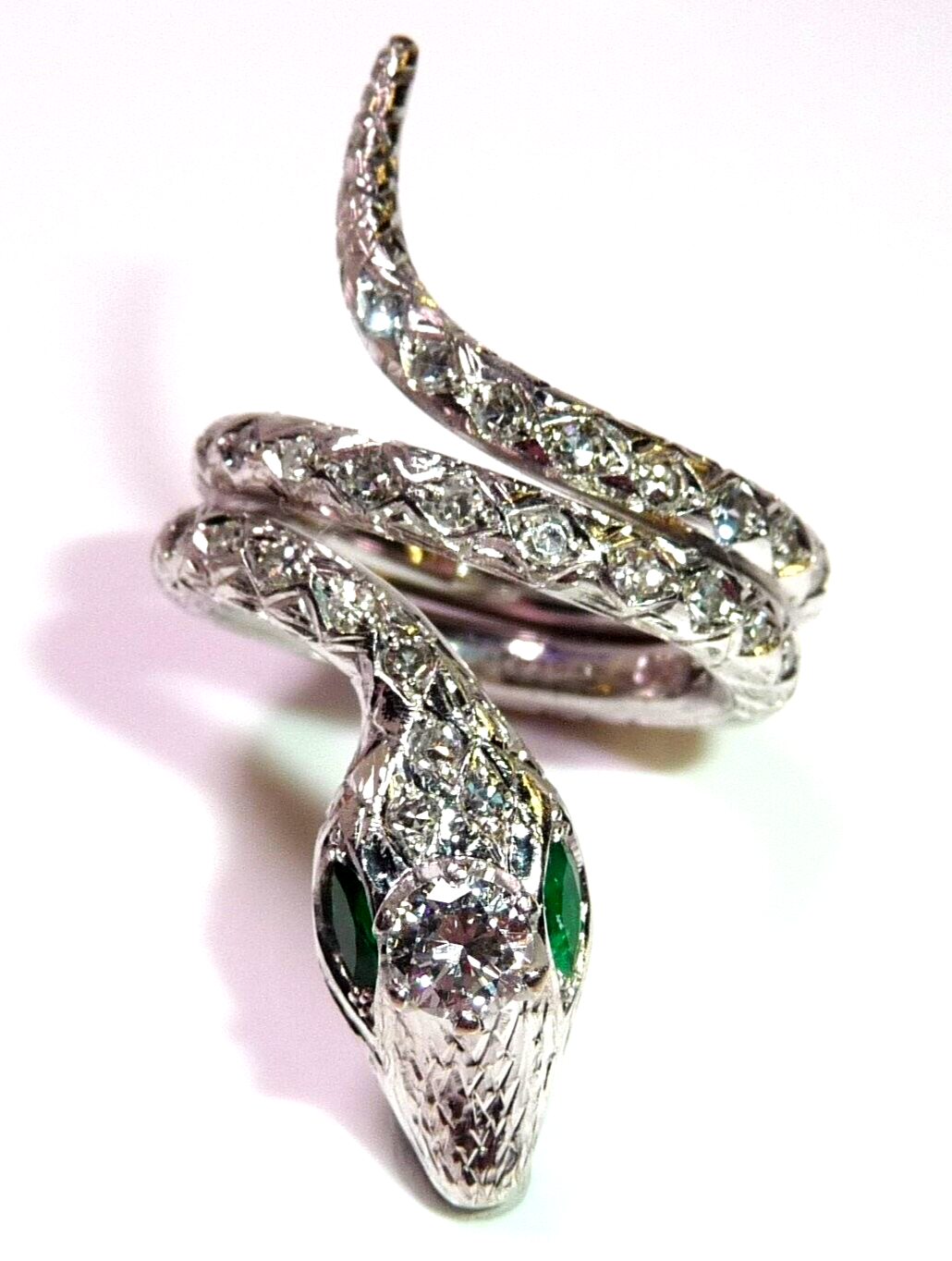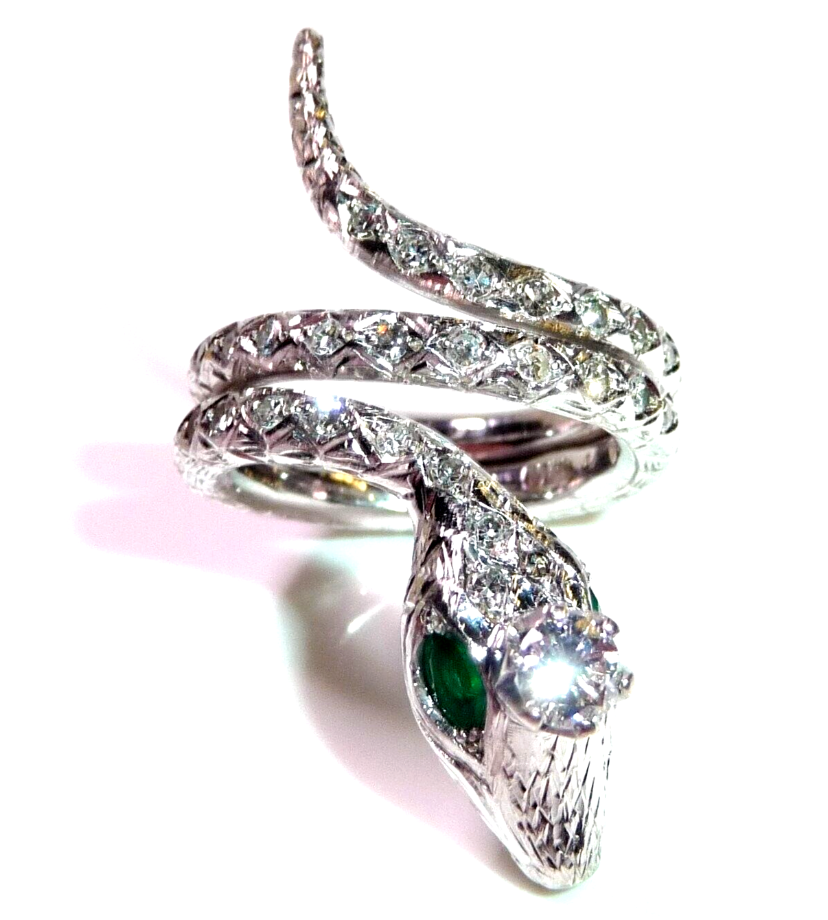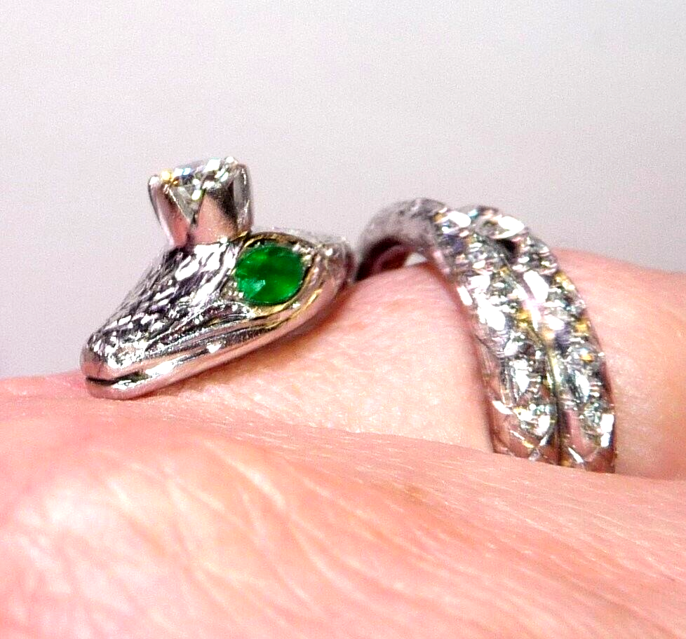 Ring Schlange 750 Gold 0.80 ct Diamanten Smaragde Gr 56 änderbar 23,2g Weißgold