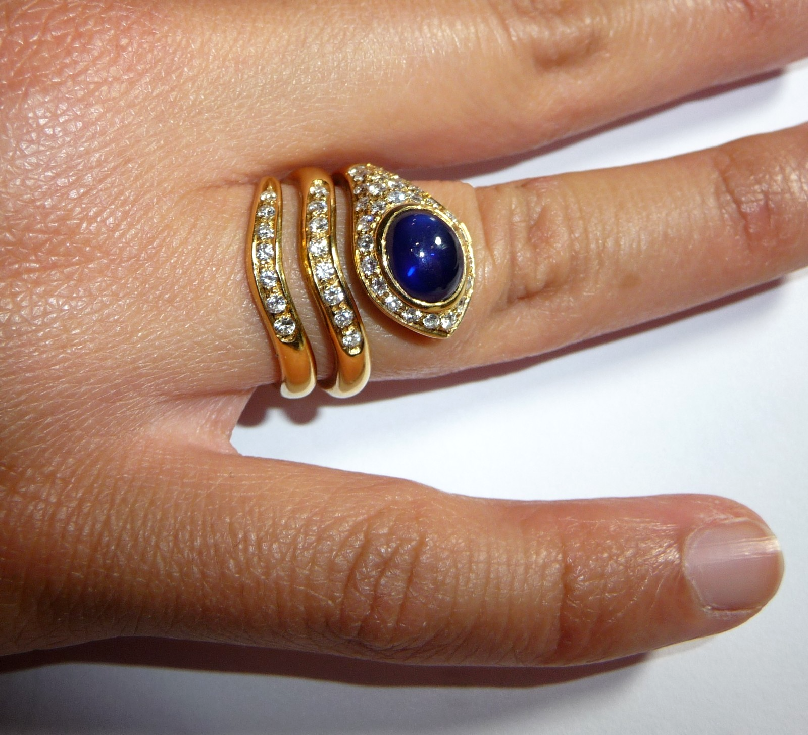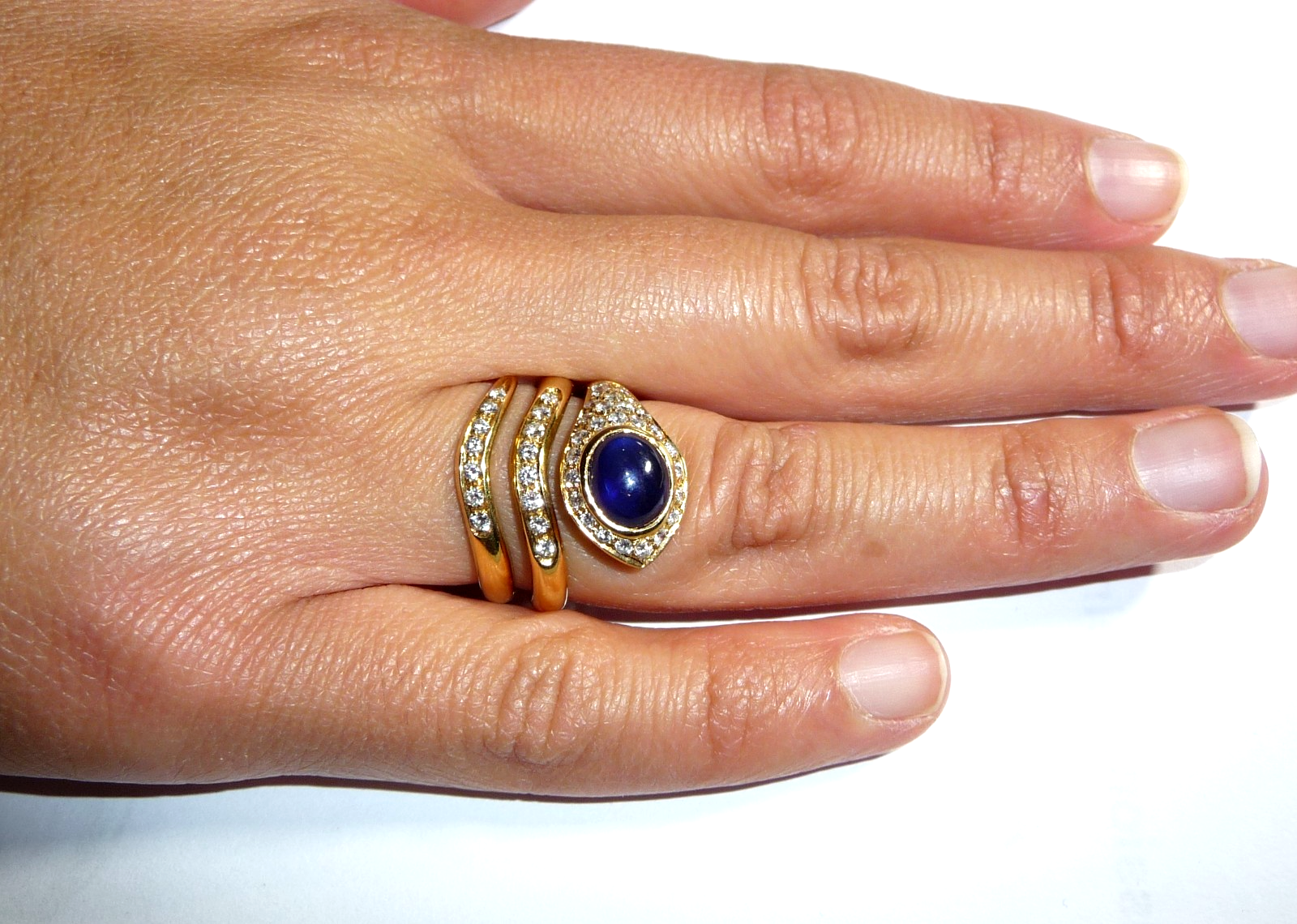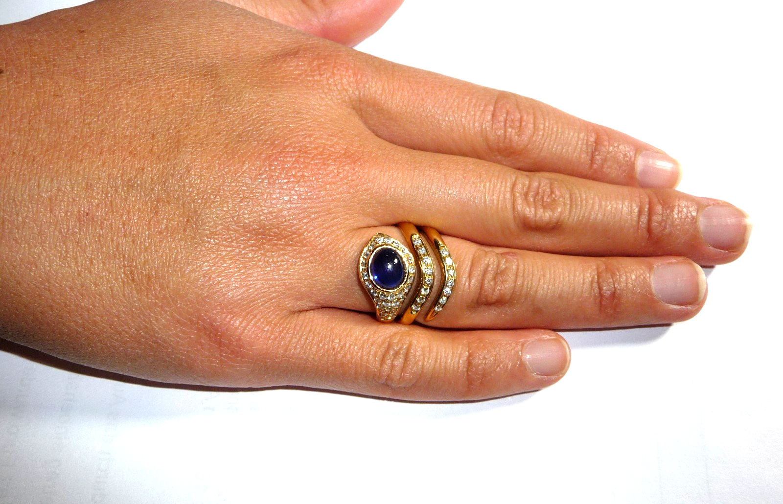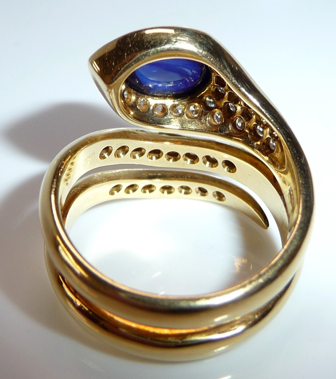 Ring Schlange 750 Gold 1.00 ct Brillanten 2.50 ct. Saphir 11,2g Gr 53-55 flexi