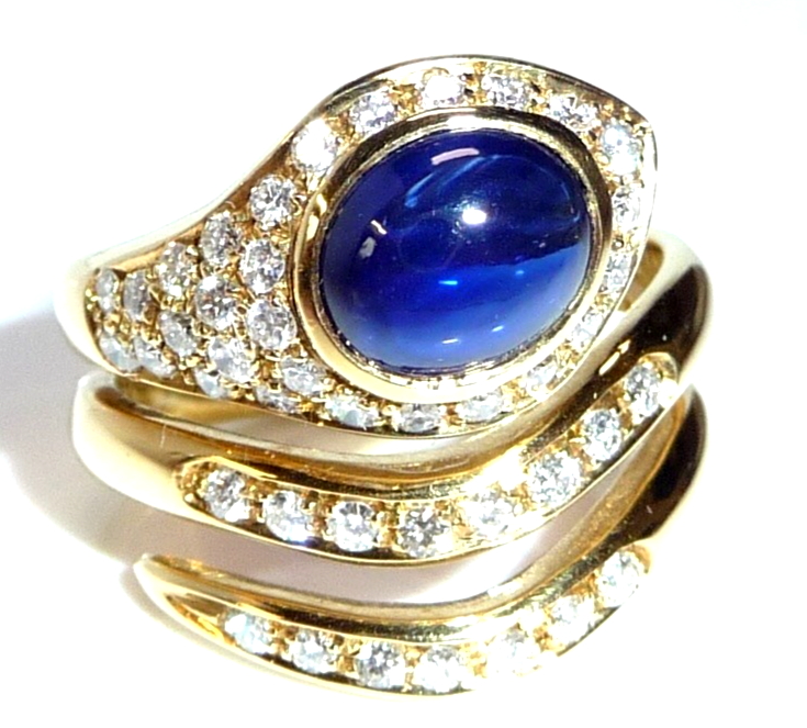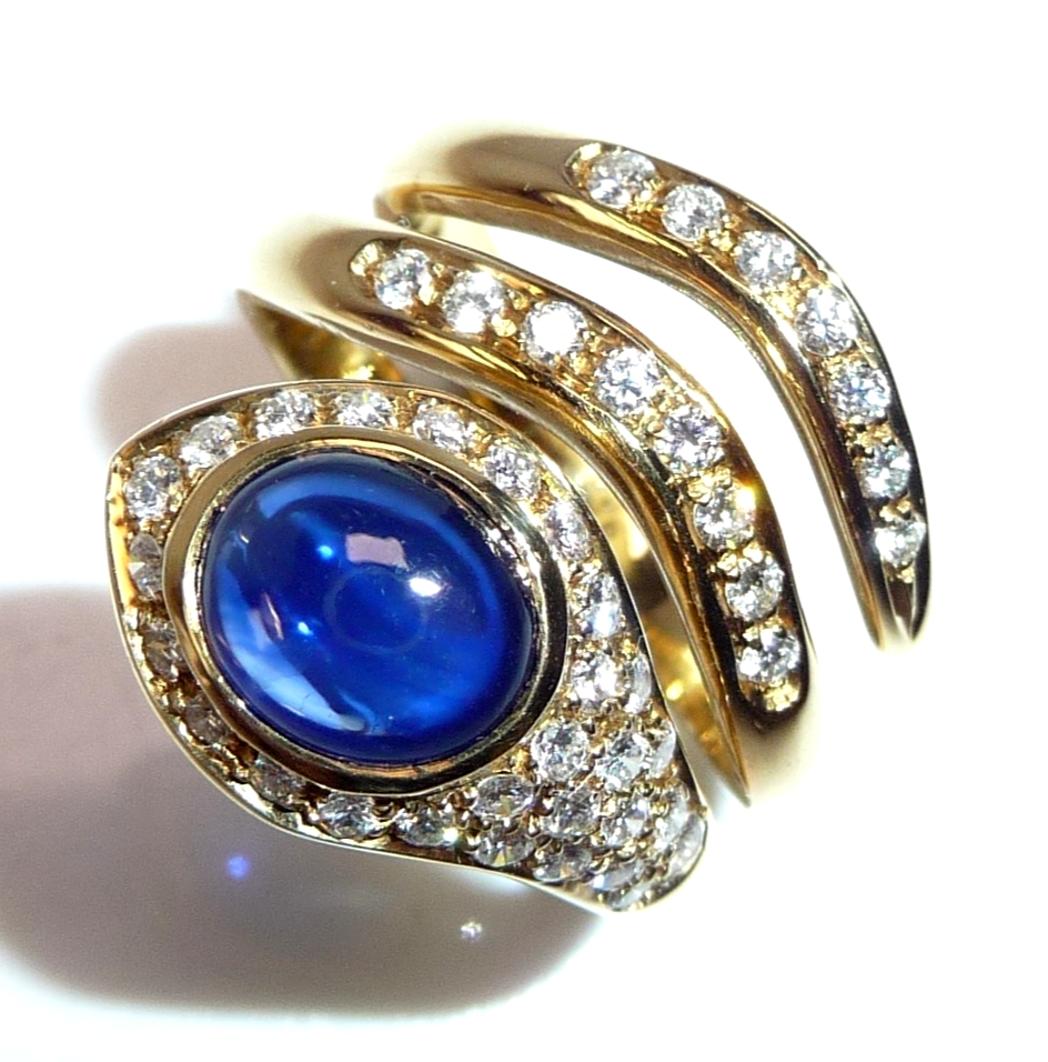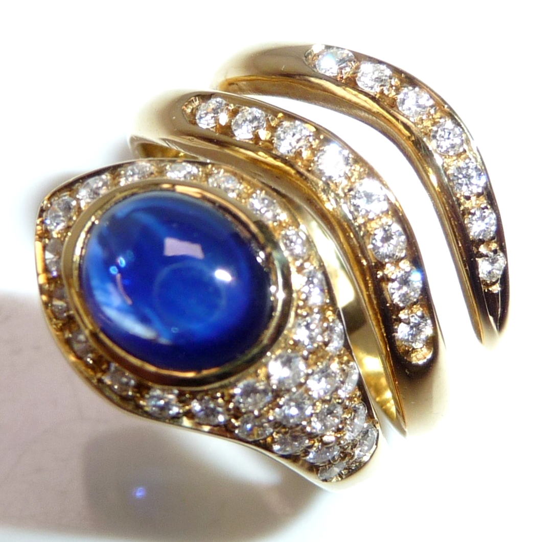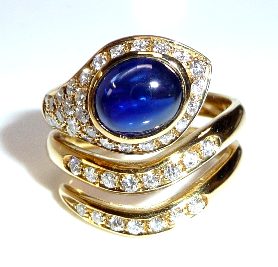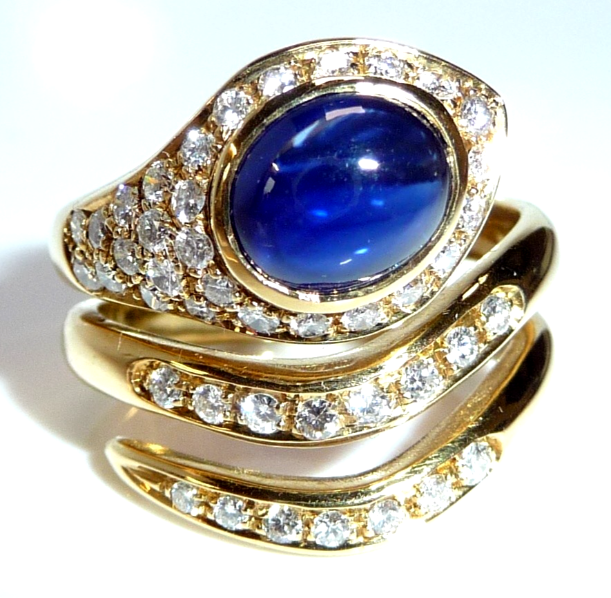Ring Schlange 750 Gold 1.00 ct Brillanten 2.50 ct. Saphir 11,2g Gr 53-55 flexi